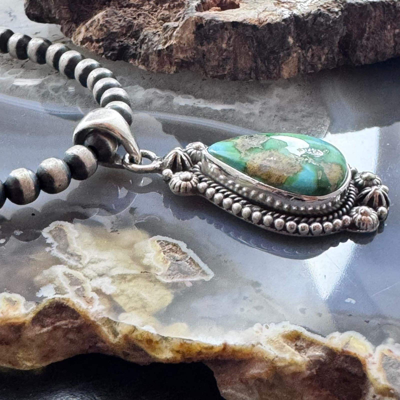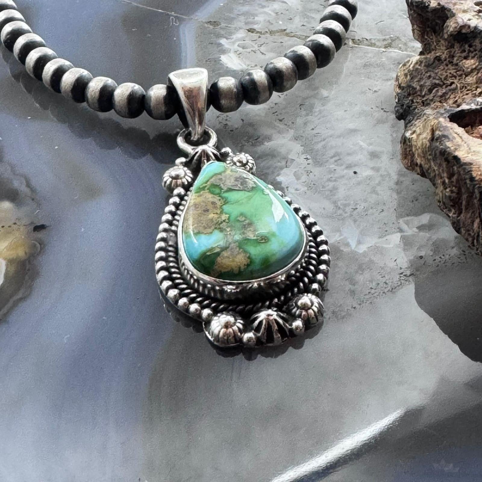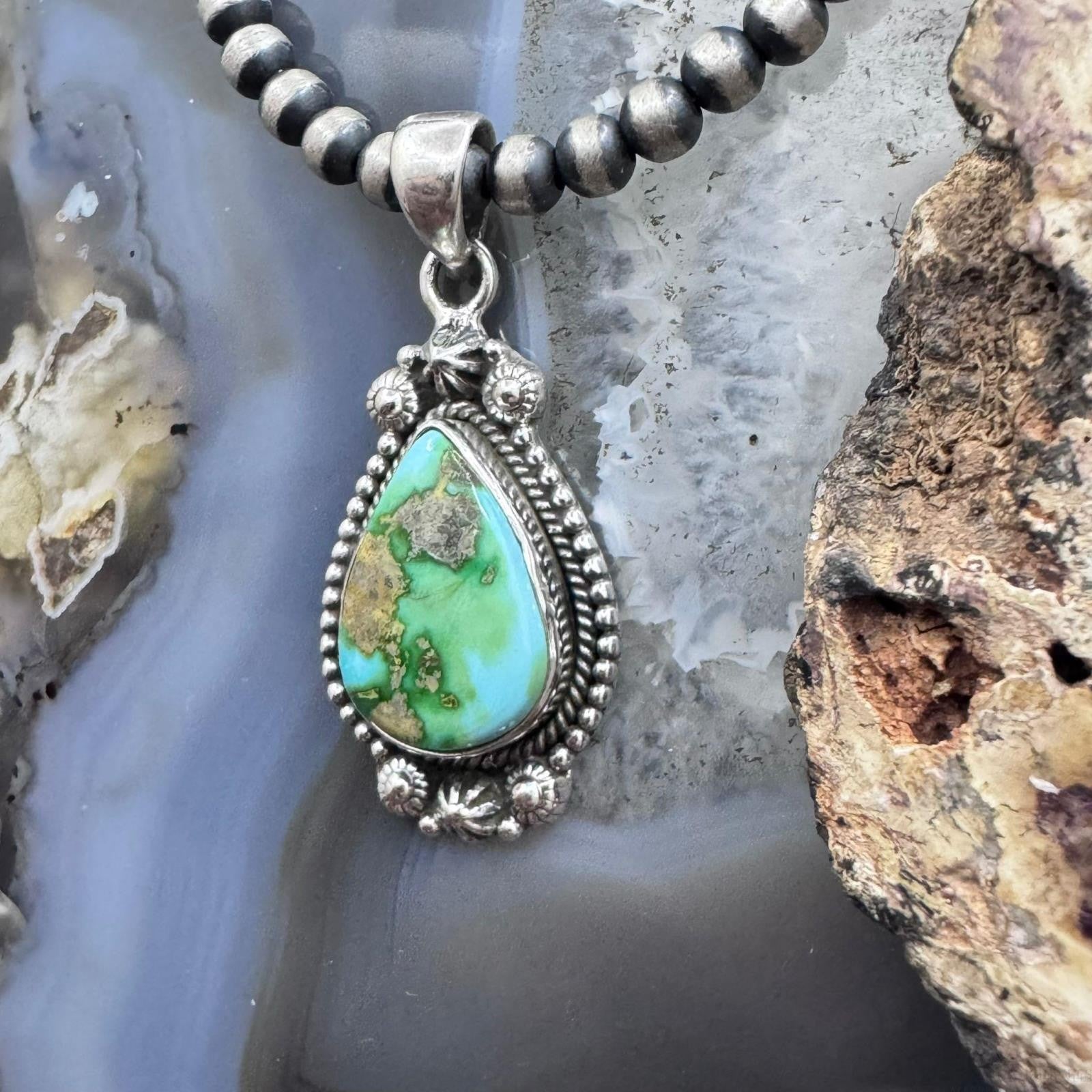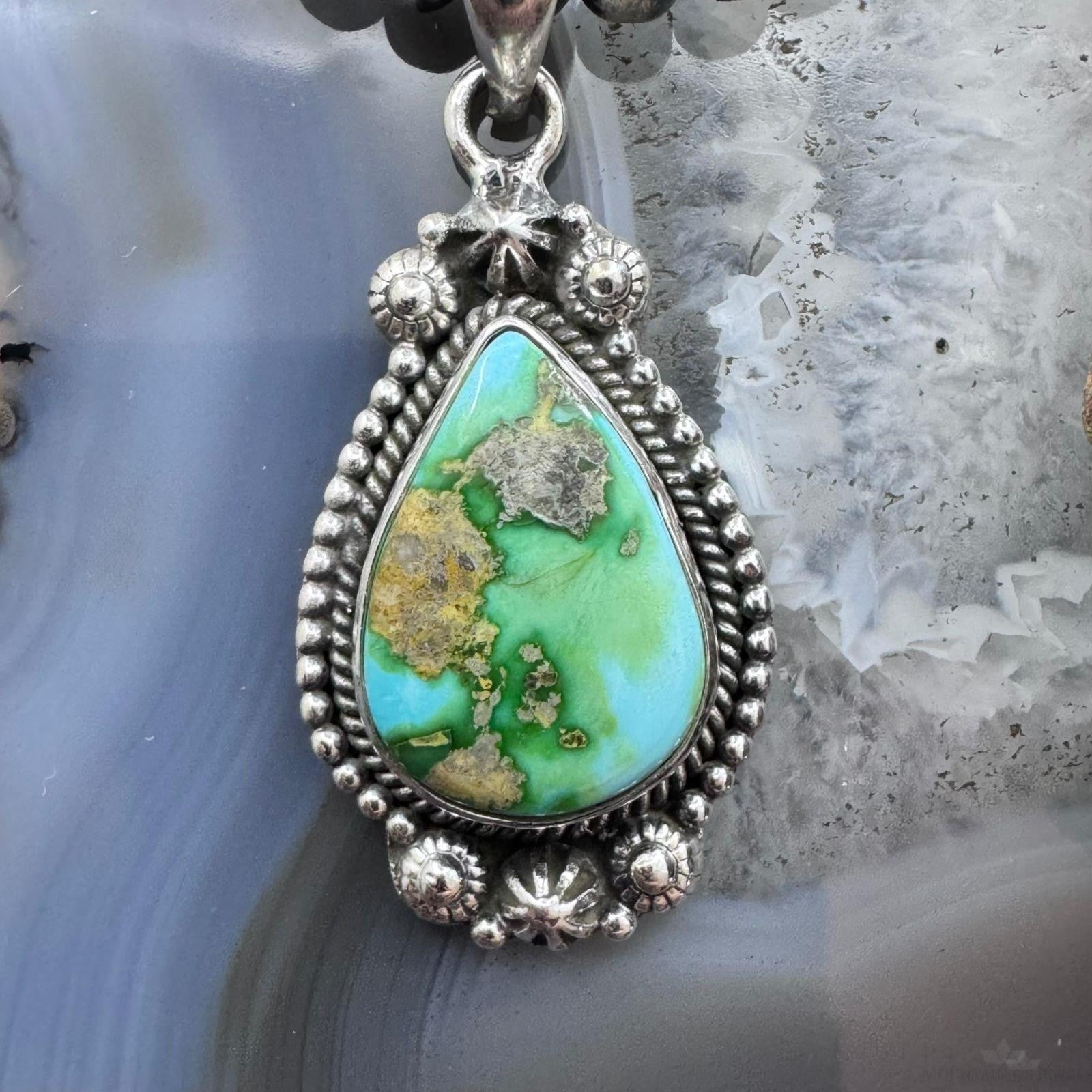 Sterling Silver Southwestern Style Teardrop Sonora Gold Turquoise Decorated Pendant For Women #1