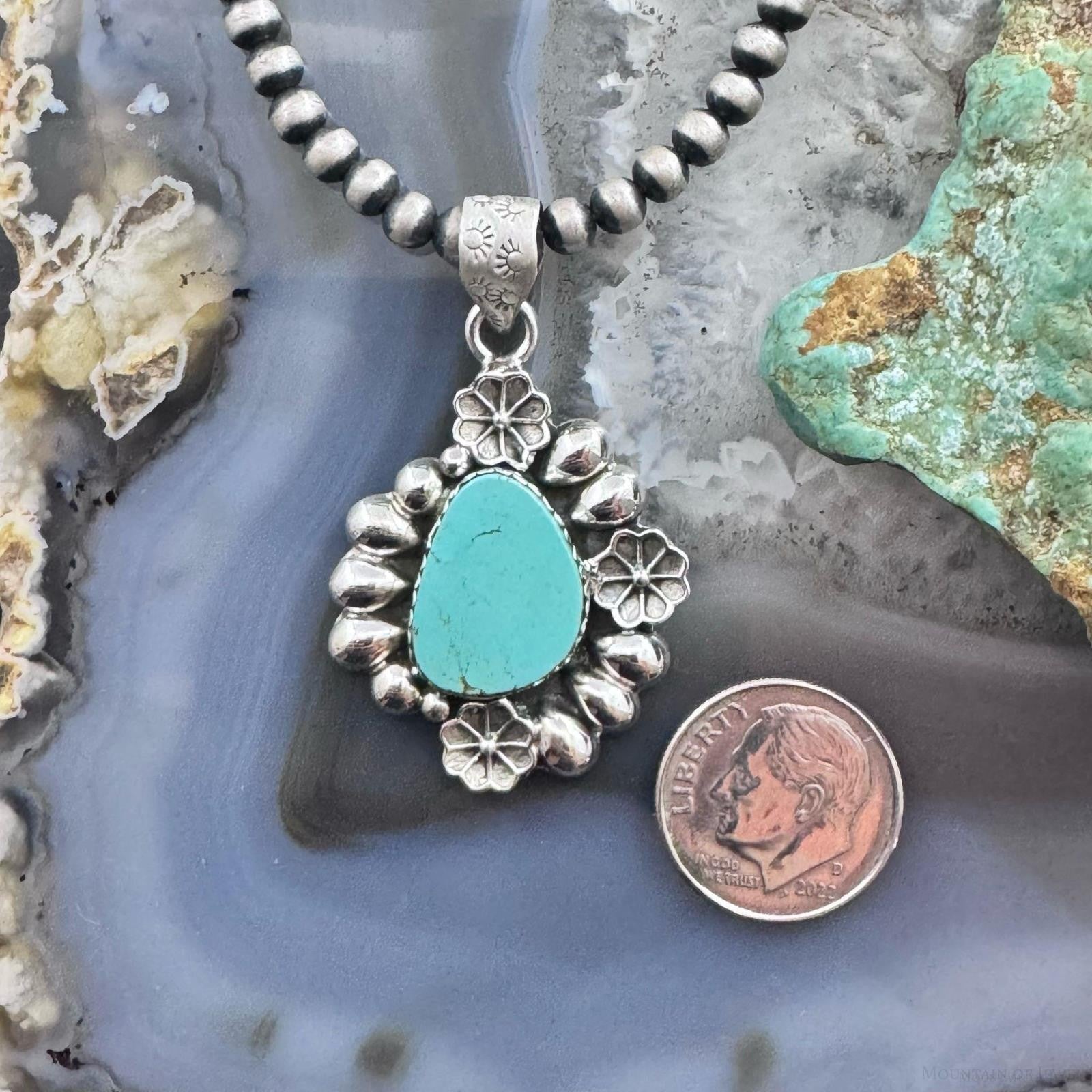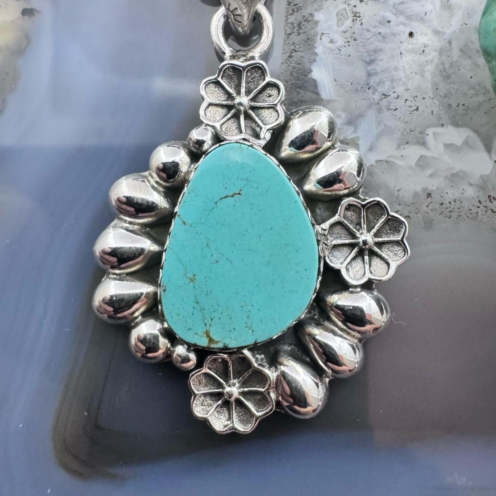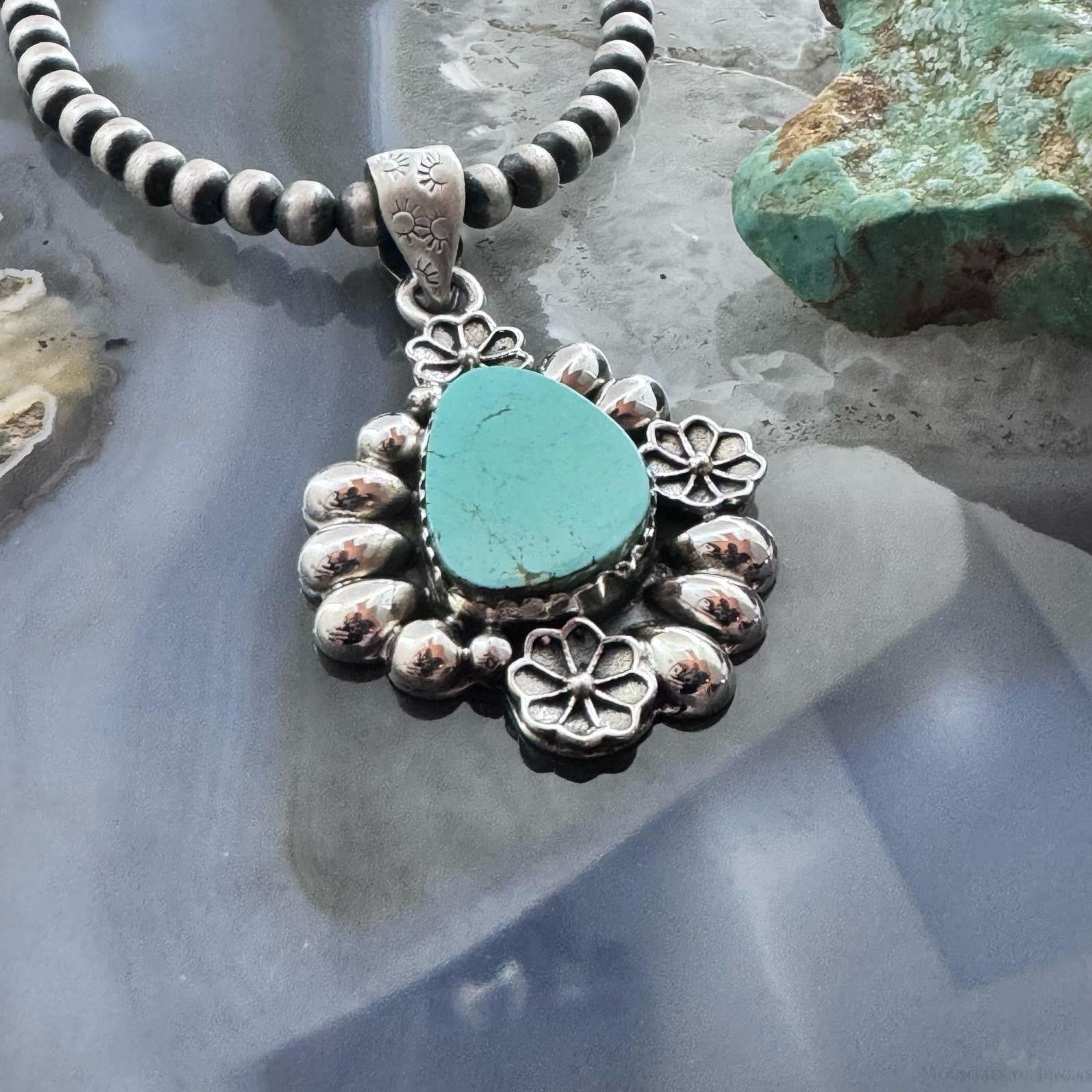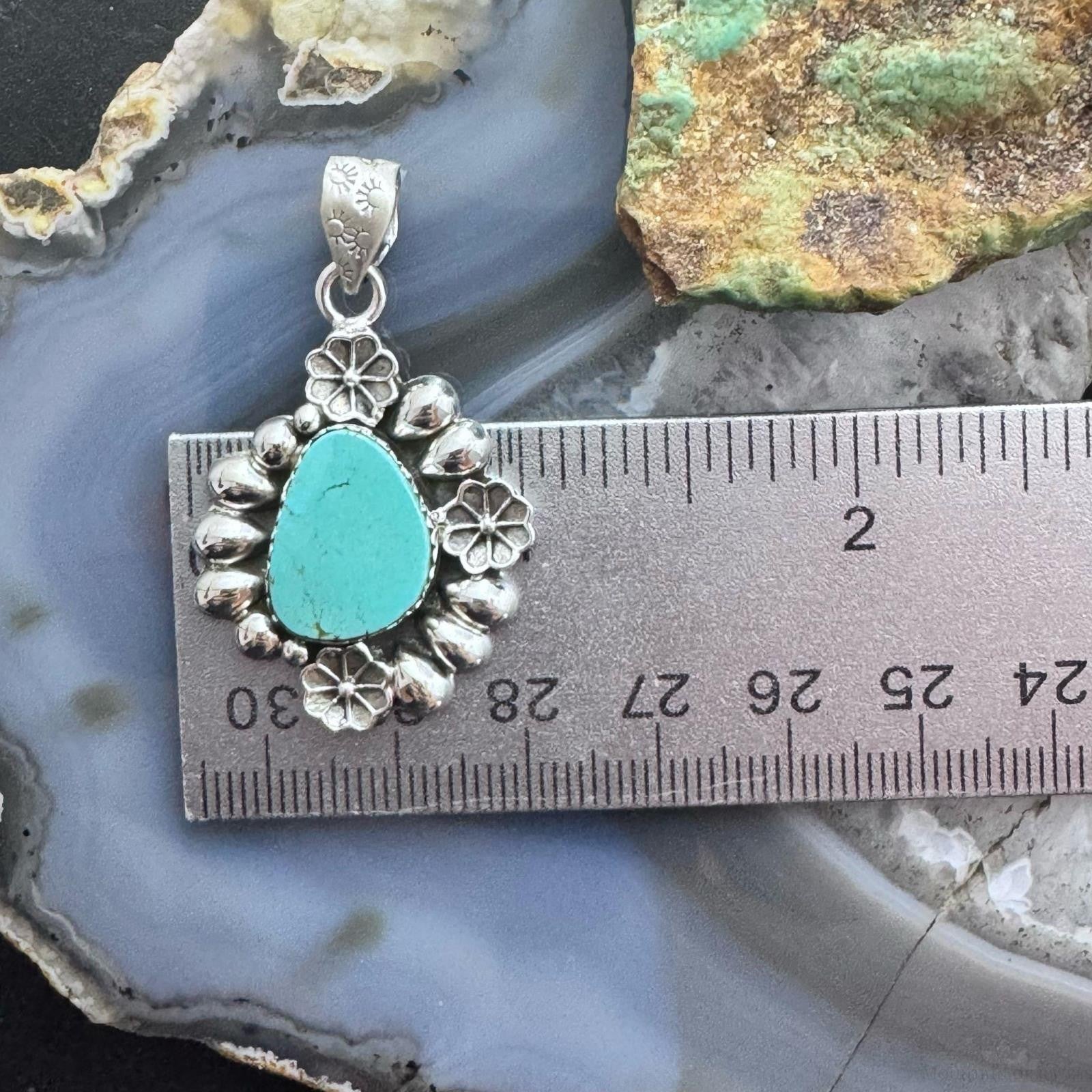 Sterling Silver Southwestern Style Teardrop Turquoise Decorated Pendant For Women