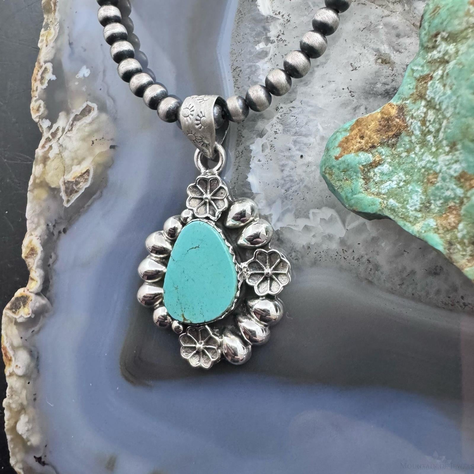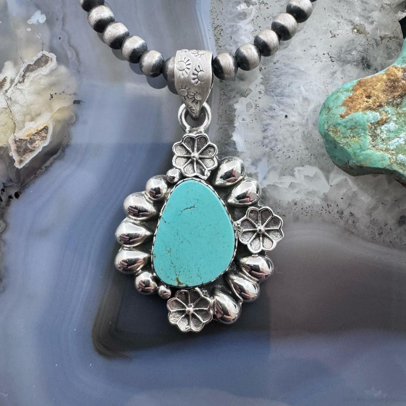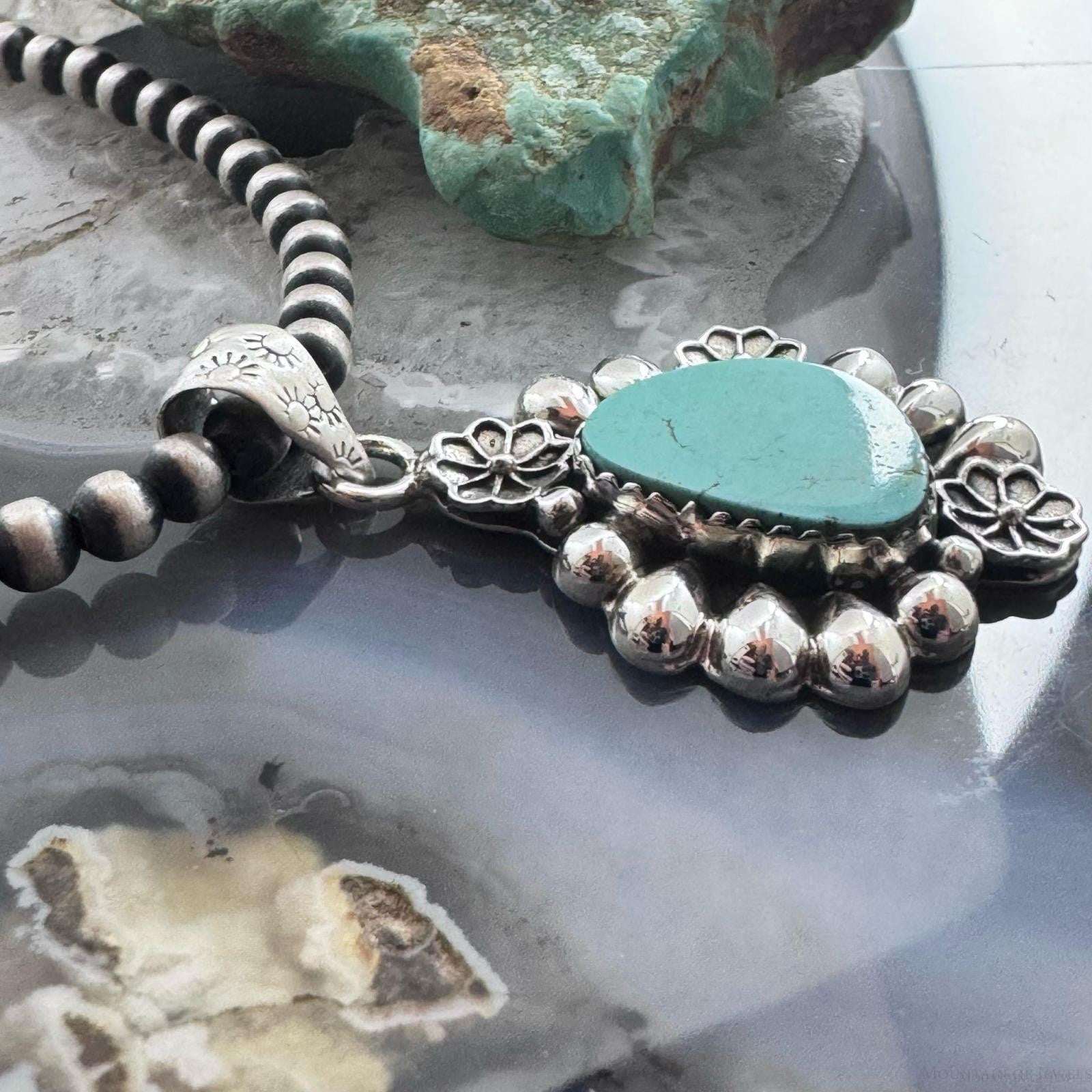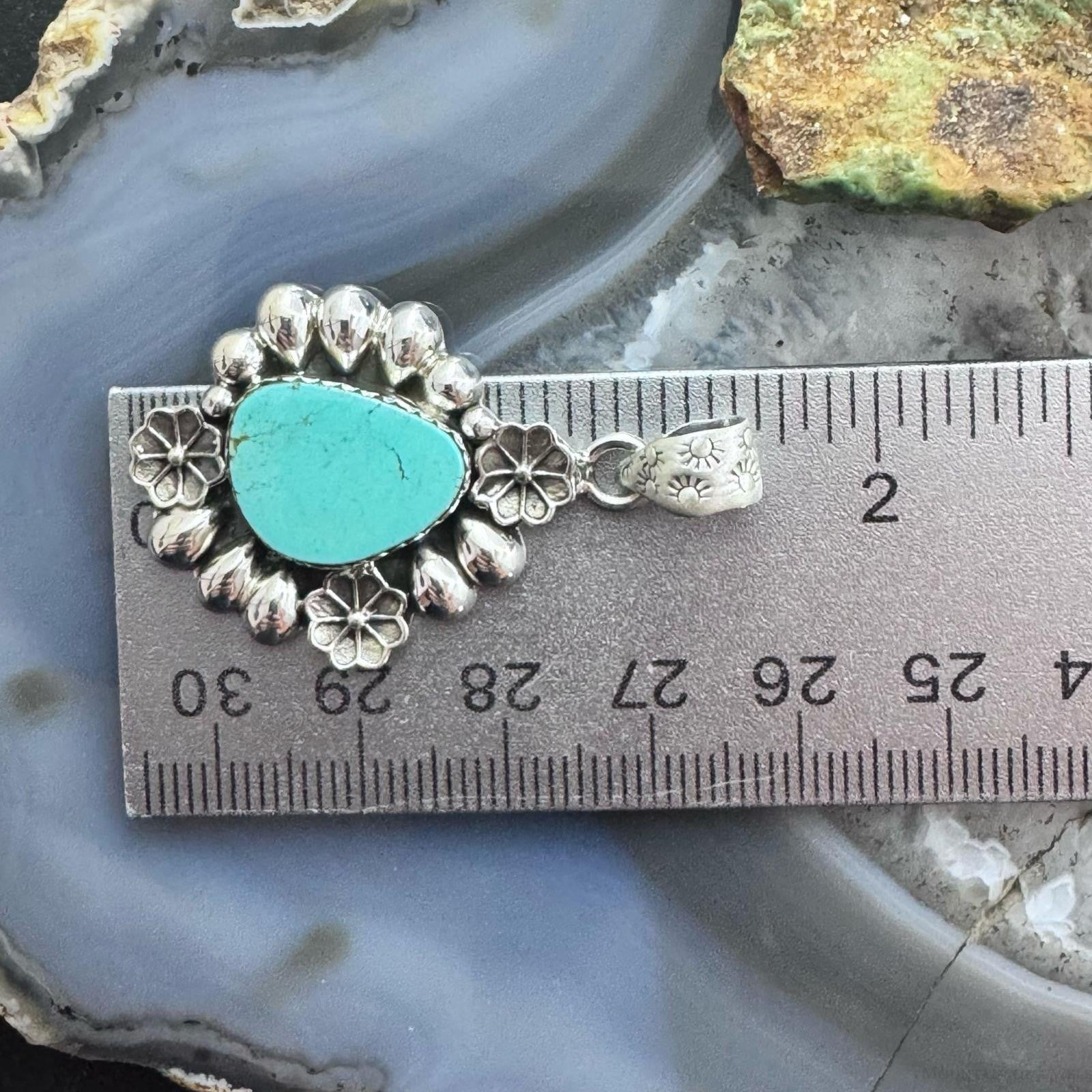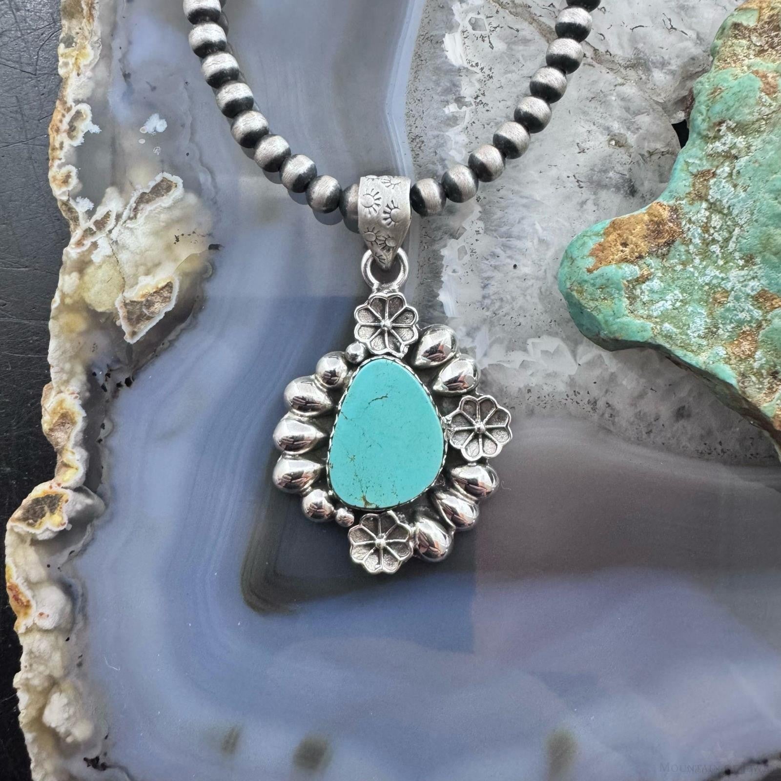 Sterling Silver Southwestern Style Teardrop Turquoise Decorated Pendant For Women