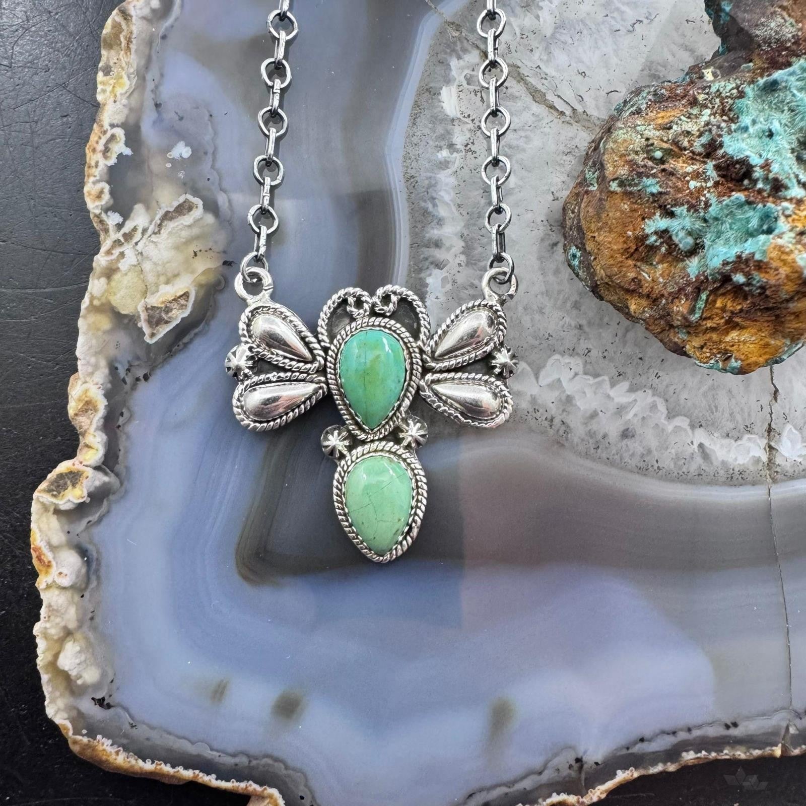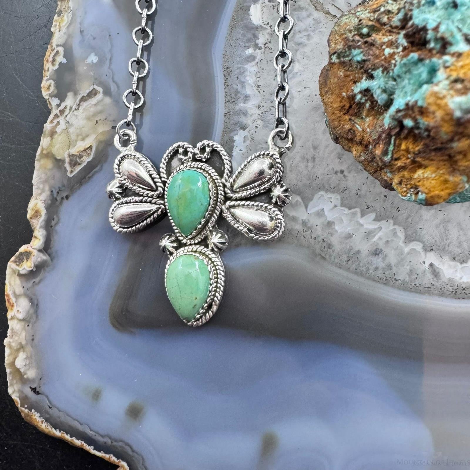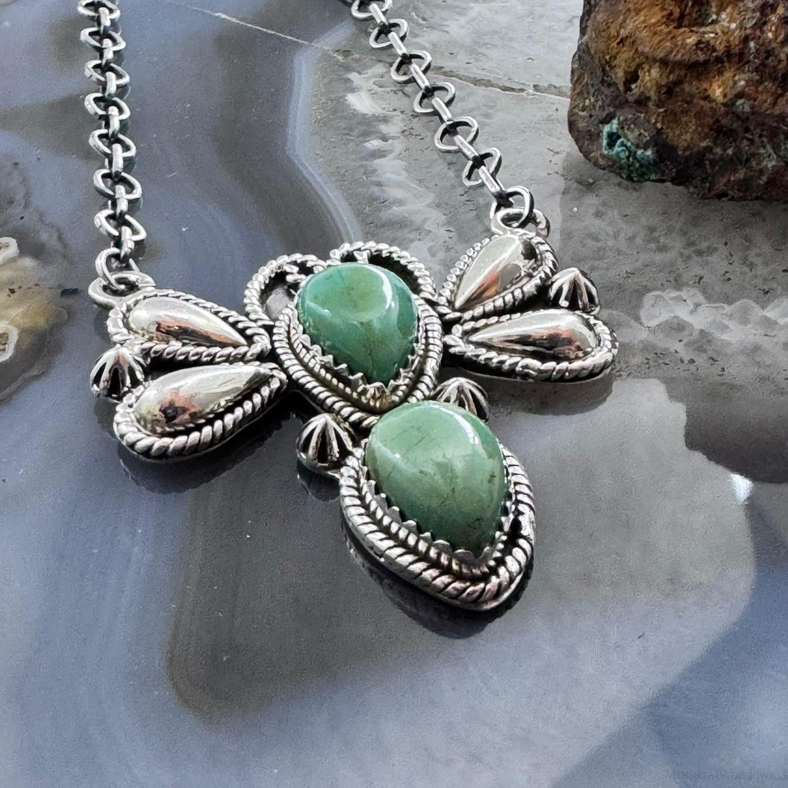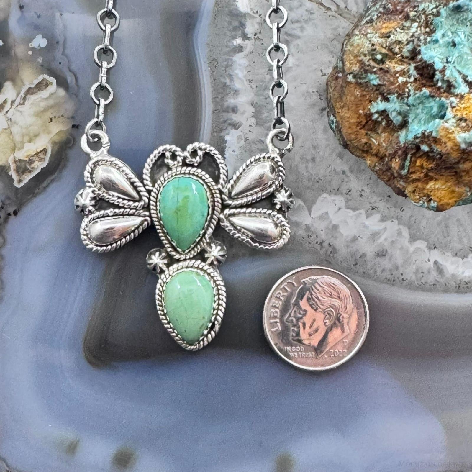 Sterling Silver Southwestern Style Teardrop Turquoise Dragonfly 18" Necklace For Women