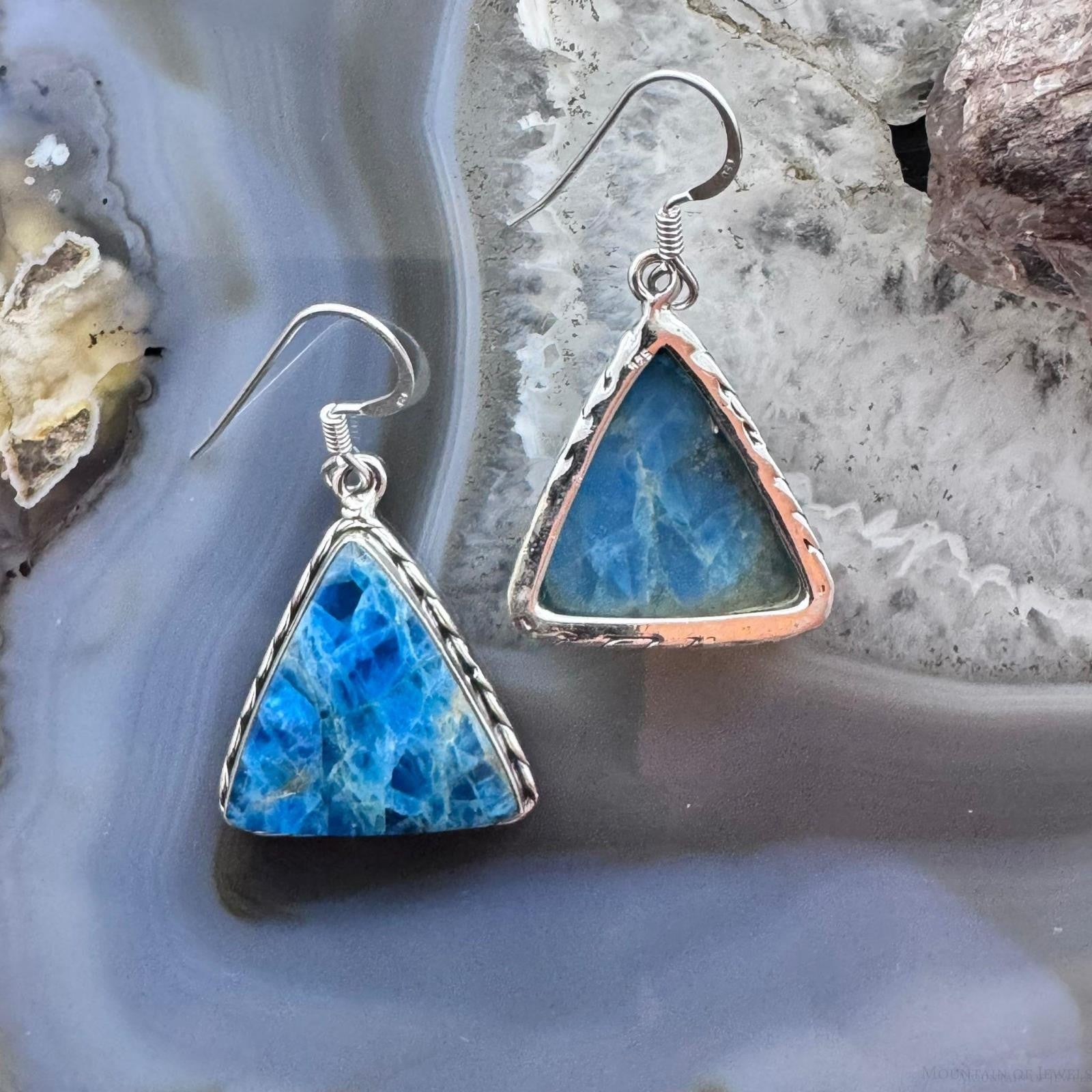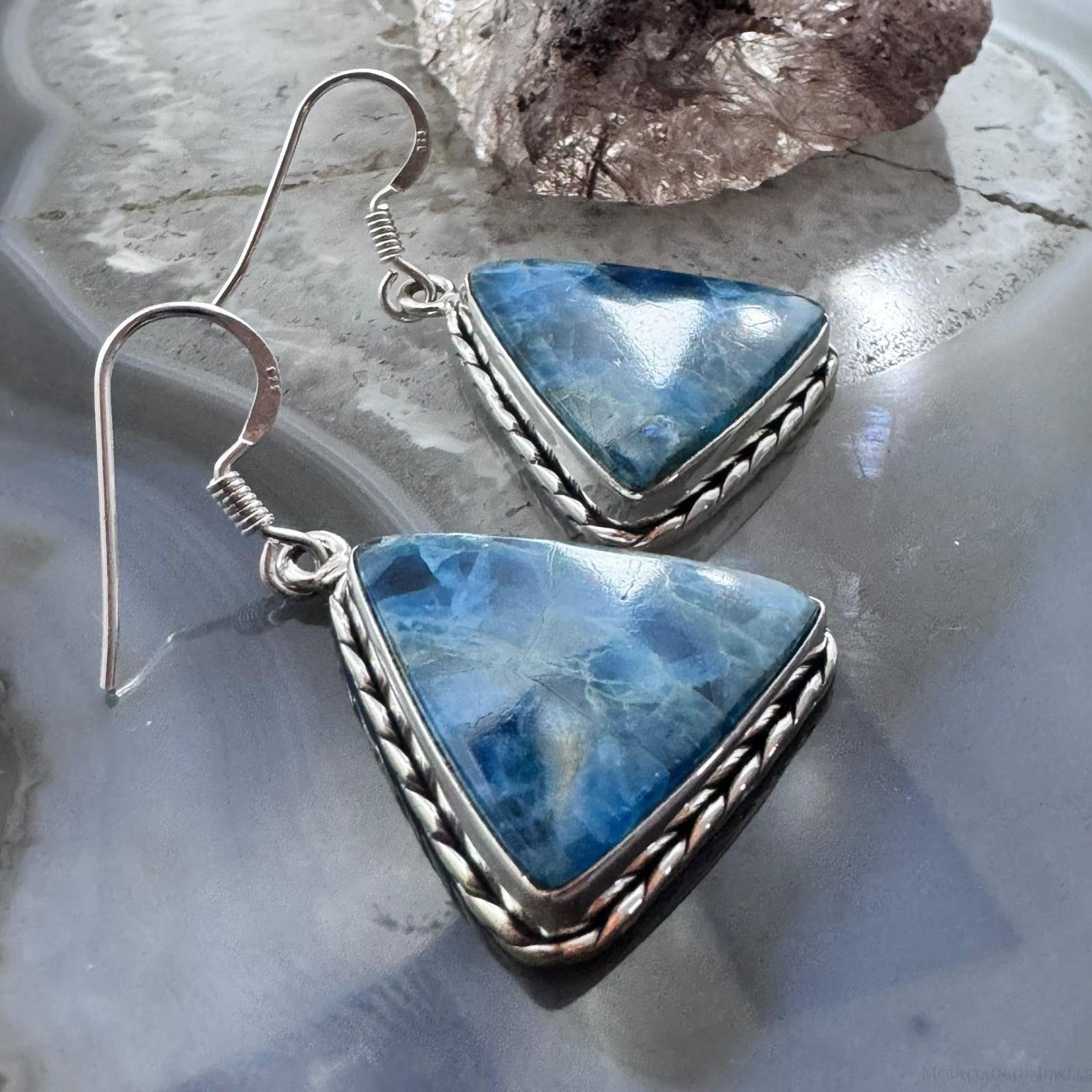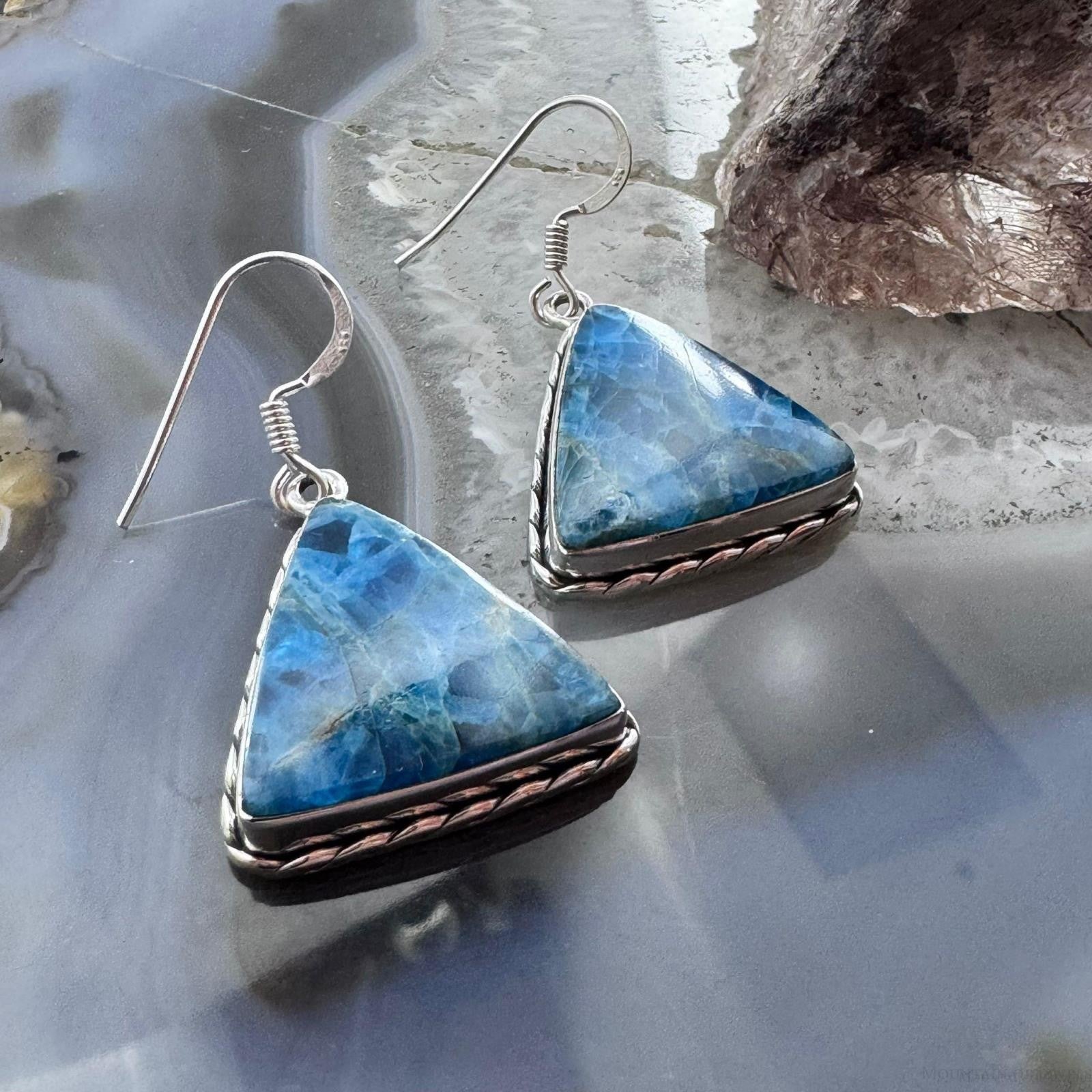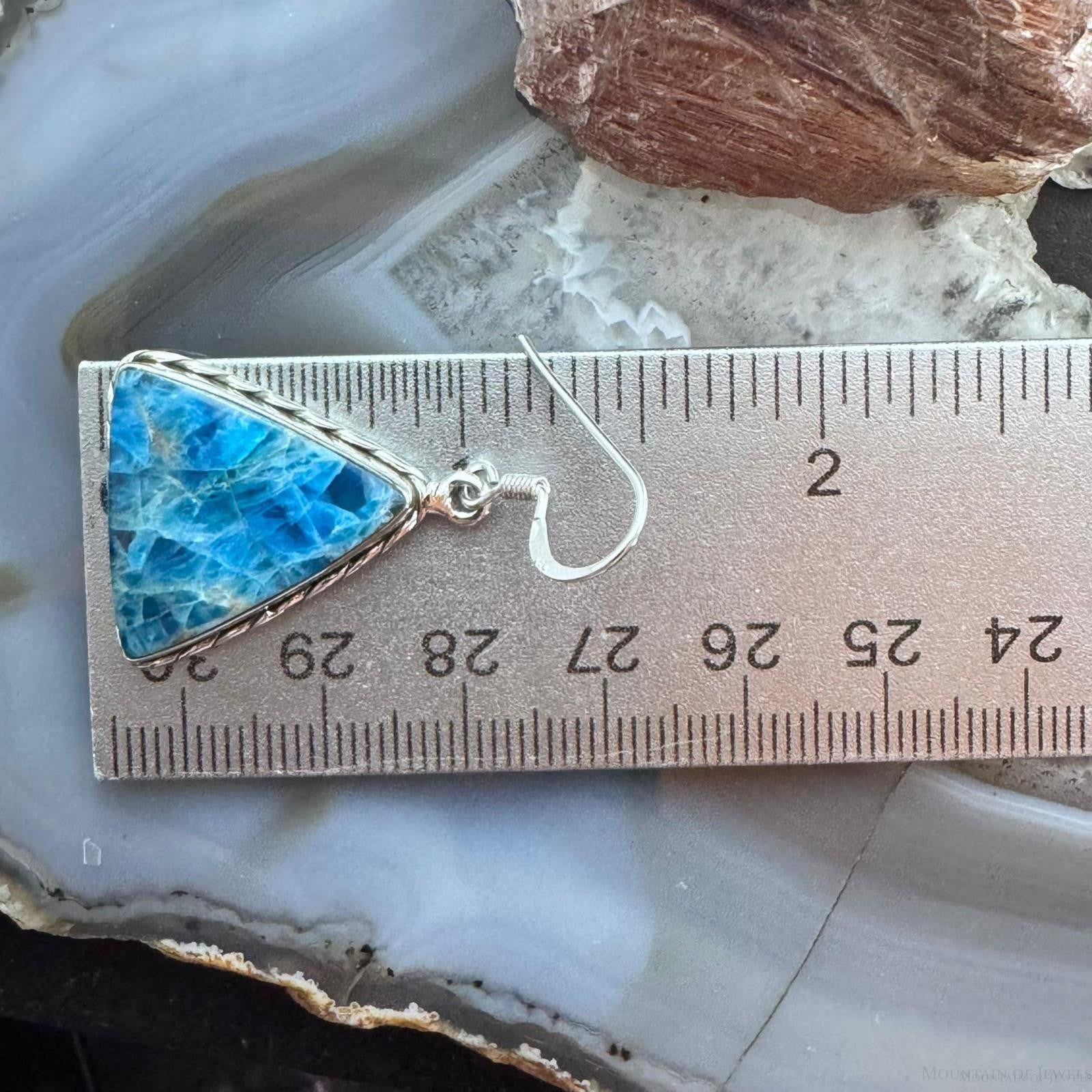 Sterling Silver Southwestern Style Triangle Blue Apatite Dangle Earrings For Women