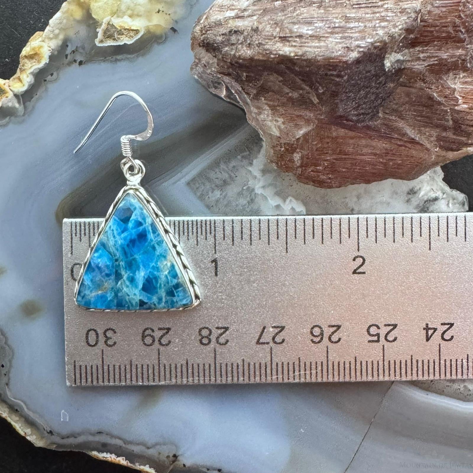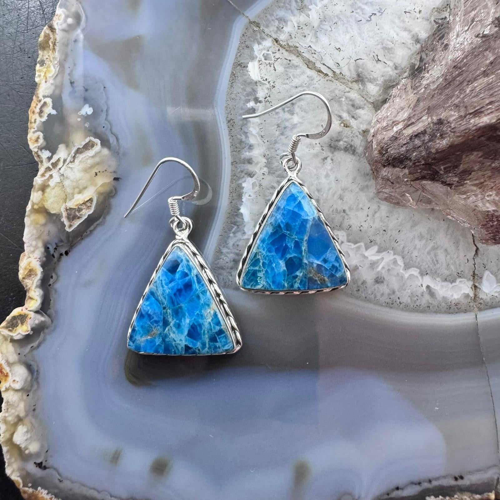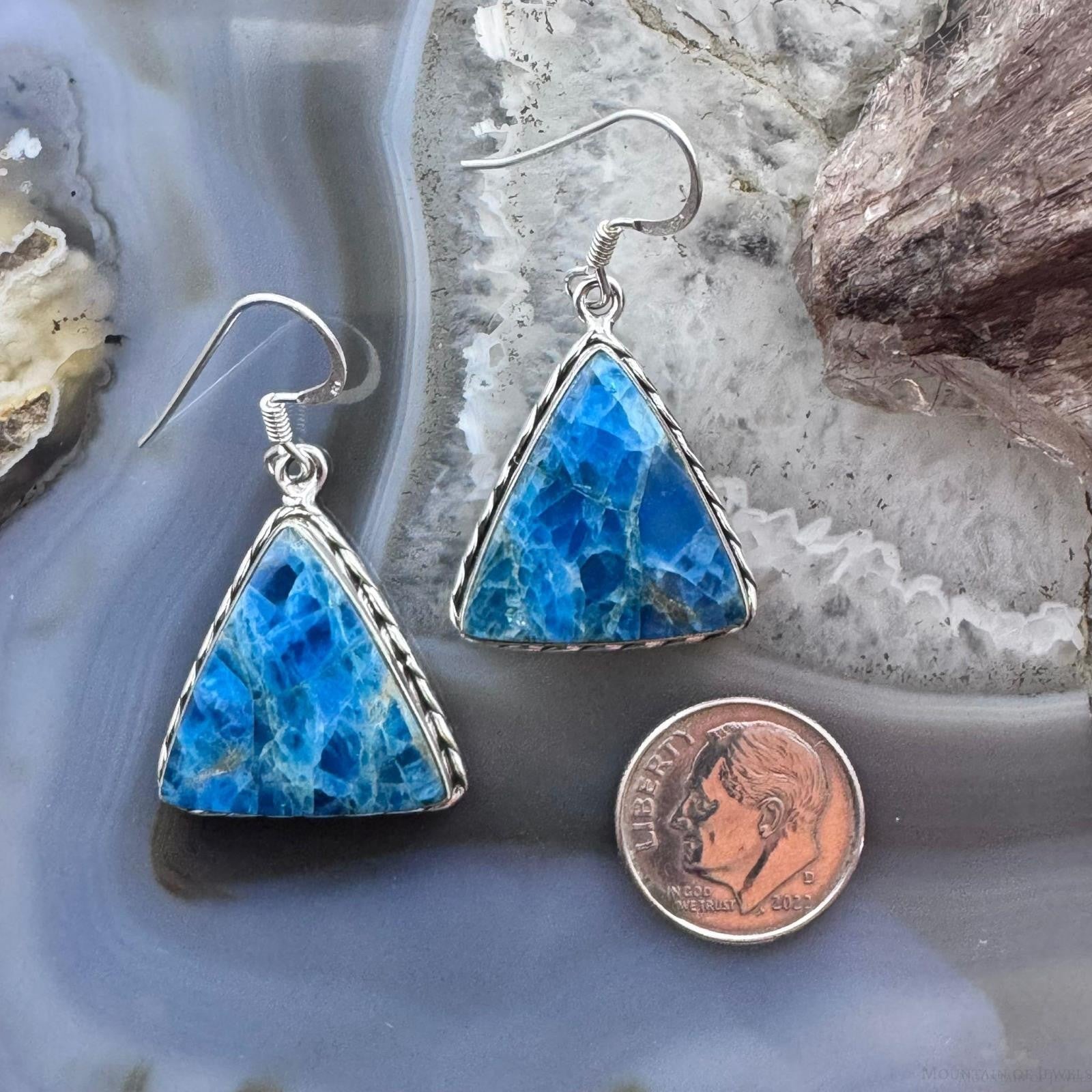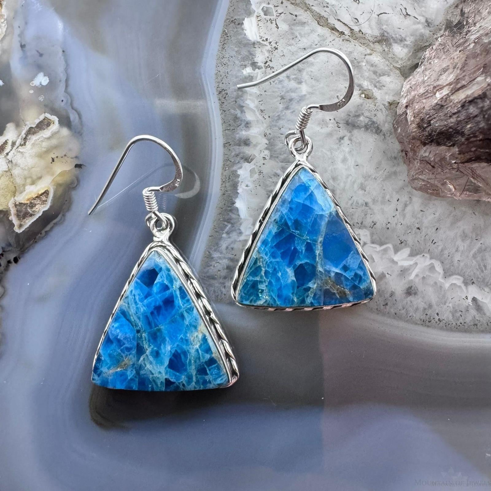 Sterling Silver Southwestern Style Triangle Blue Apatite Dangle Earrings For Women