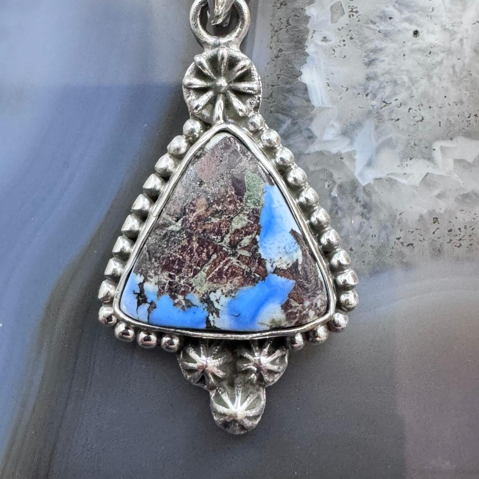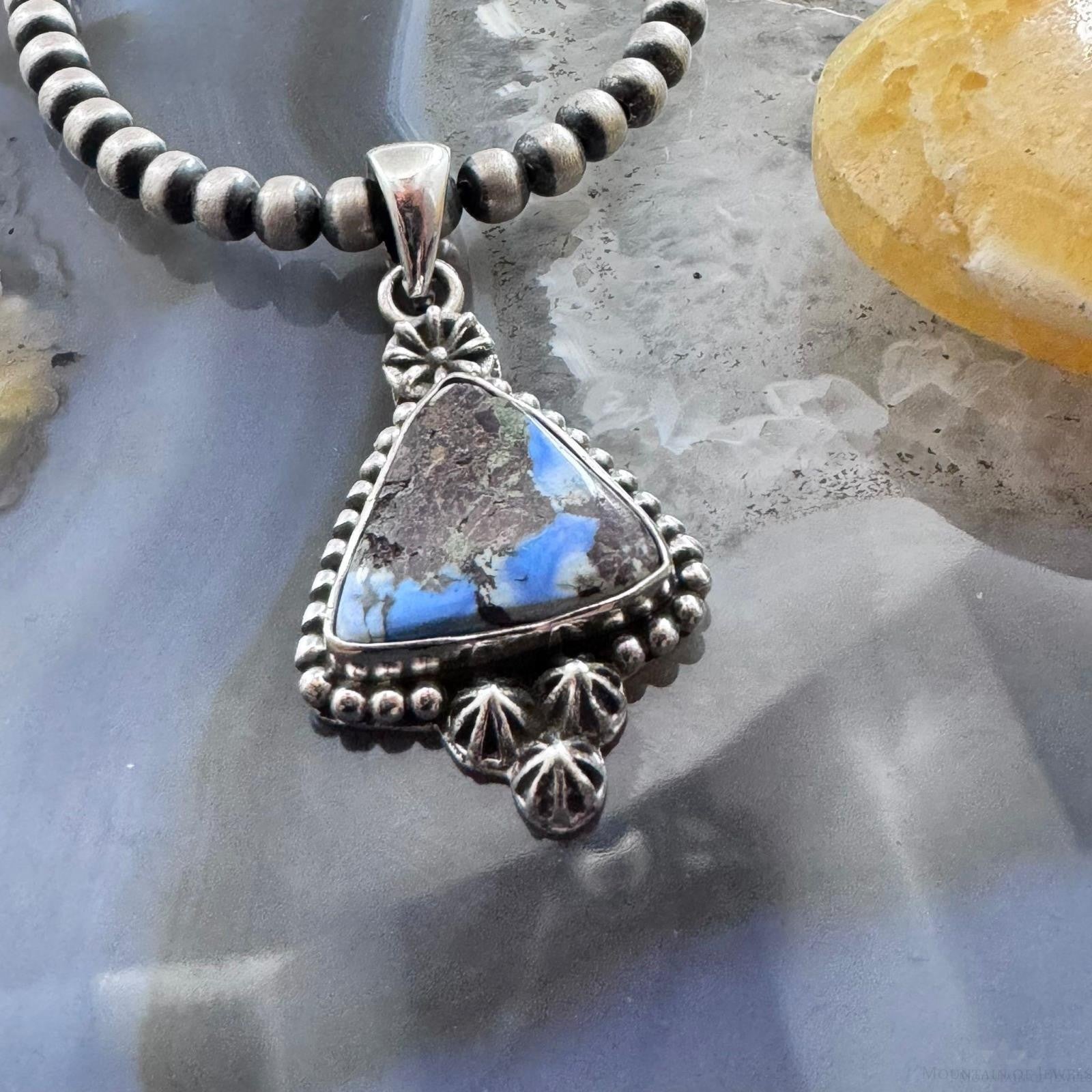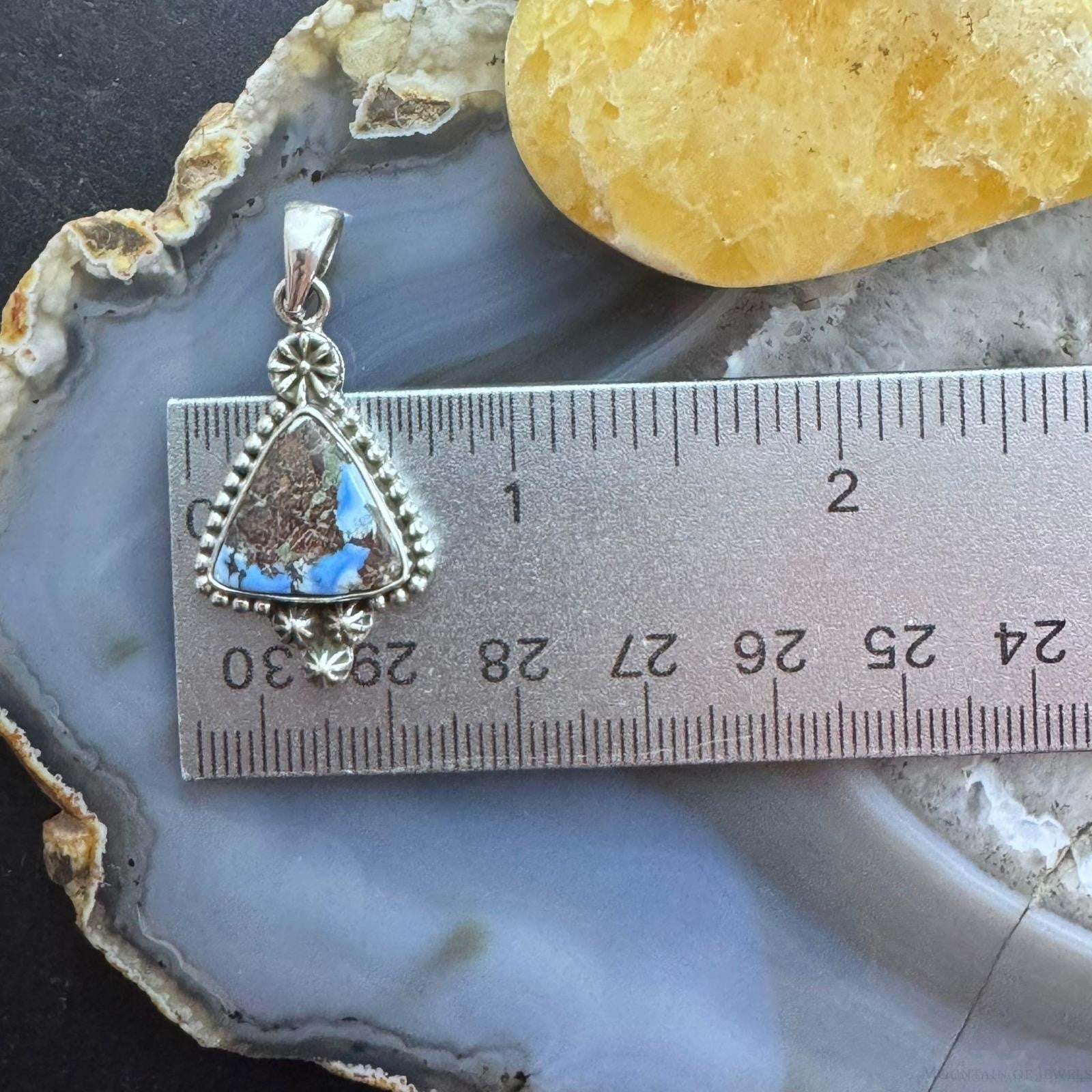 Sterling Silver Southwestern Style Triangle Golden Hill Turquoise Decorated Pendant For Women