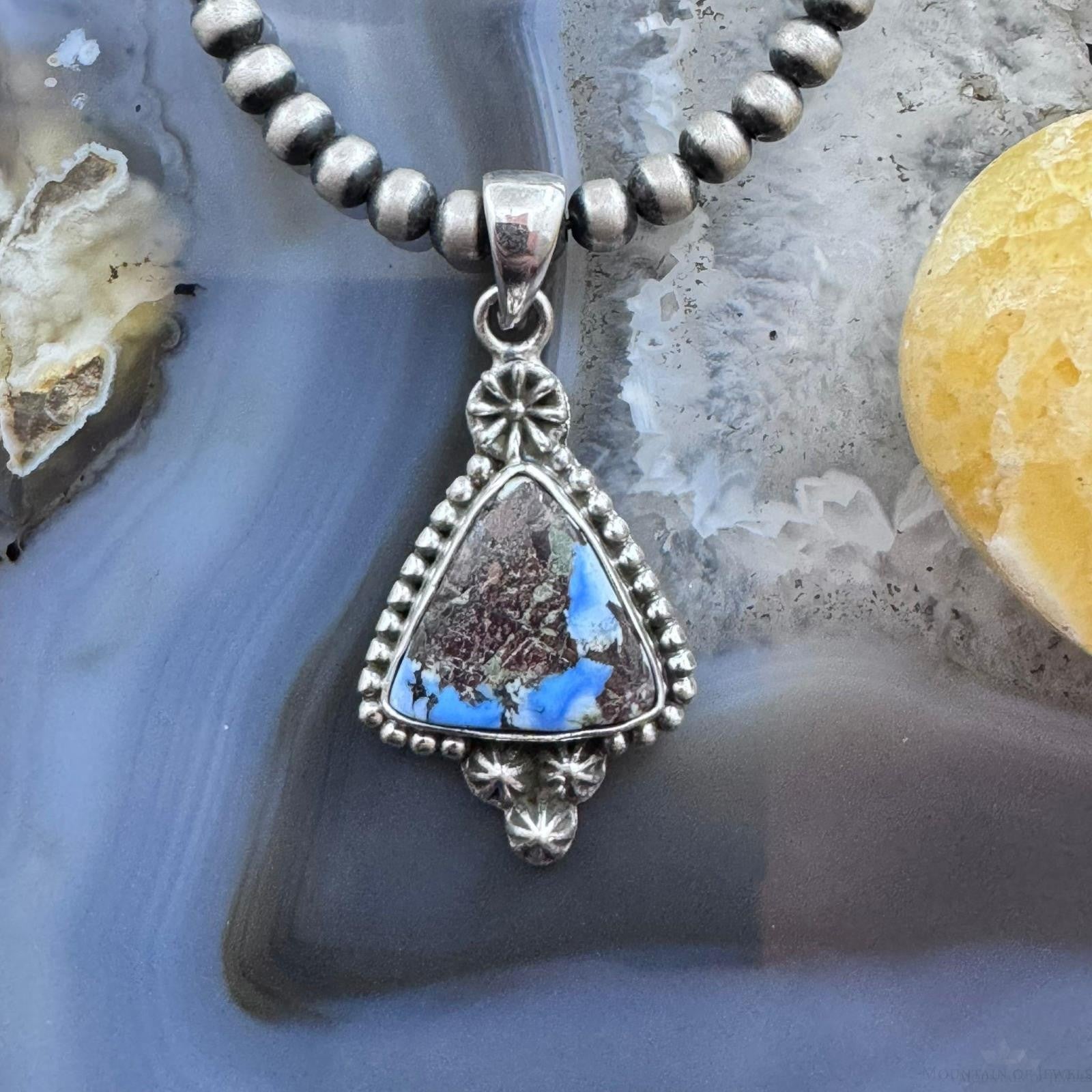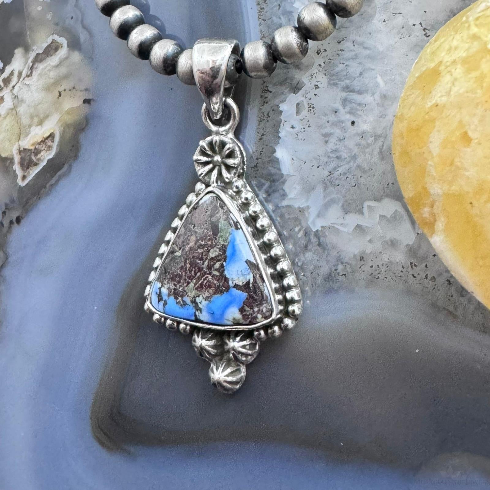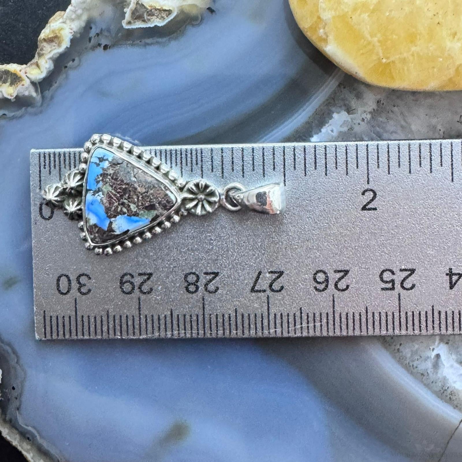 Sterling Silver Southwestern Style Triangle Golden Hill Turquoise Decorated Pendant For Women