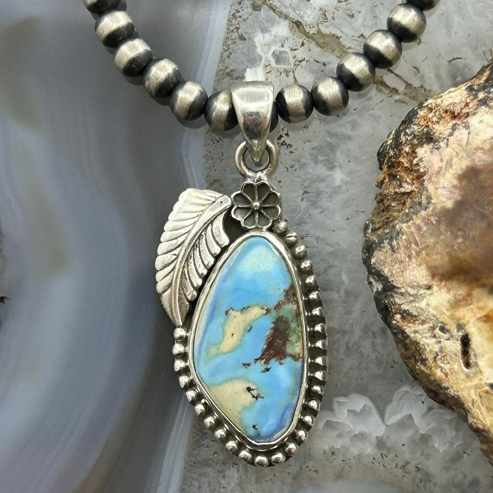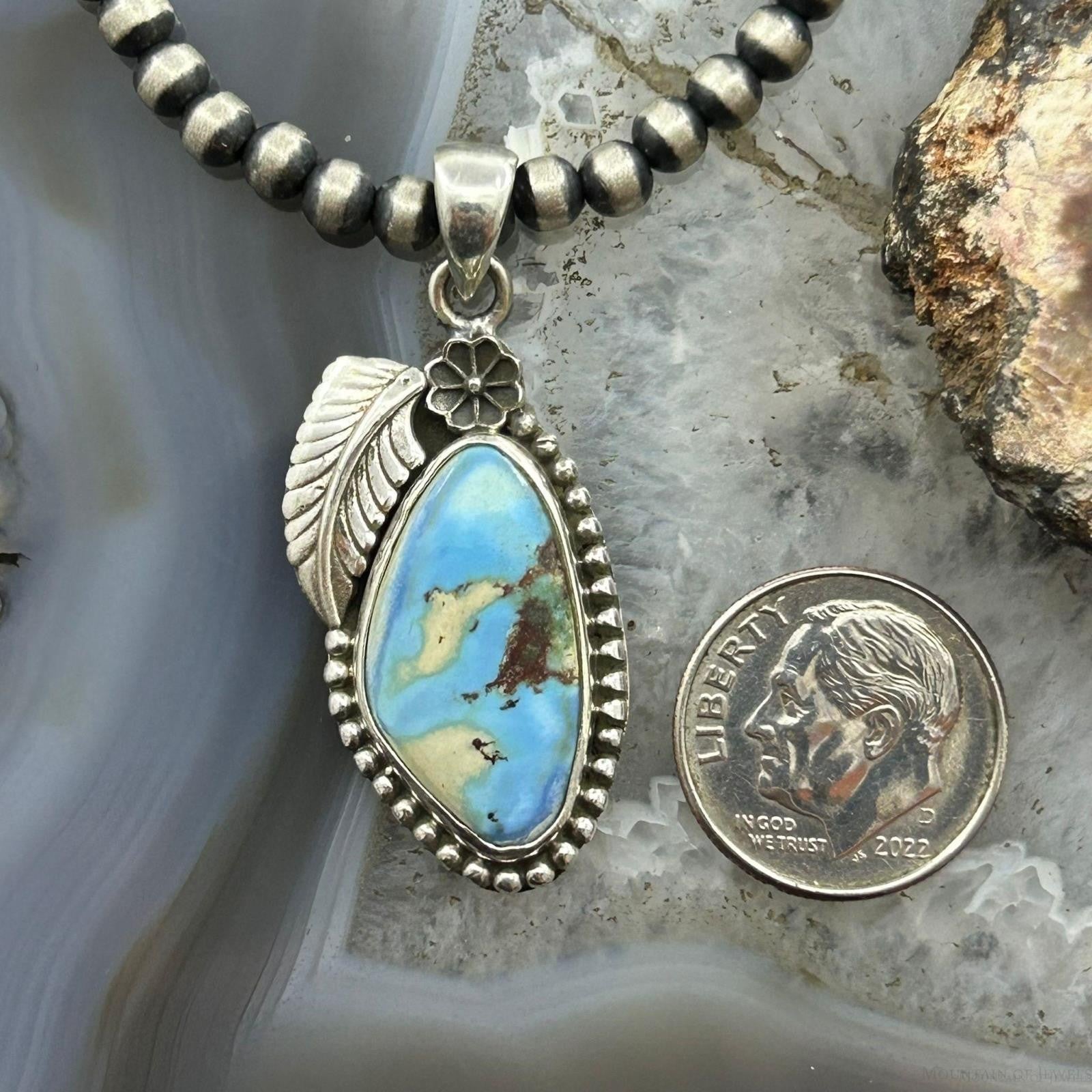 Sterling Silver Southwestern Style Triangular Golden Hill Turquoise Pendant For Women