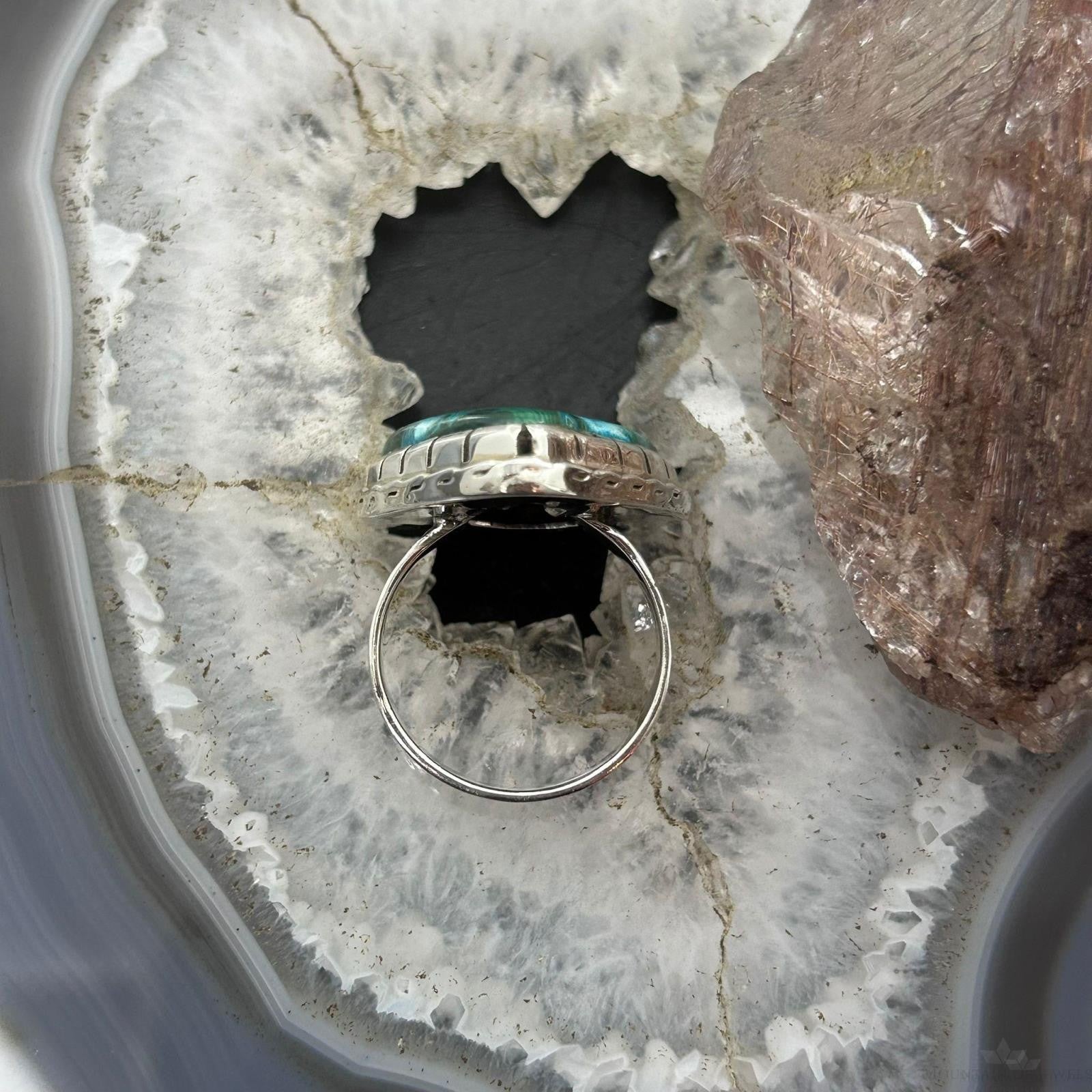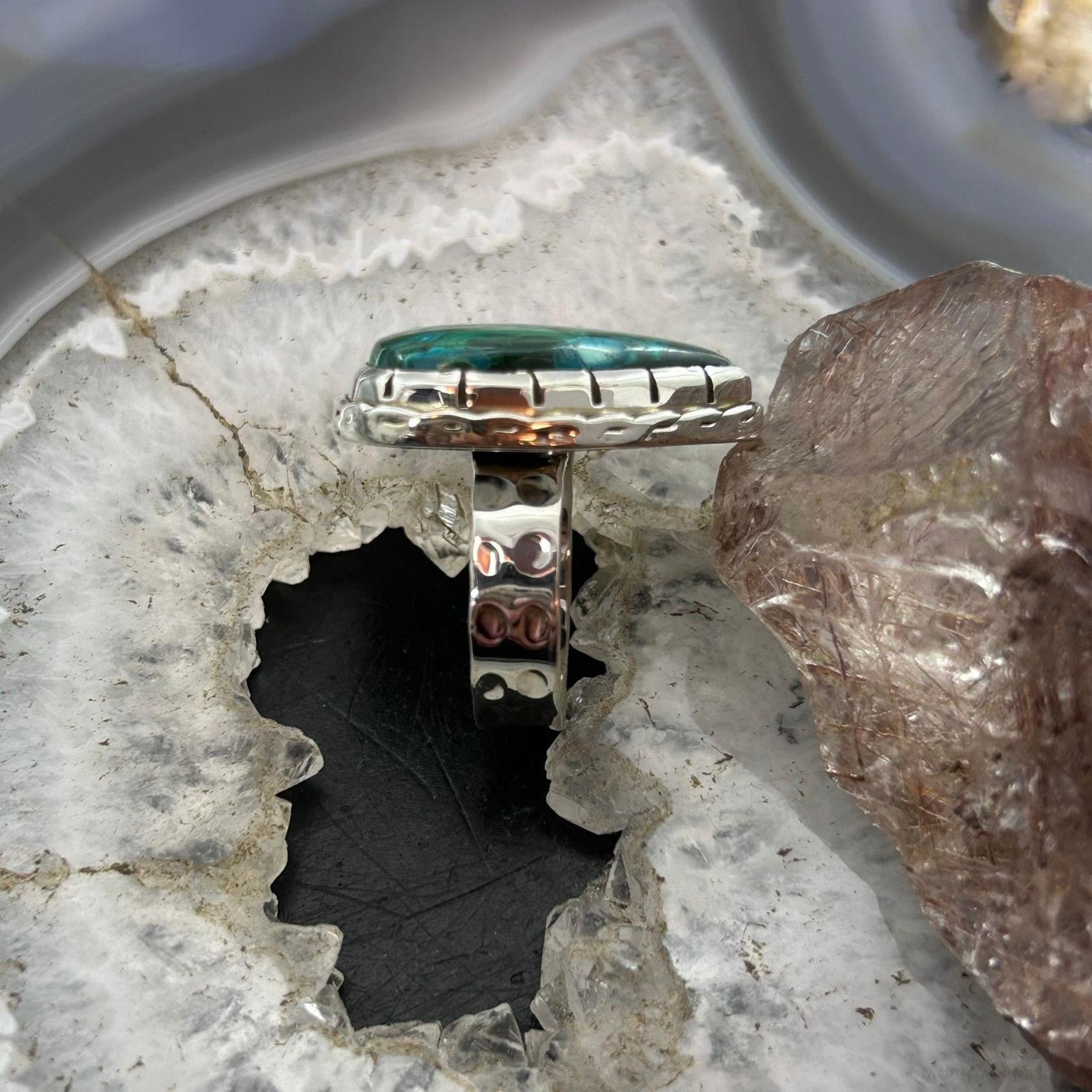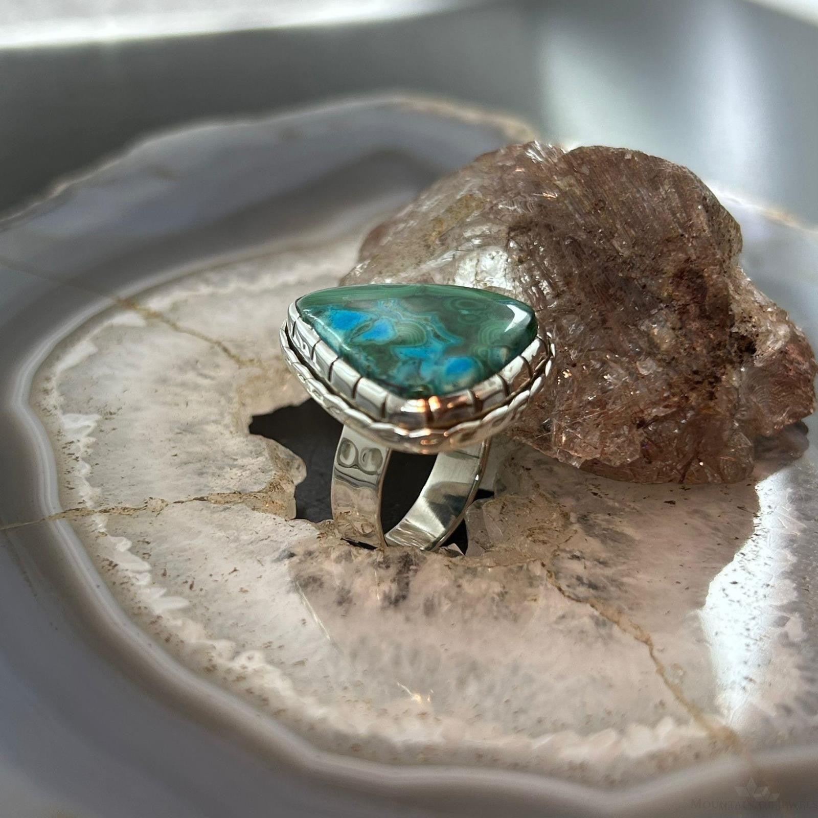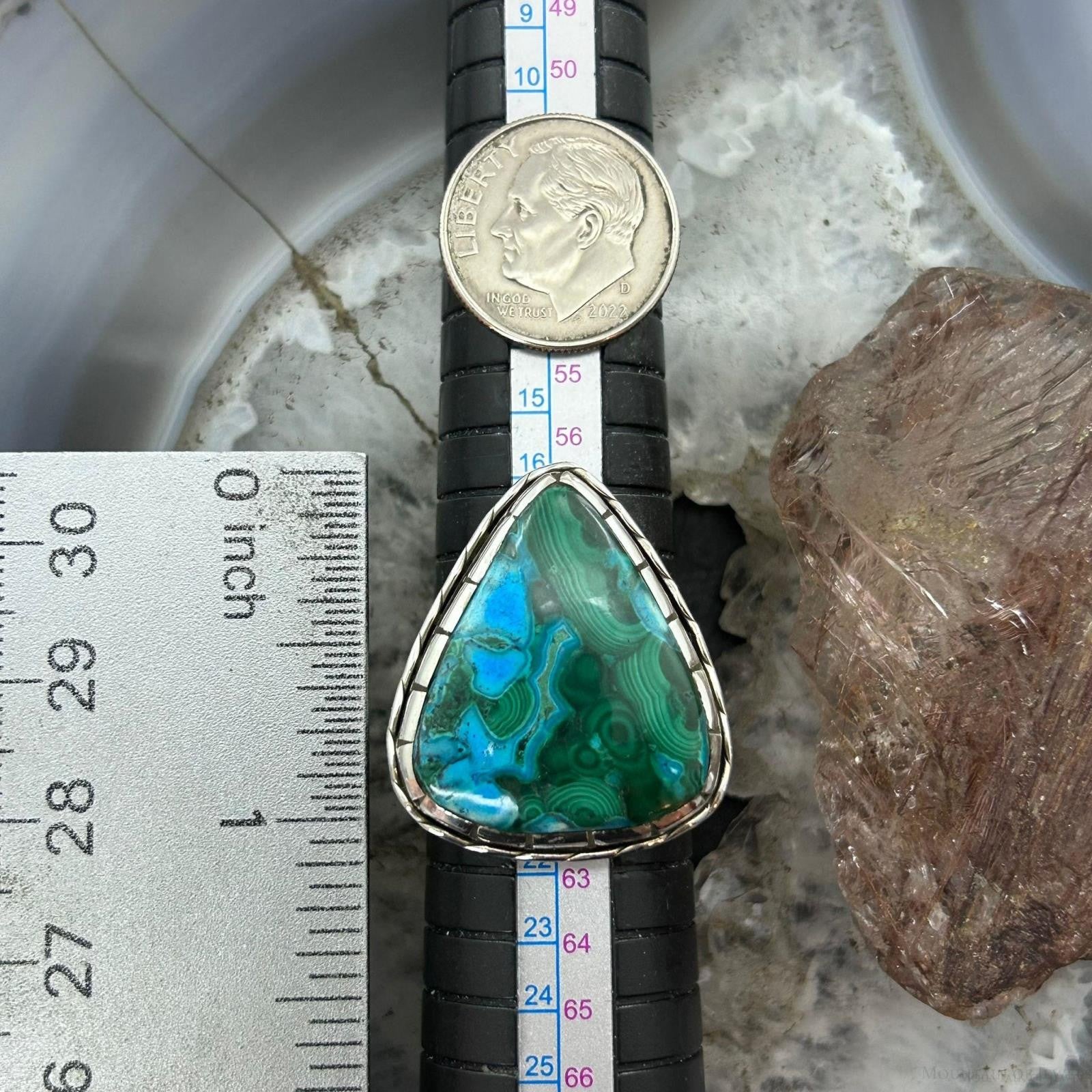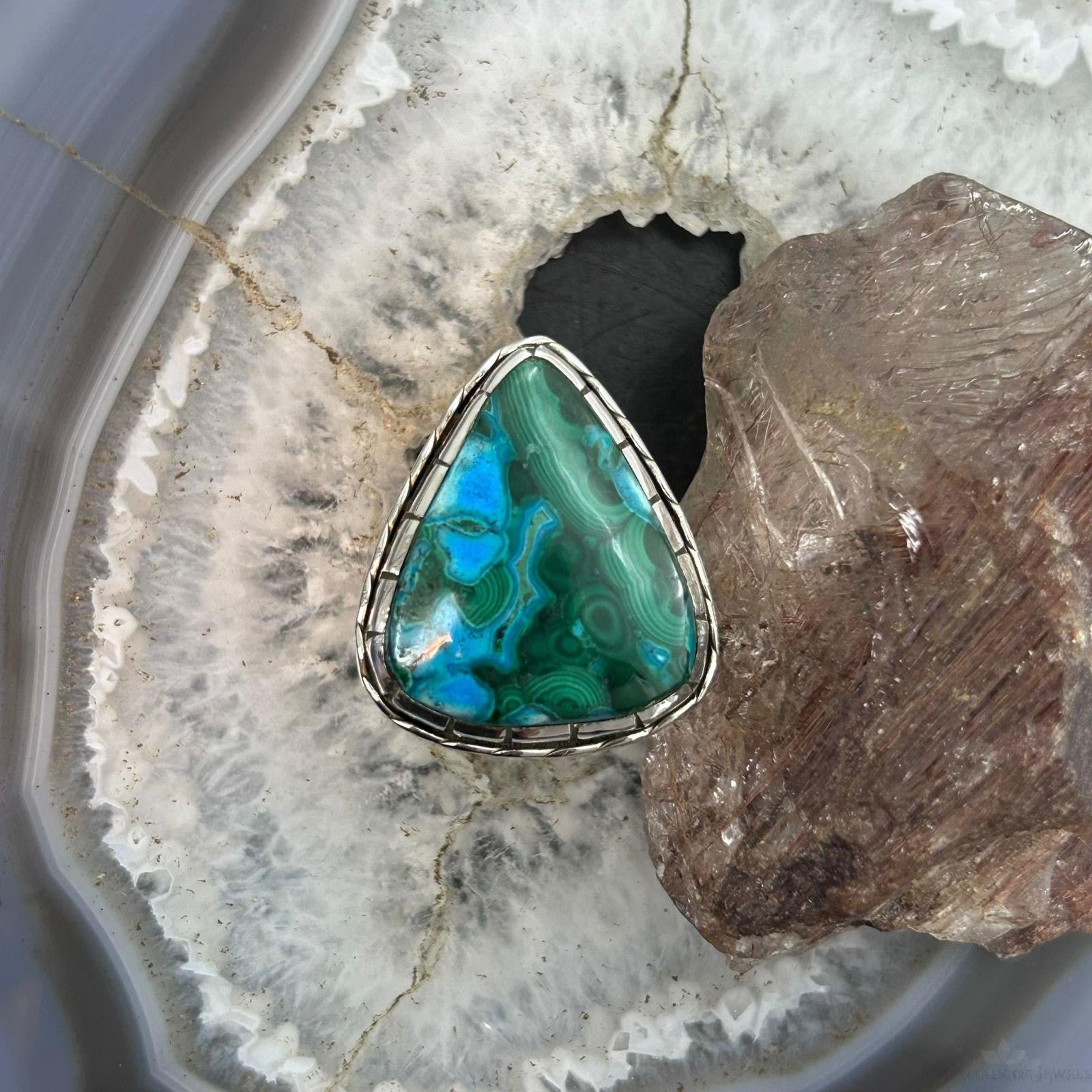 Sterling Silver Southwestern Style Triangular Malachite Chrysocolla Ring Size 9 For Women