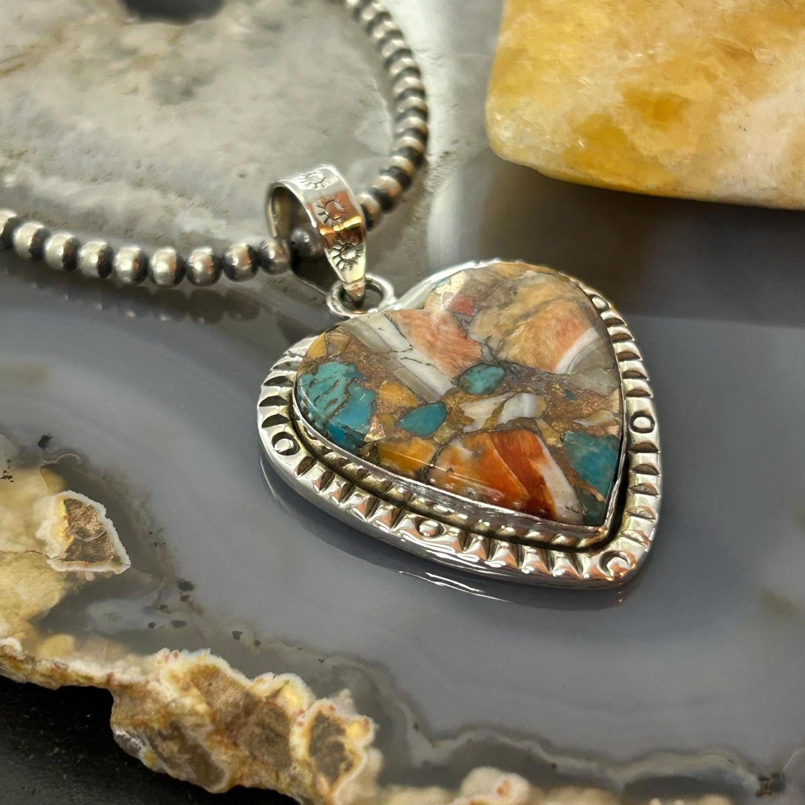Sterling Silver Southwestern Style Turquoise Spiny Oyster Heart Pendant For Women