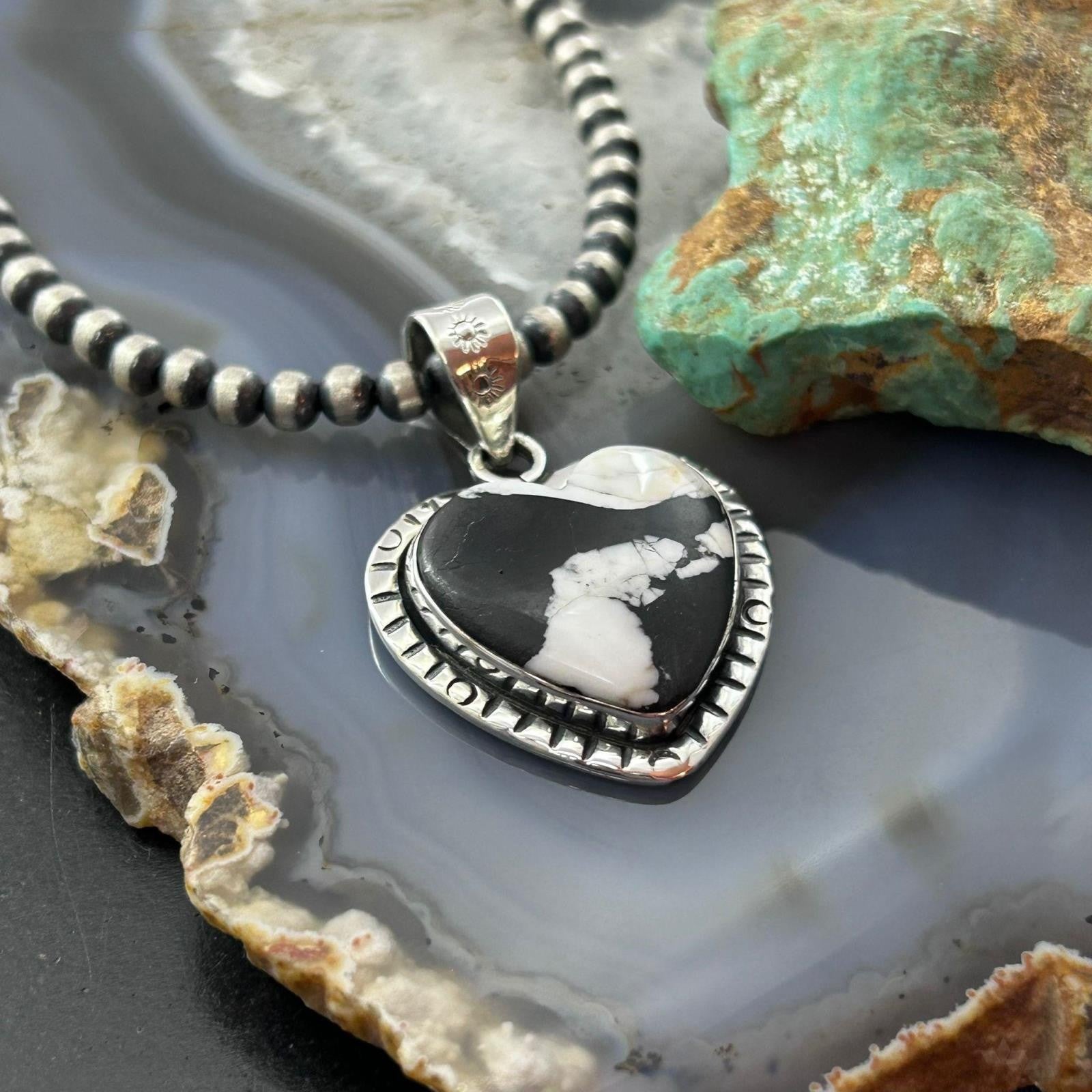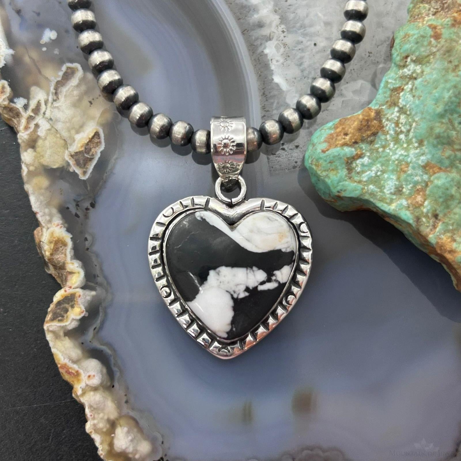 Sterling Silver Southwestern Style White Buffalo Decorated Heart Pendant For Women