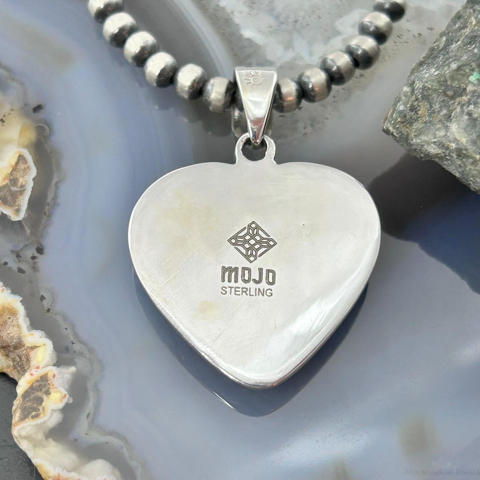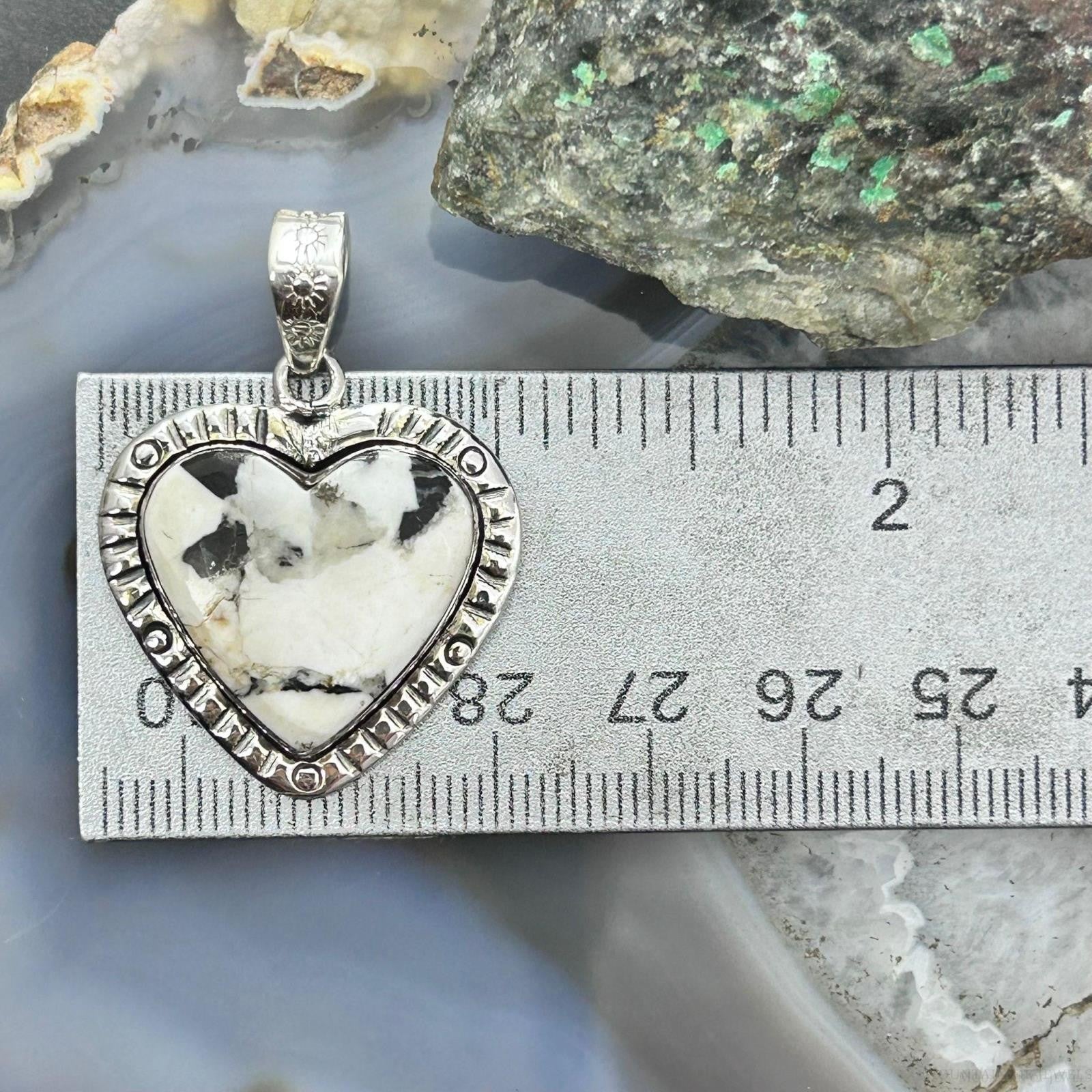Sterling Silver Southwestern Style White Buffalo Decorated Heart Pendant For Women #3