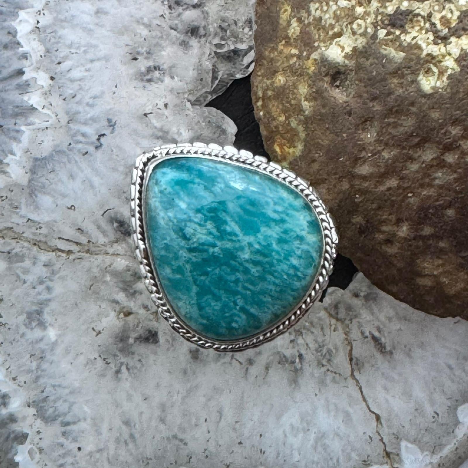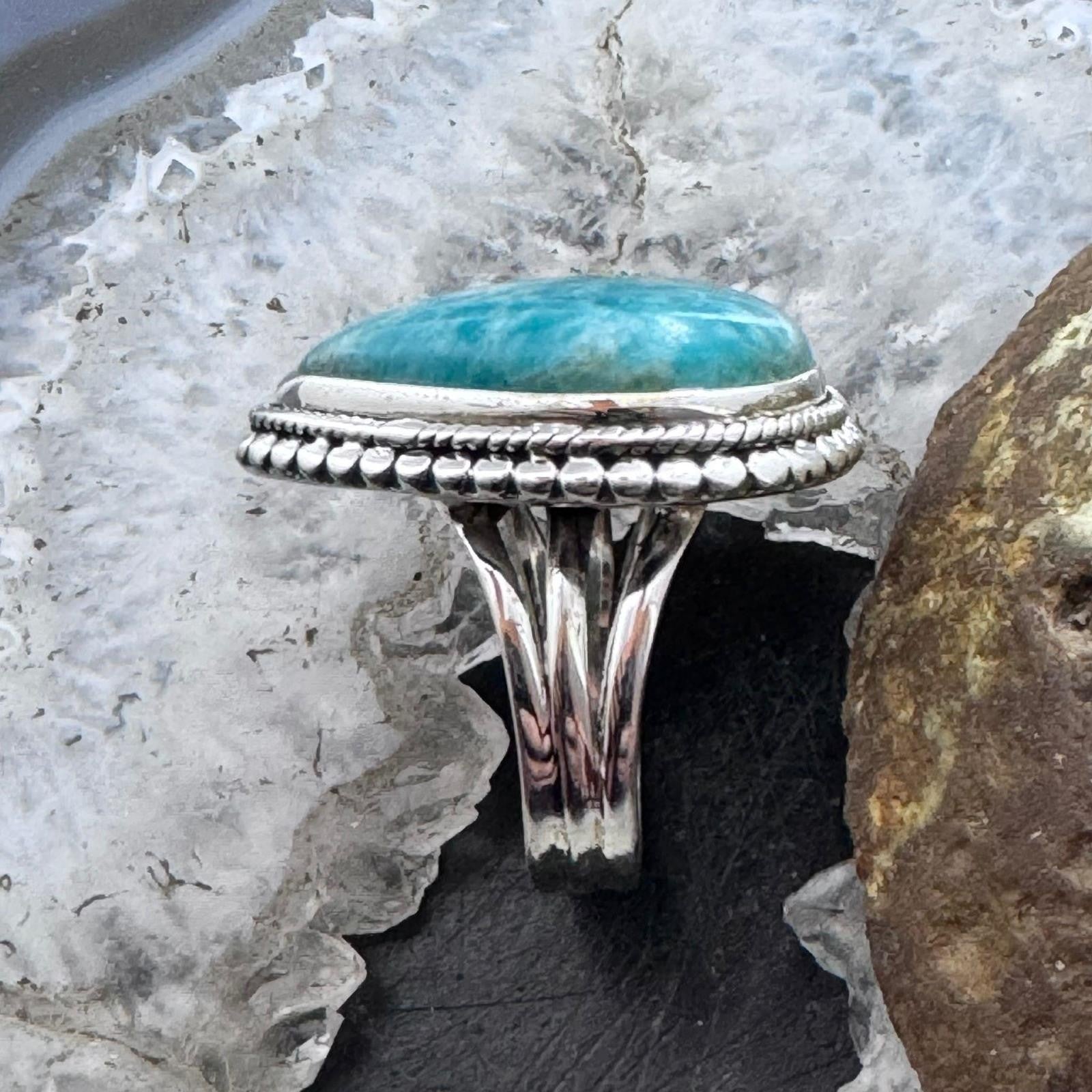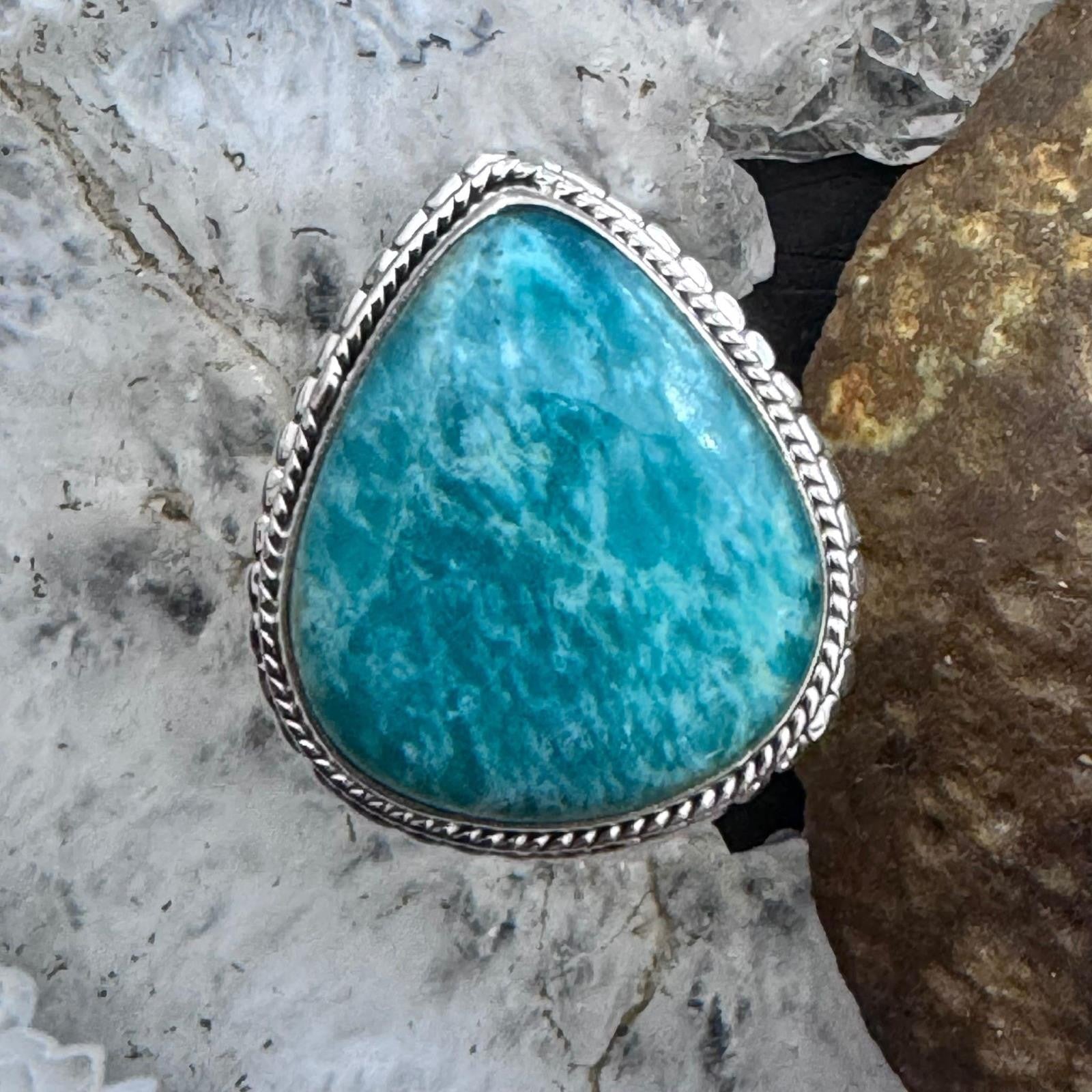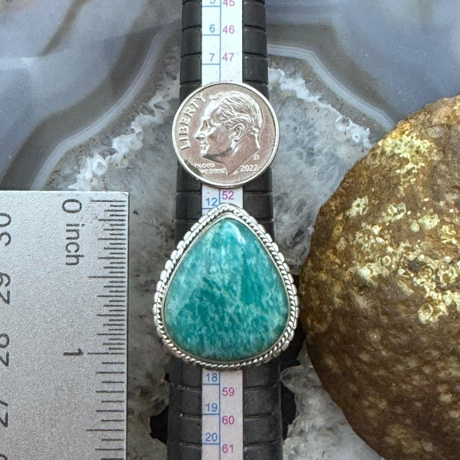 Sterling Southwestern Style Wide Teardrop Amazonite Decorated Ring 7.5 For Women
