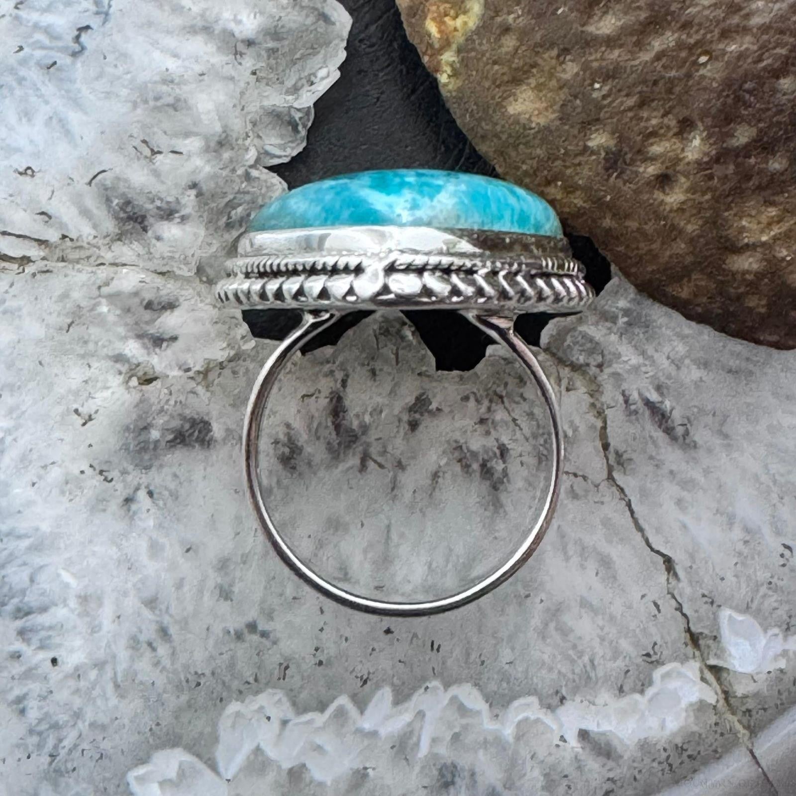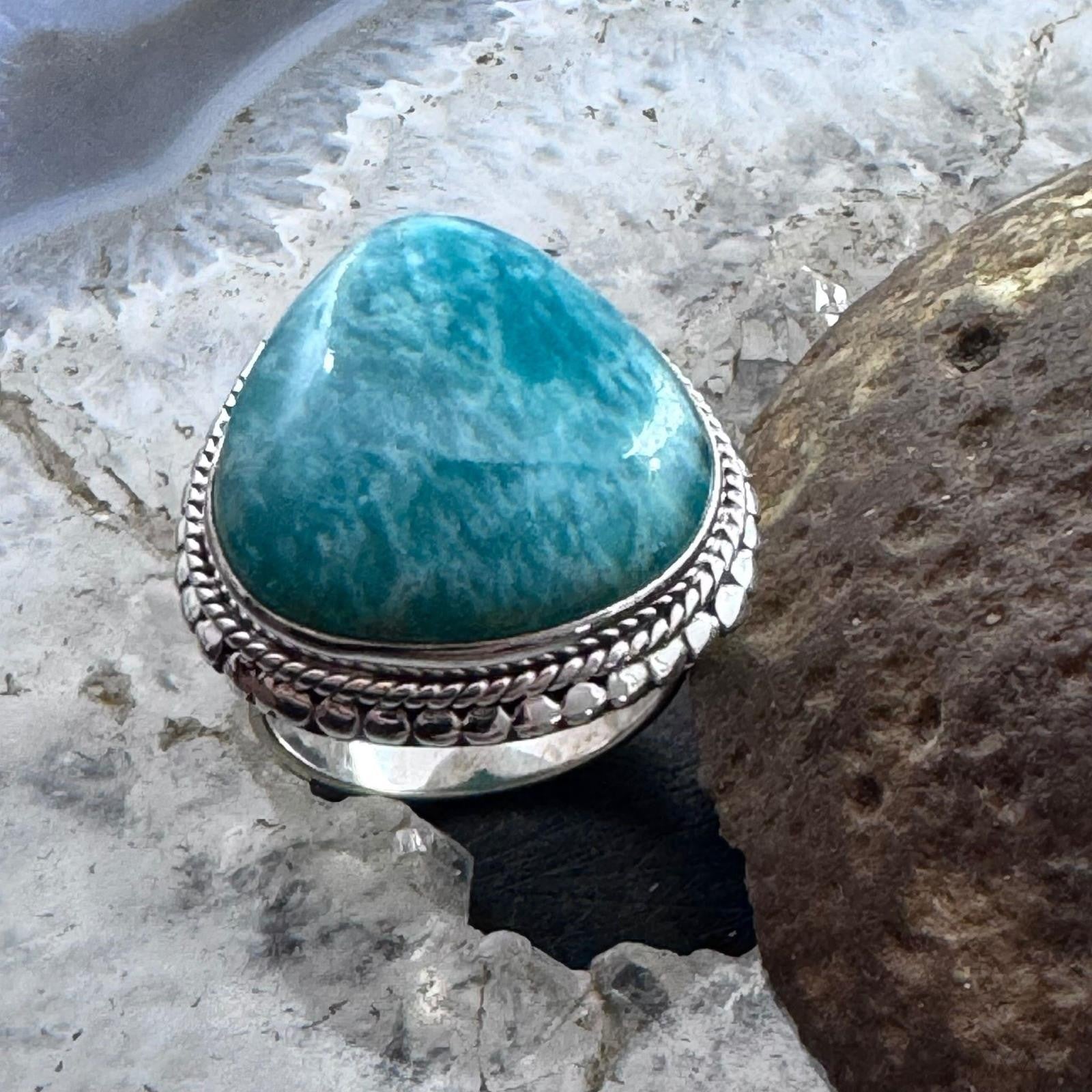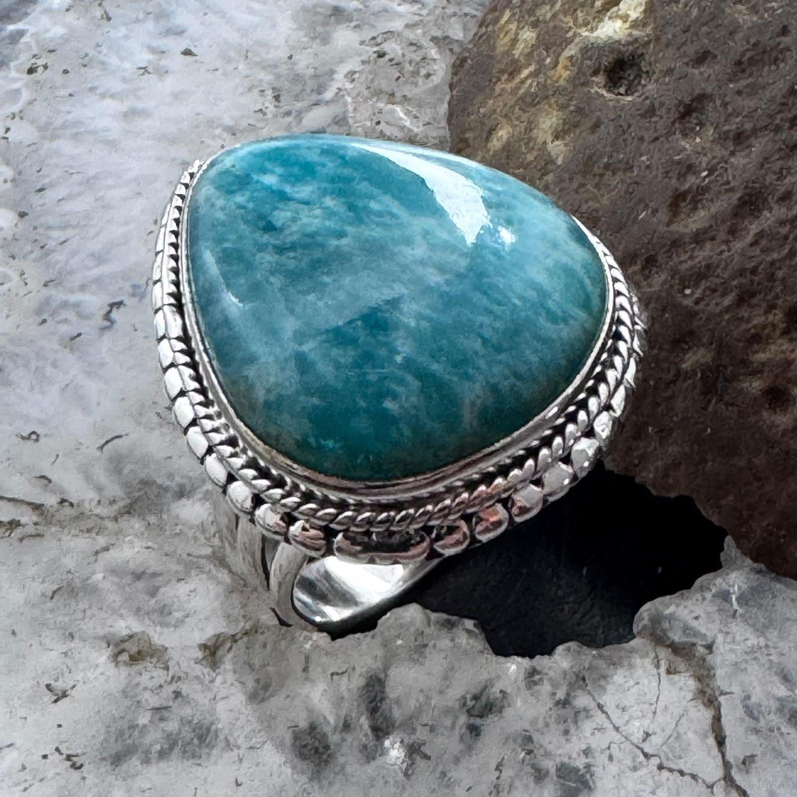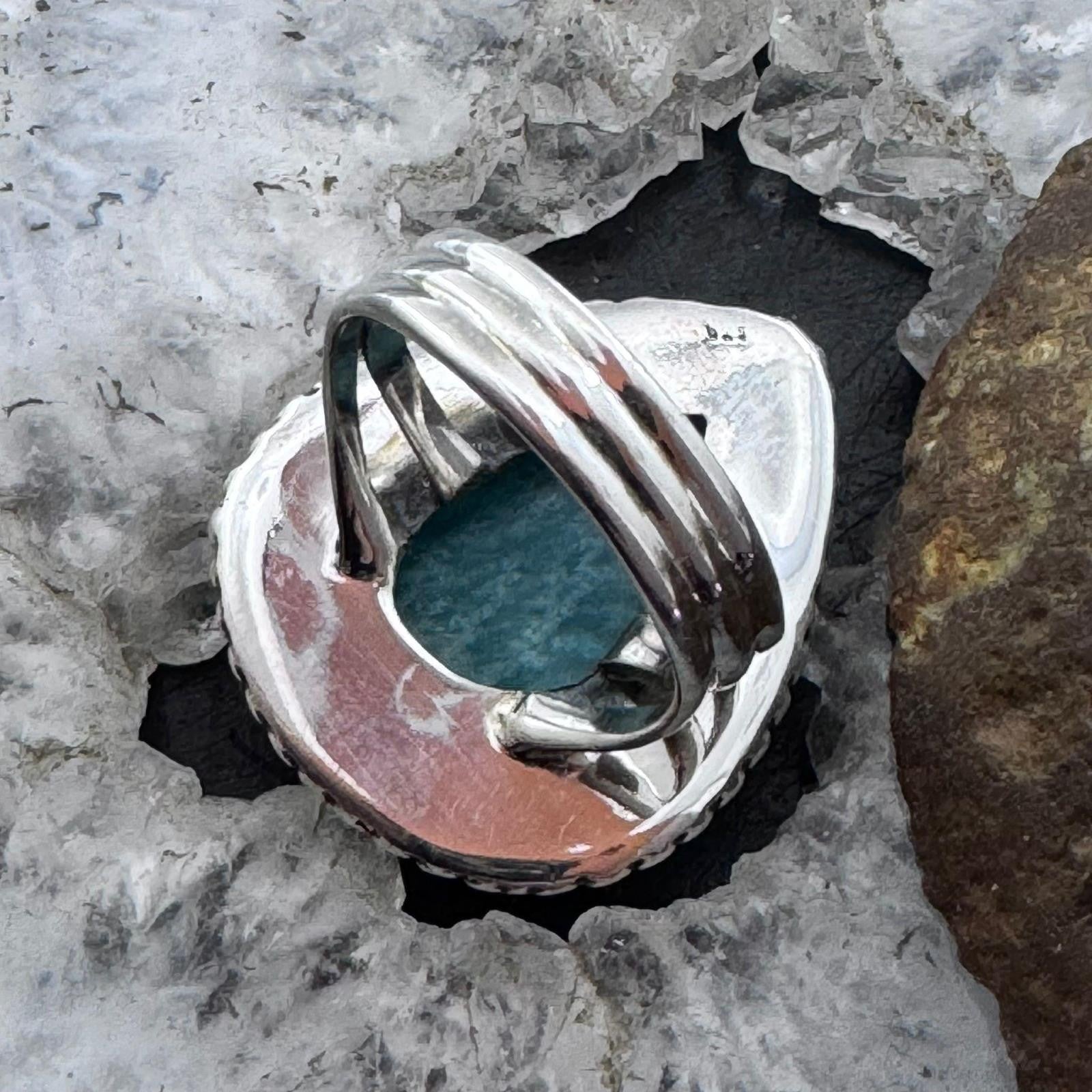 Sterling Southwestern Style Wide Teardrop Amazonite Decorated Ring 7.5 For Women