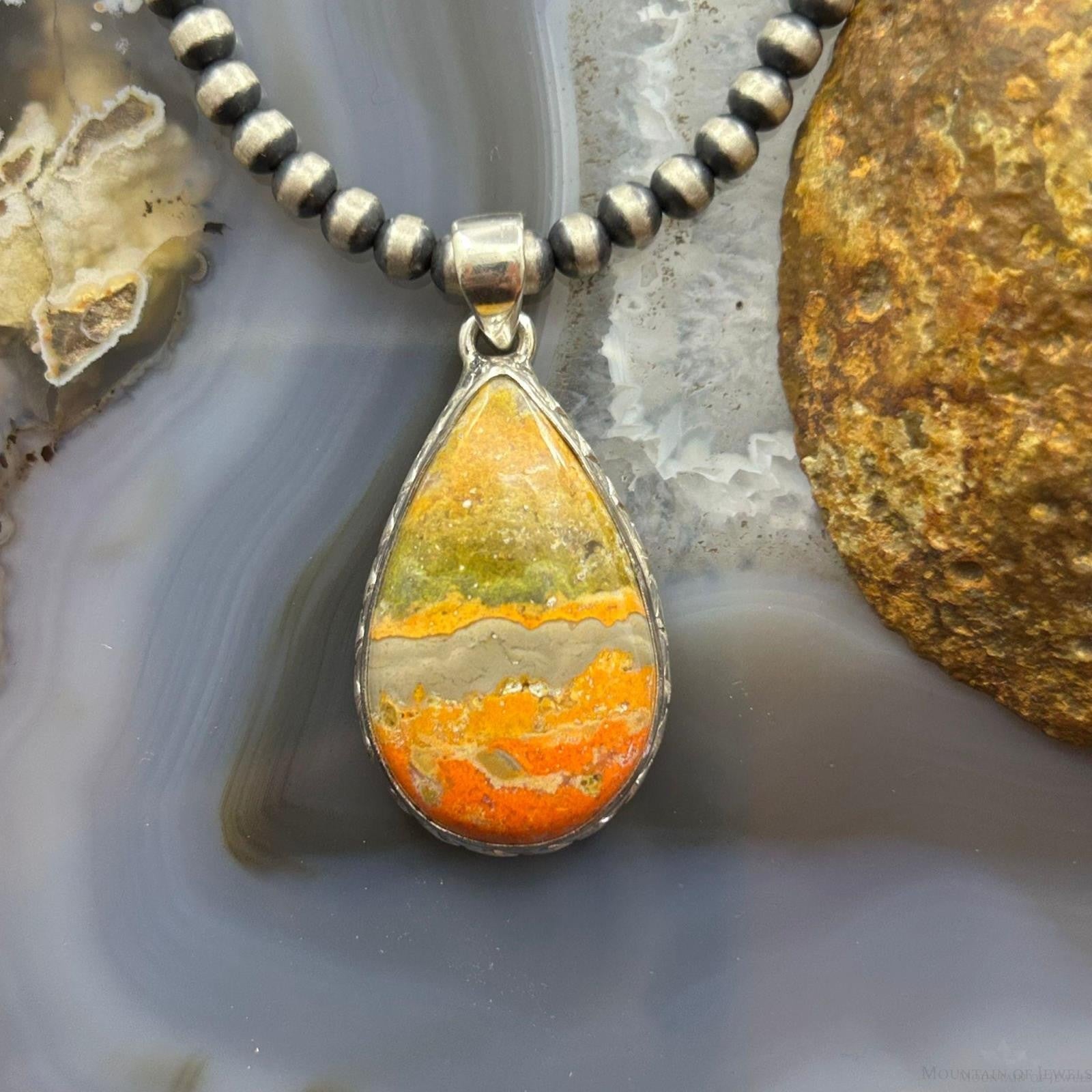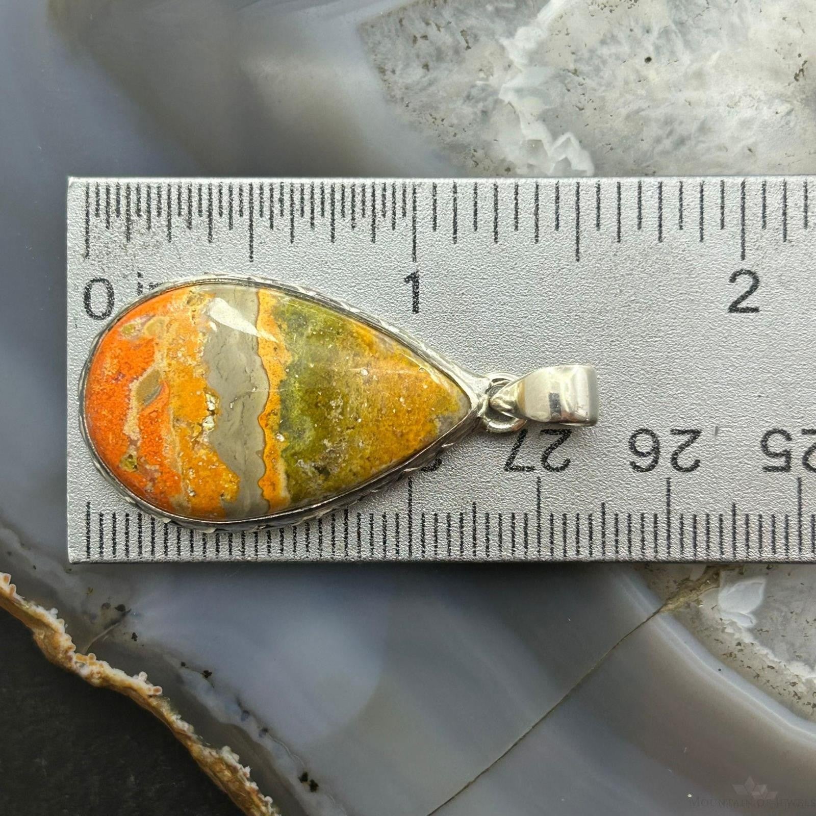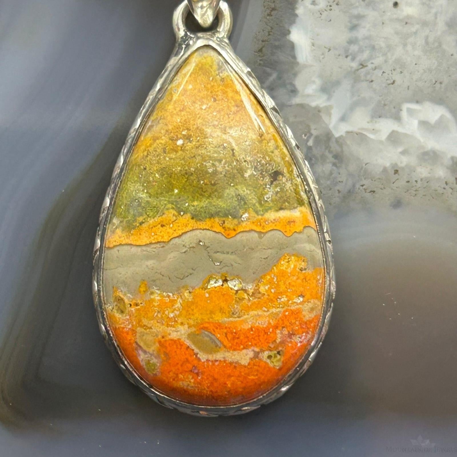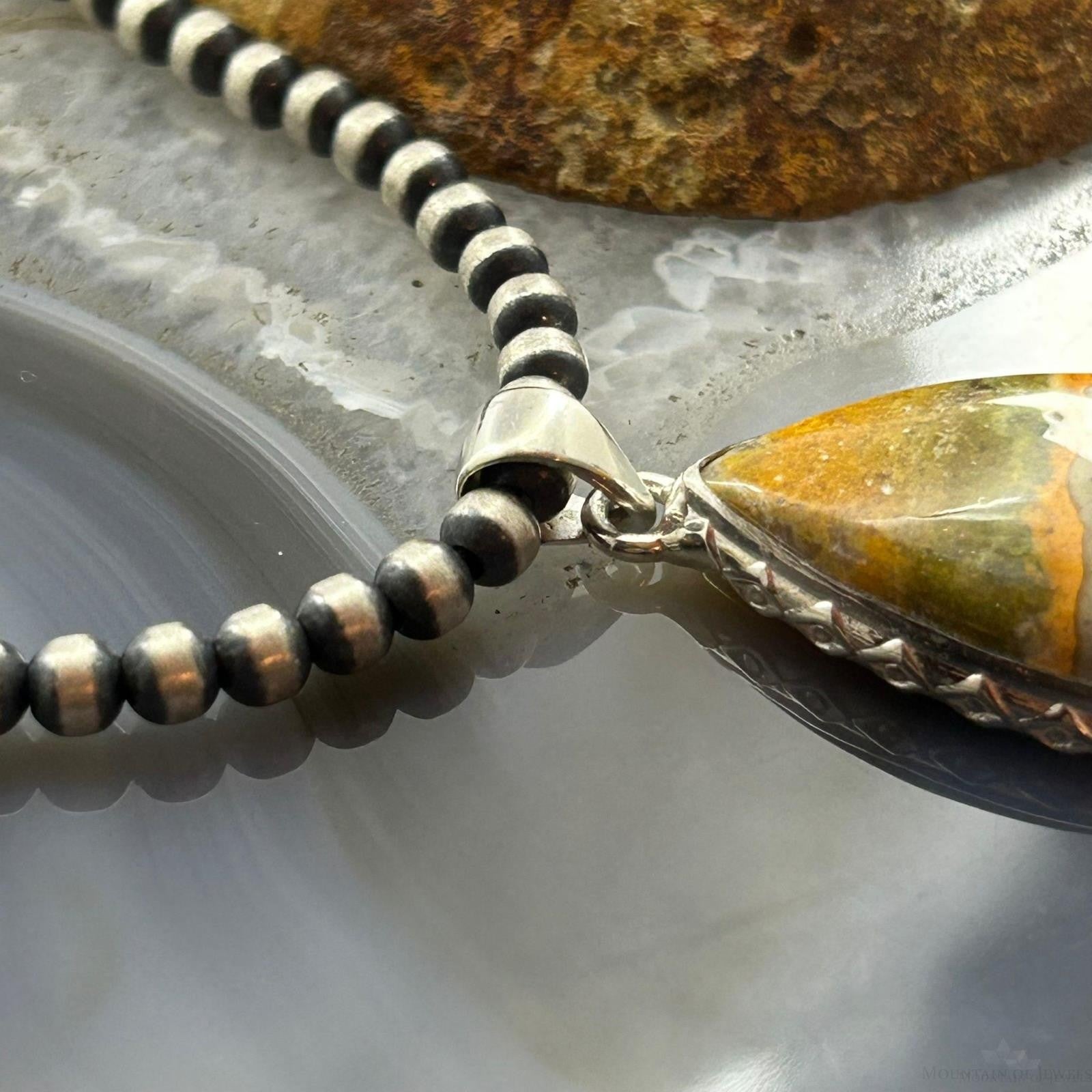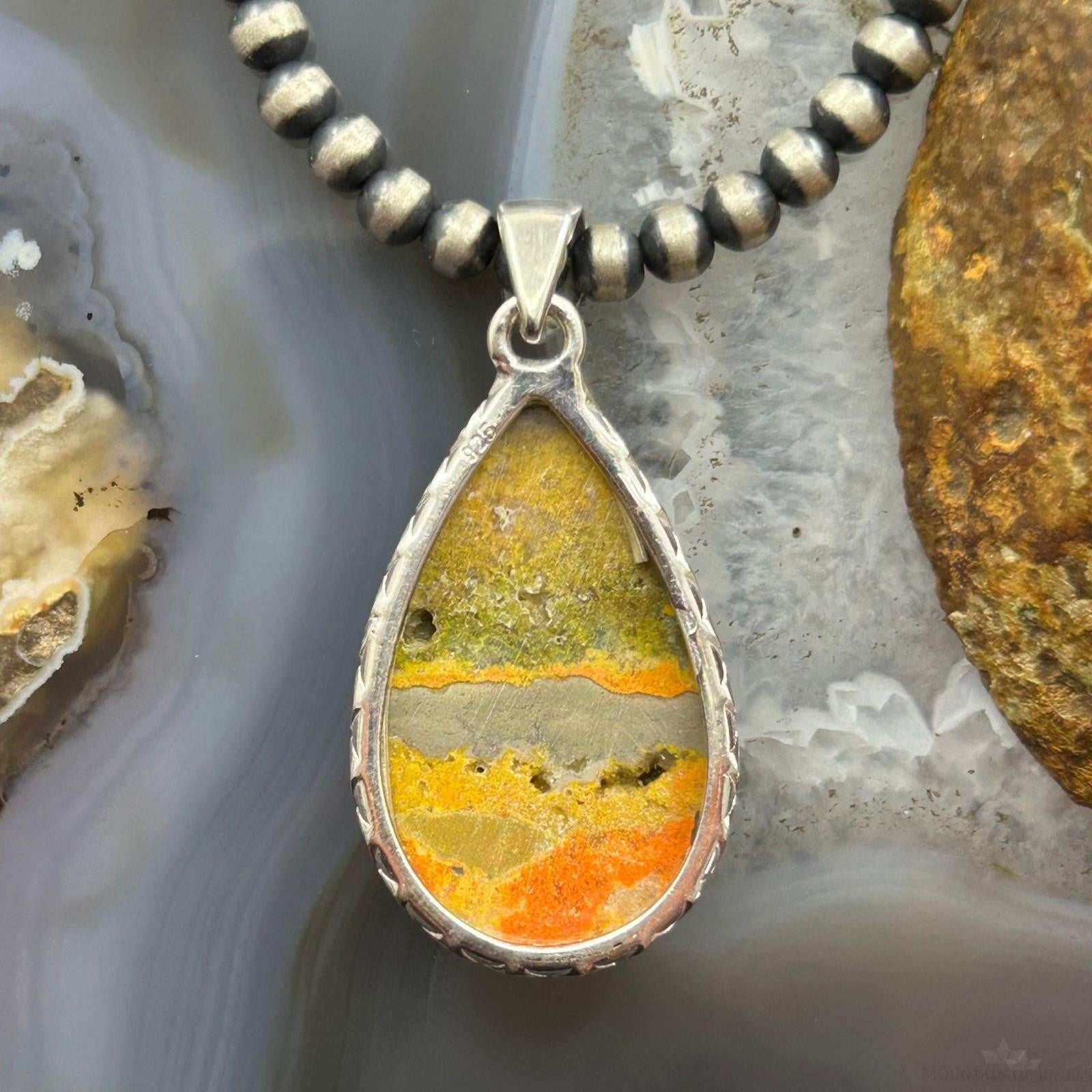 Sterling Southwestern Style Wide Teardrop Bumblebee Jasper Decorated Pendant