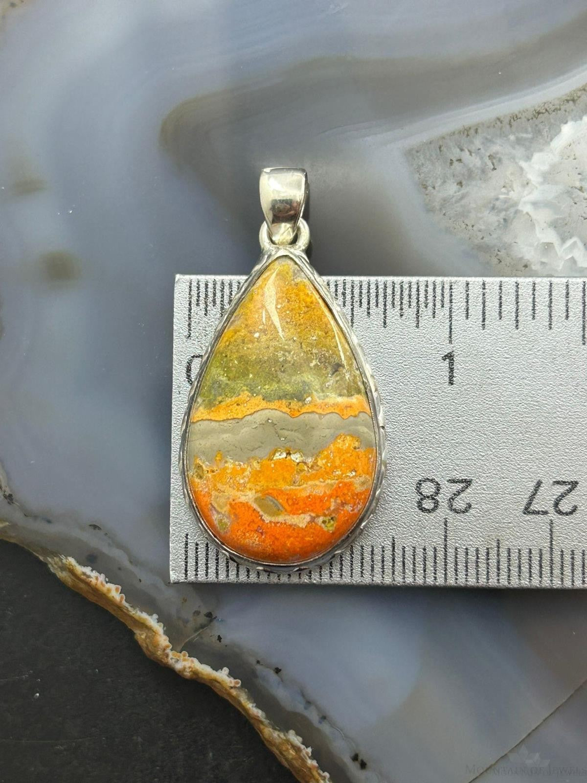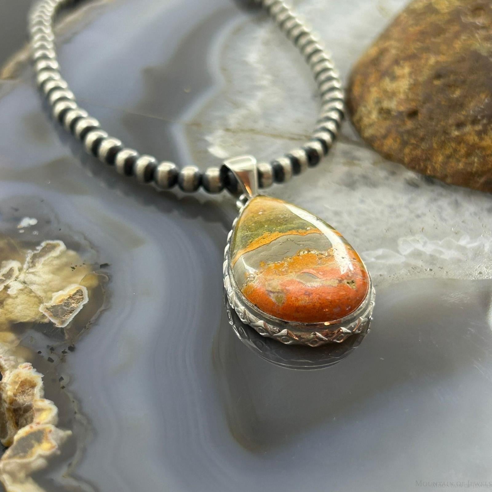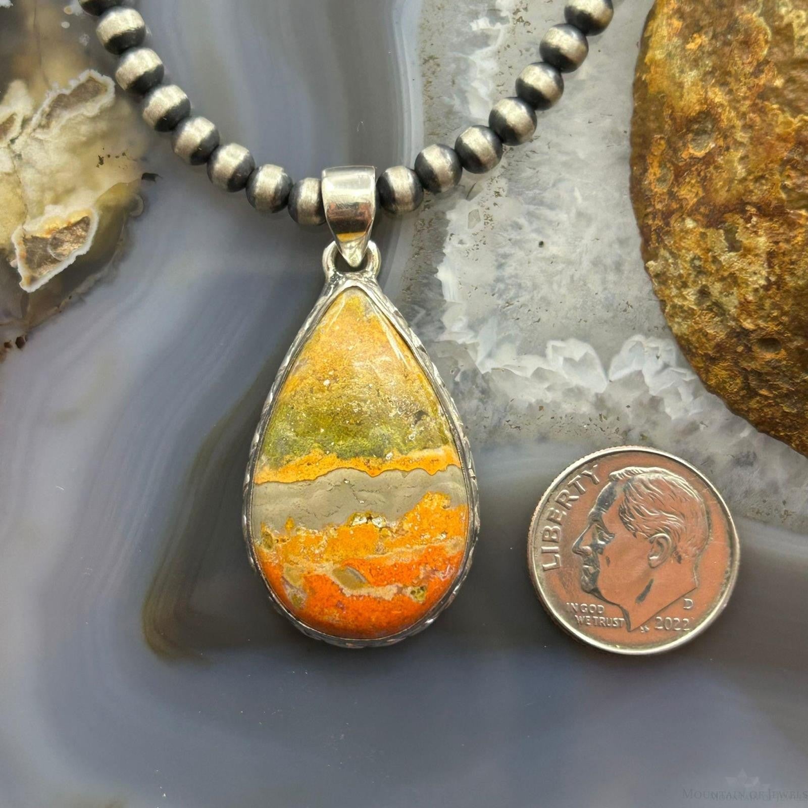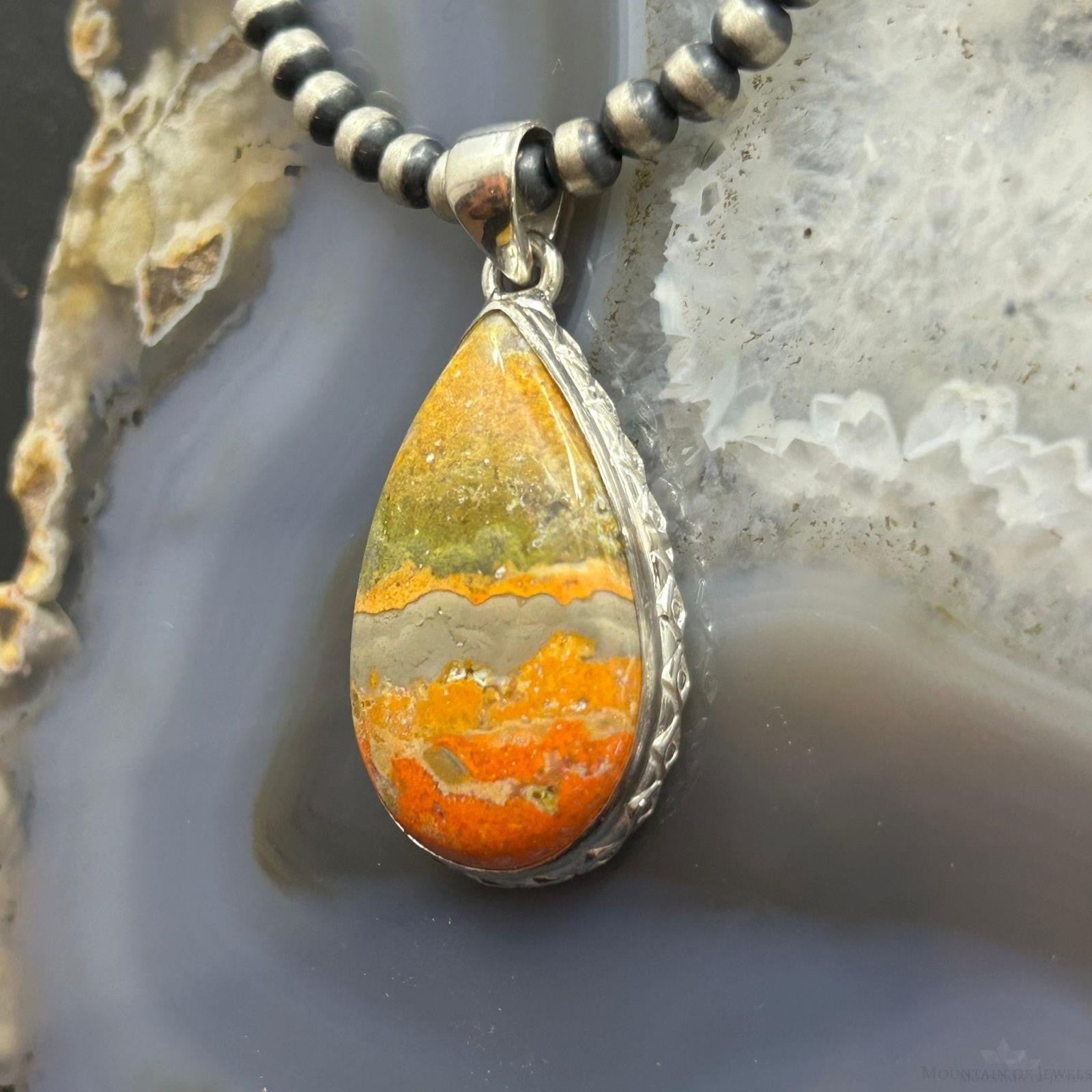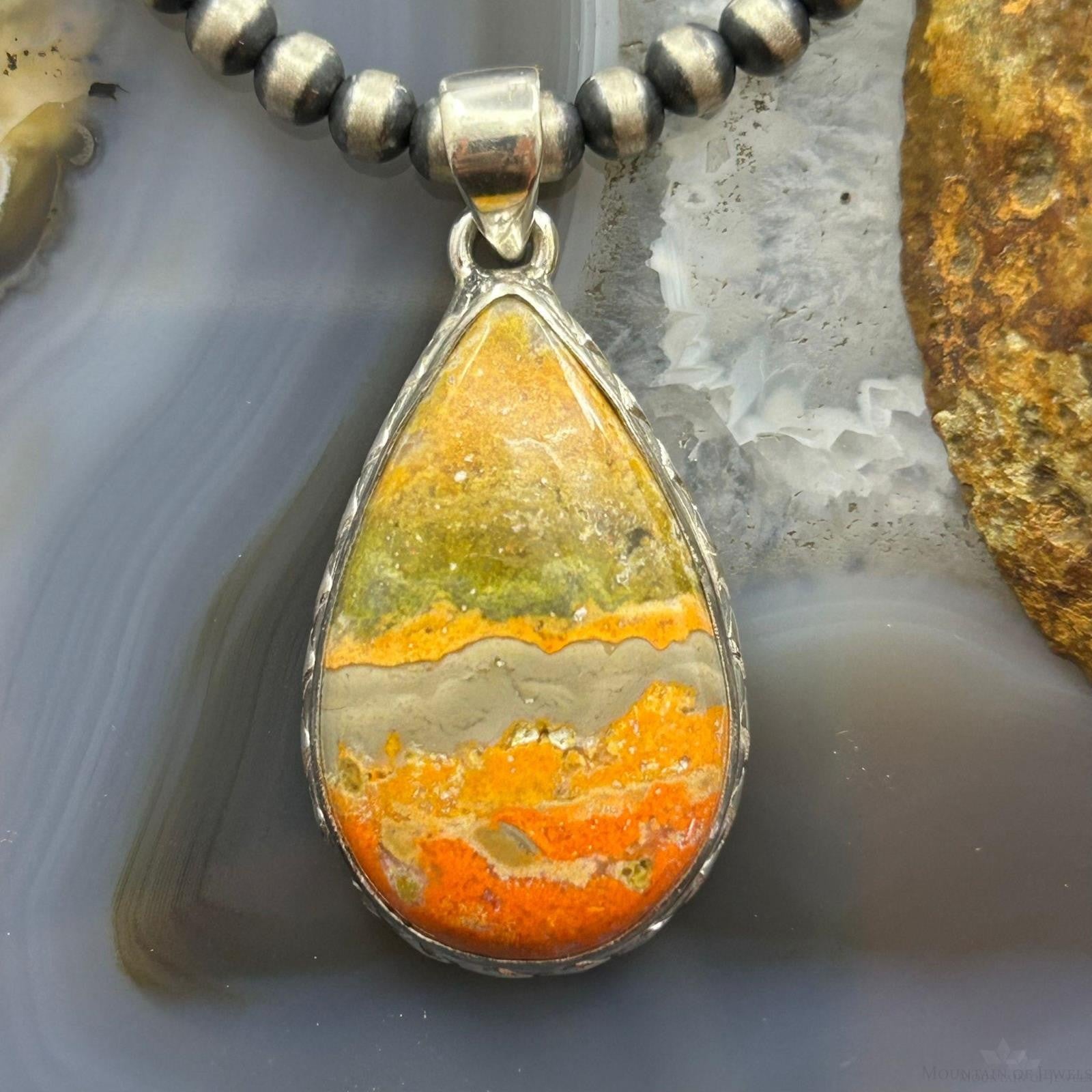 Sterling Southwestern Style Wide Teardrop Bumblebee Jasper Decorated Pendant