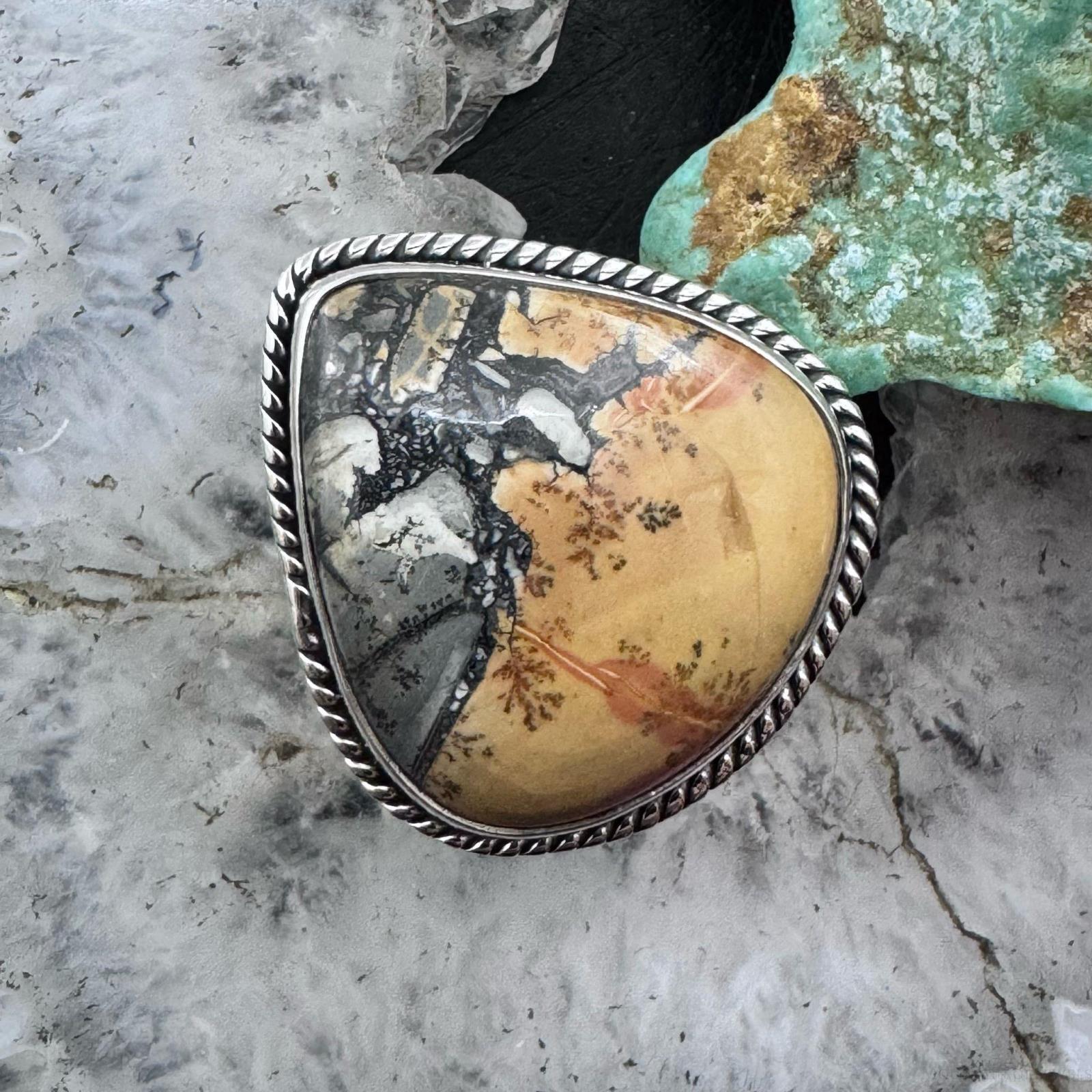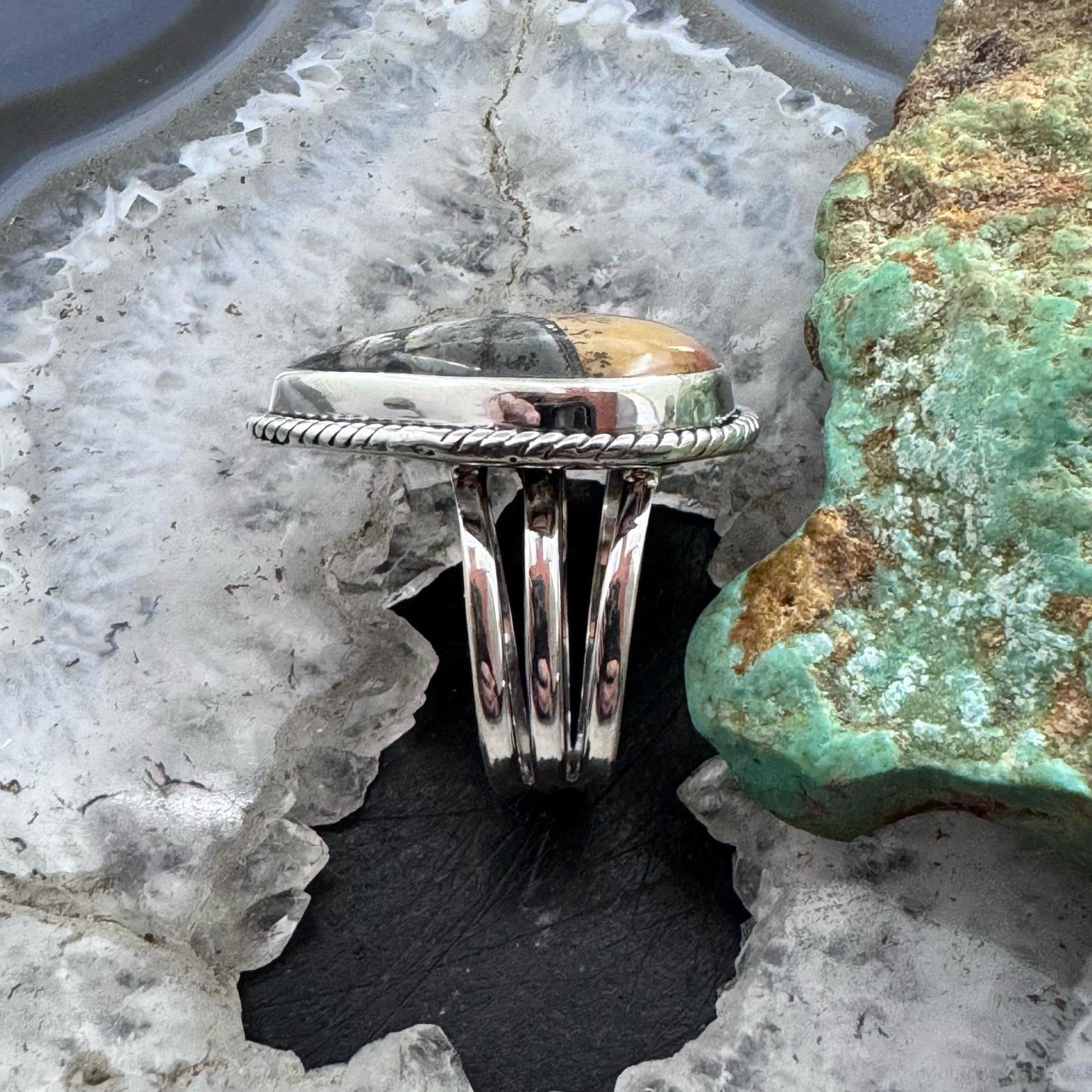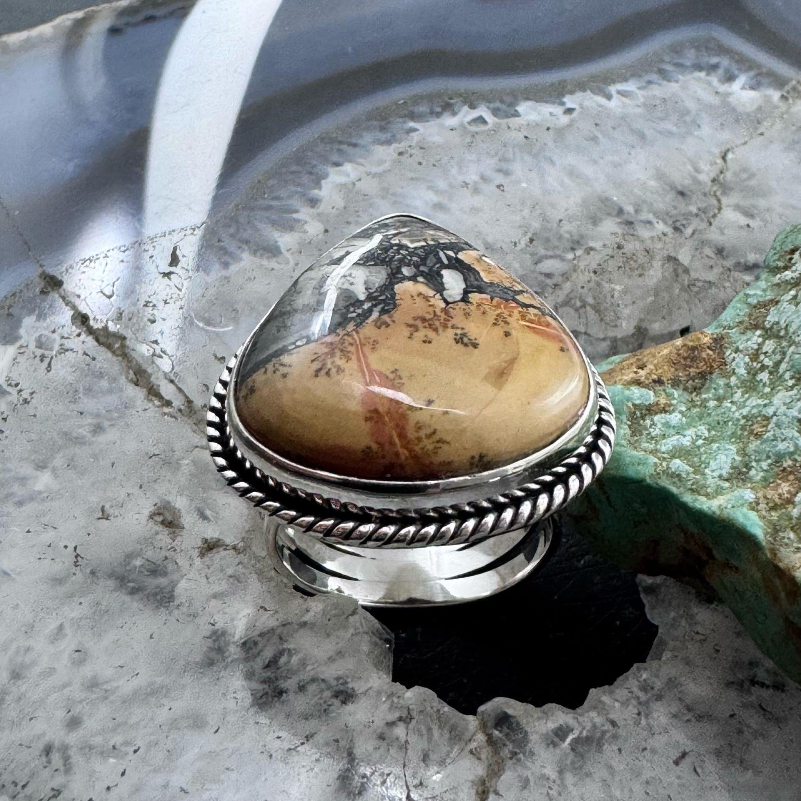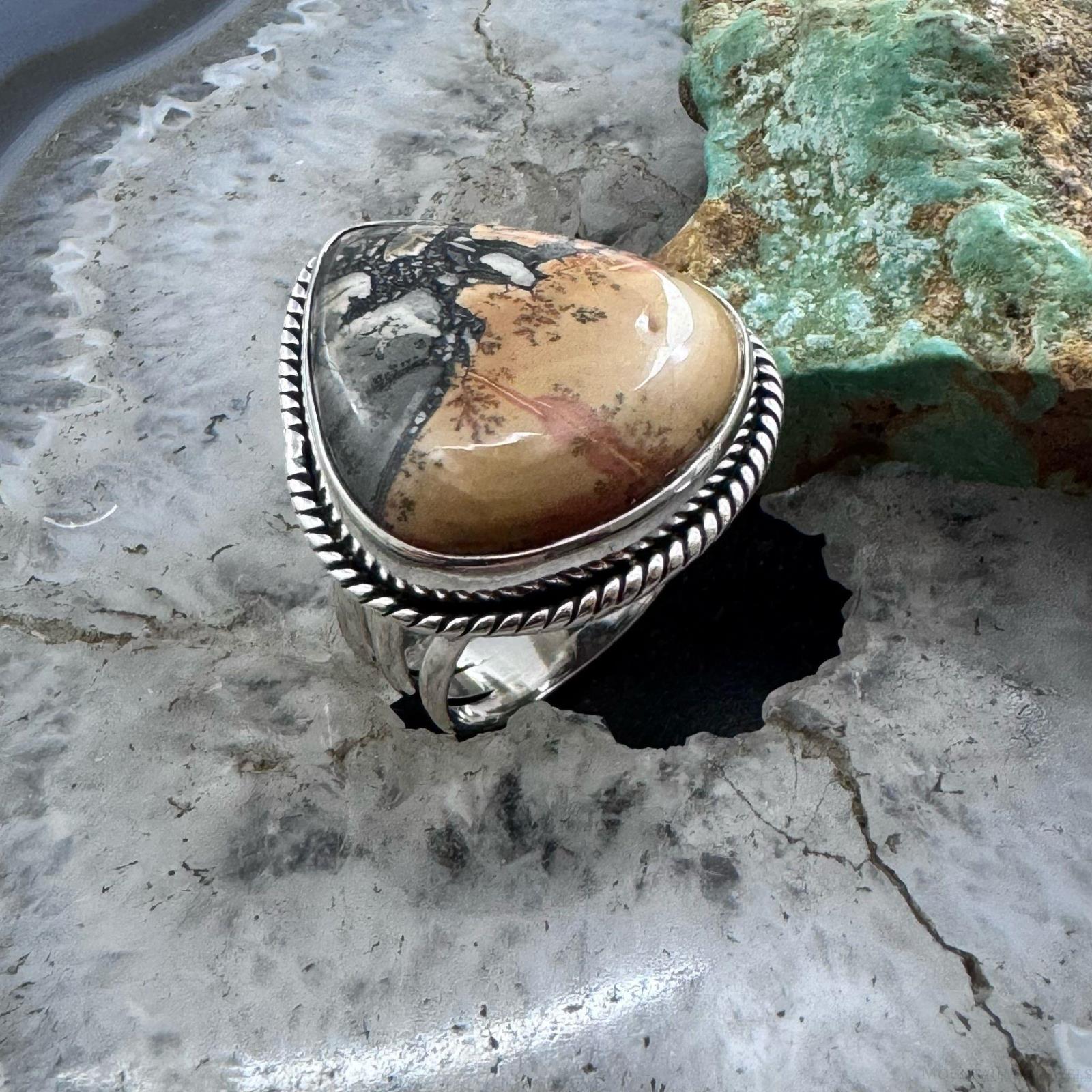 Sterling Southwestern Style Wide Teardrop Maligano Jasper Ring Size 7.75 For Women