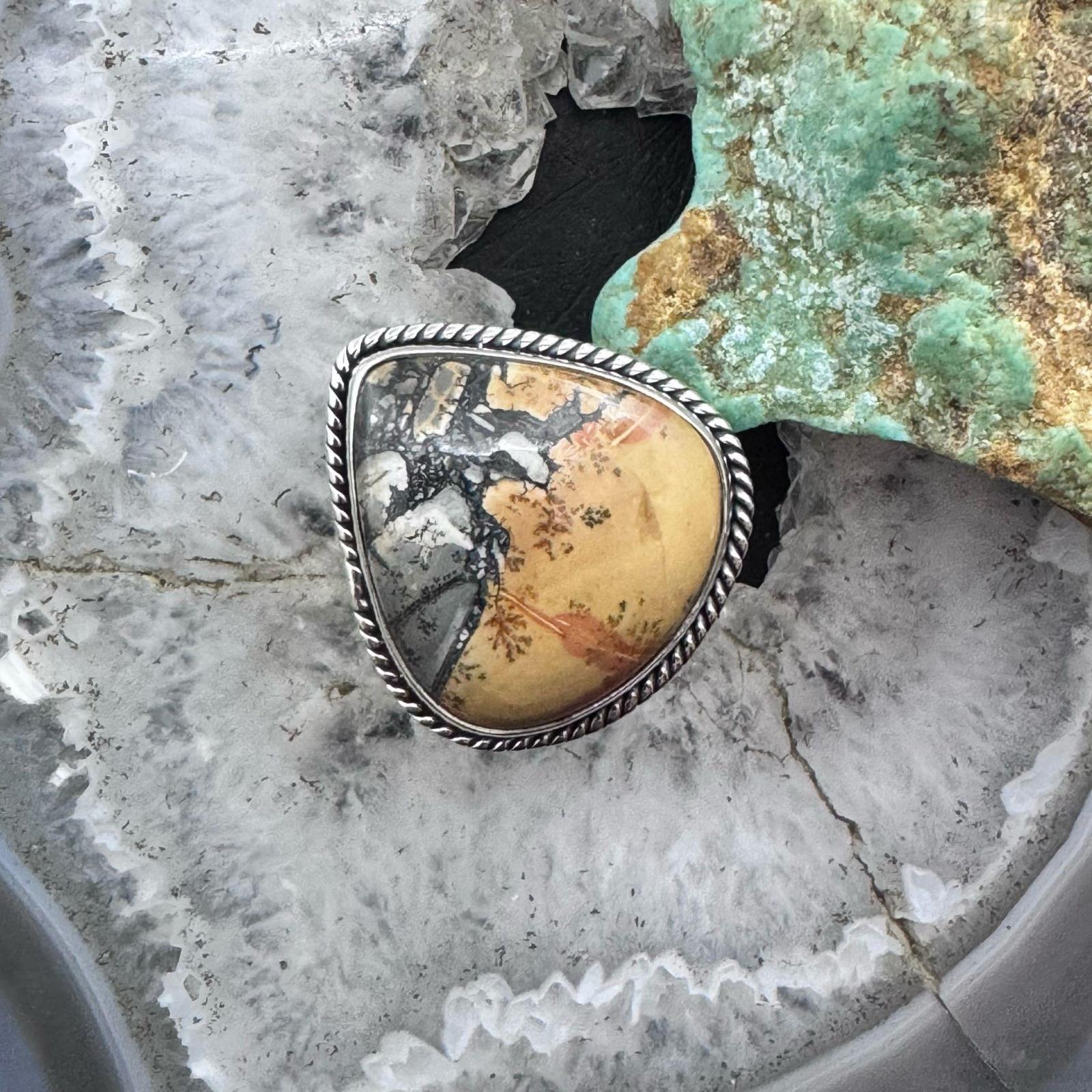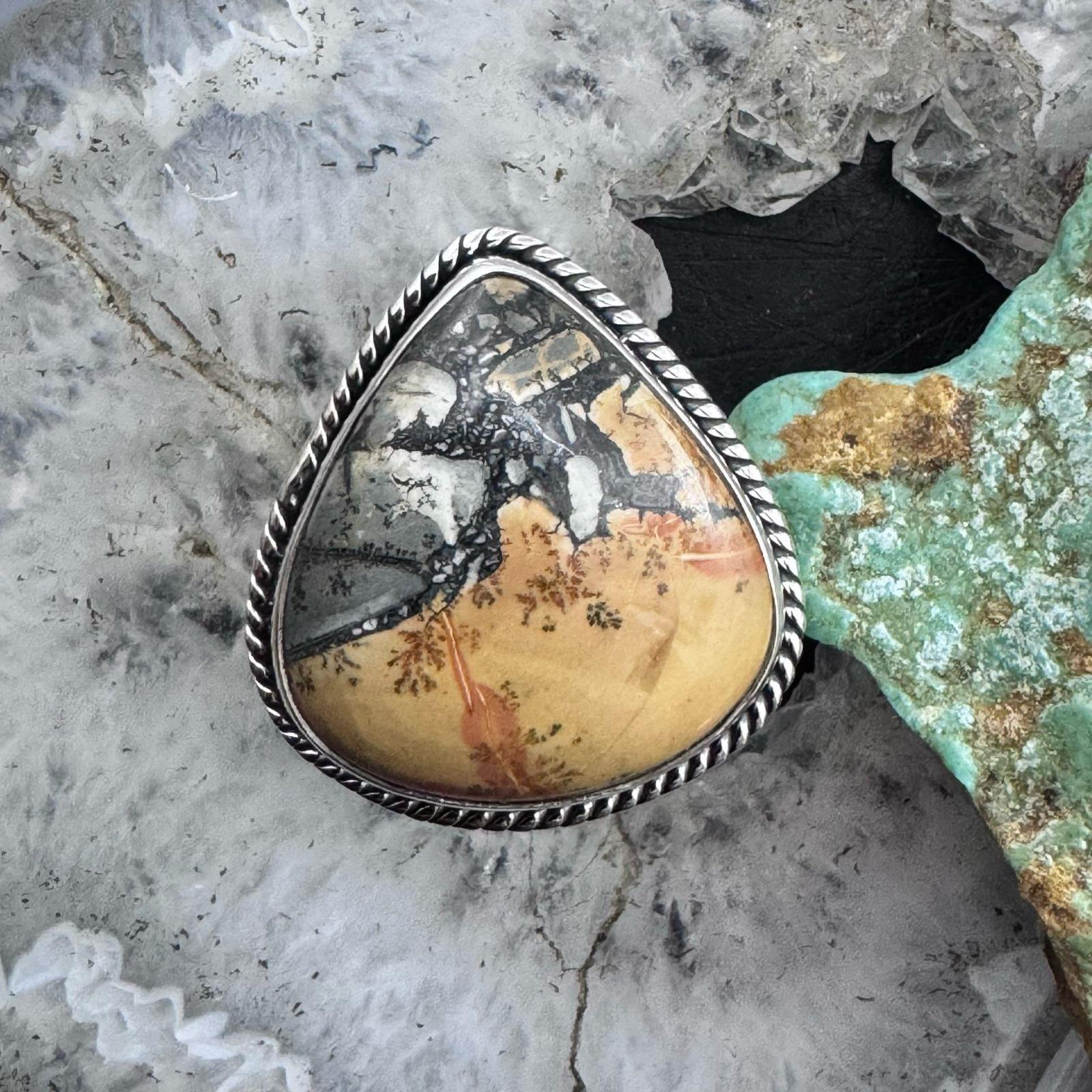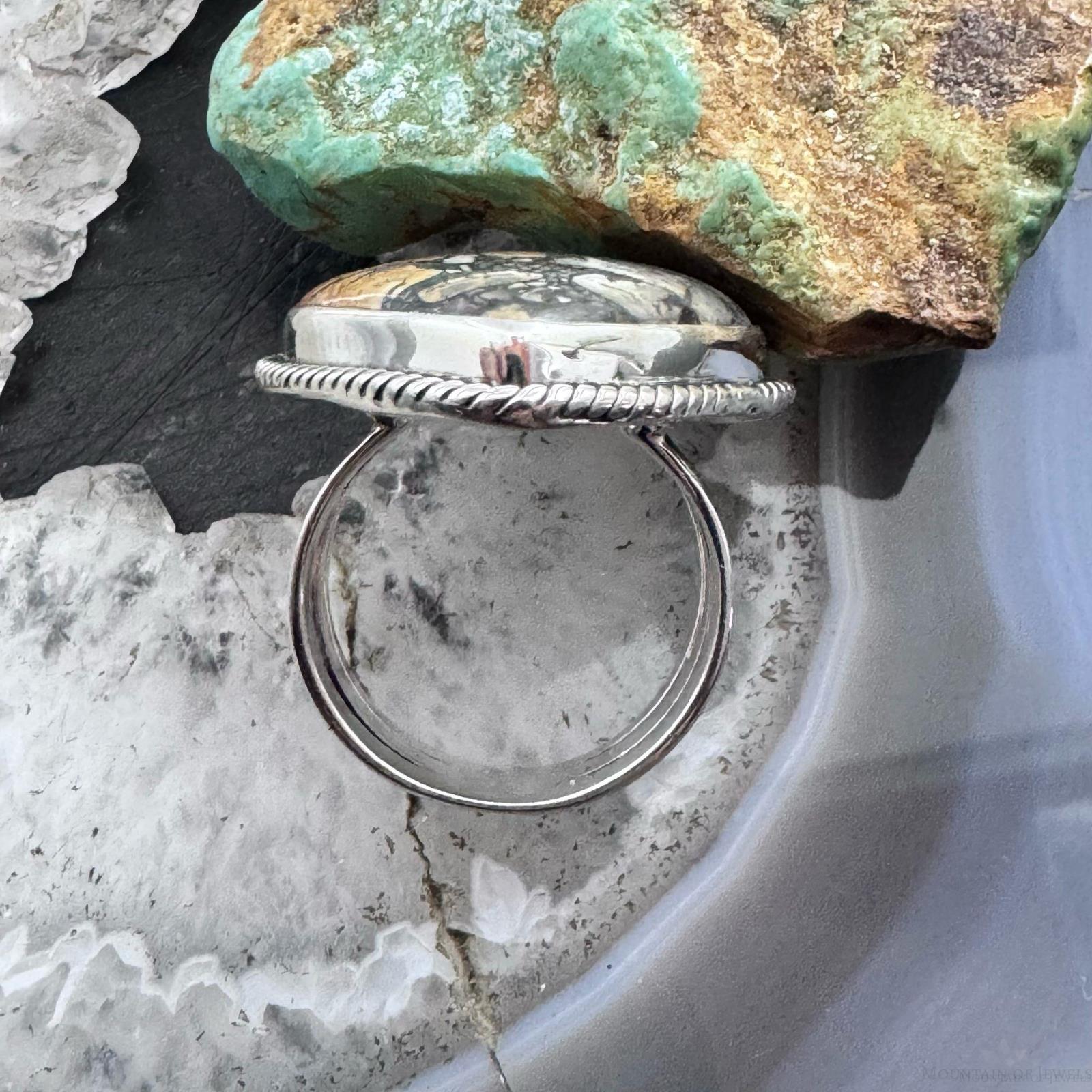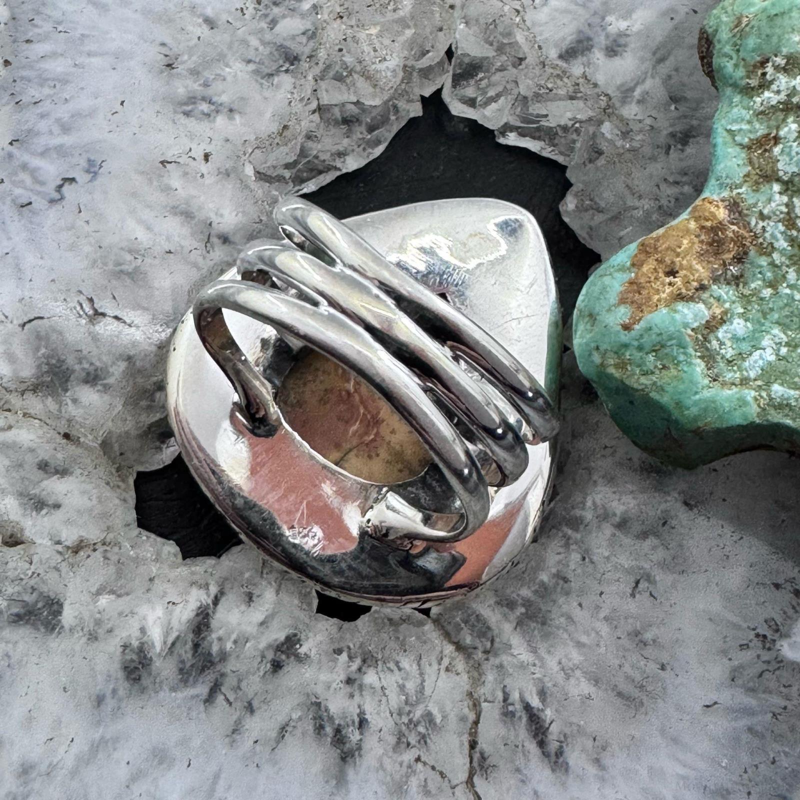 Sterling Southwestern Style Wide Teardrop Maligano Jasper Ring Size 7.75 For Women