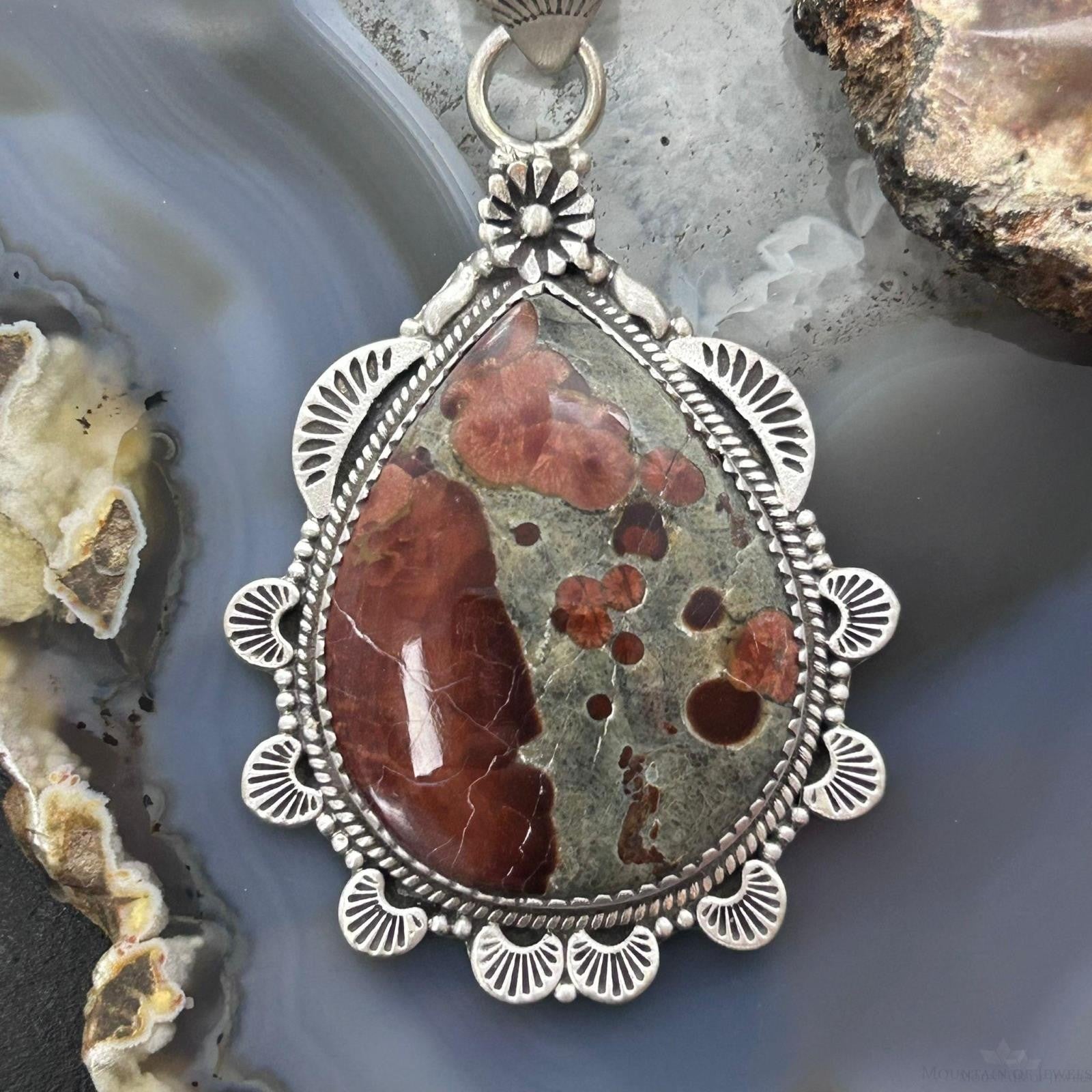 Sterling Silver Southwestern Style Wide Teardrop Peanut Obsidian Pendant For Women