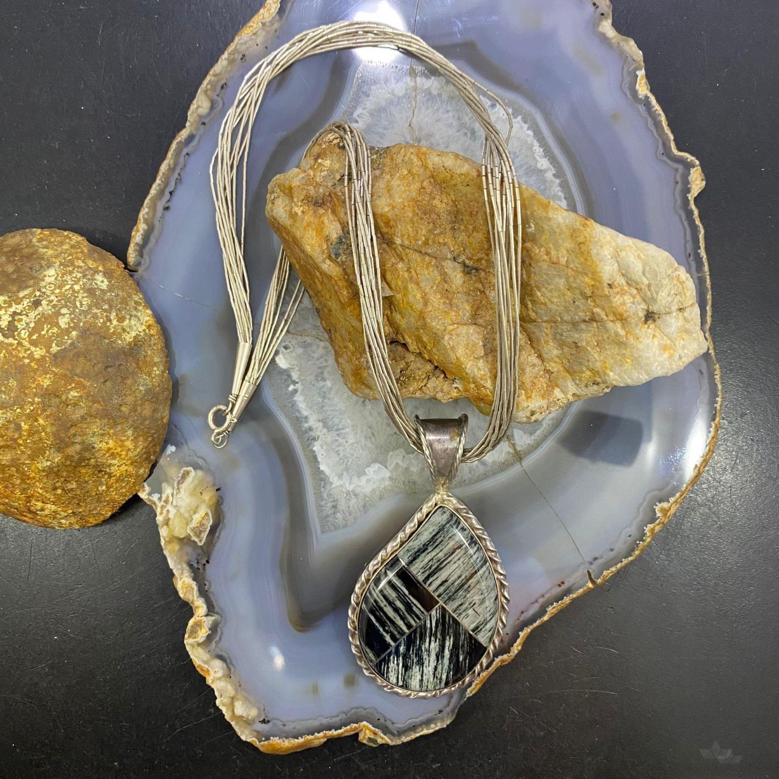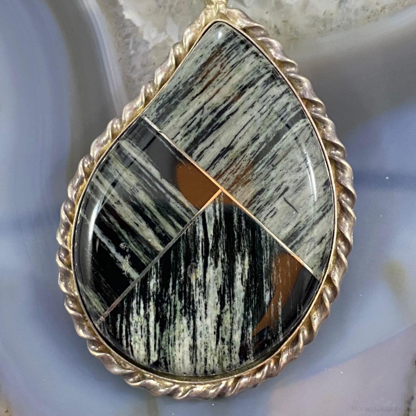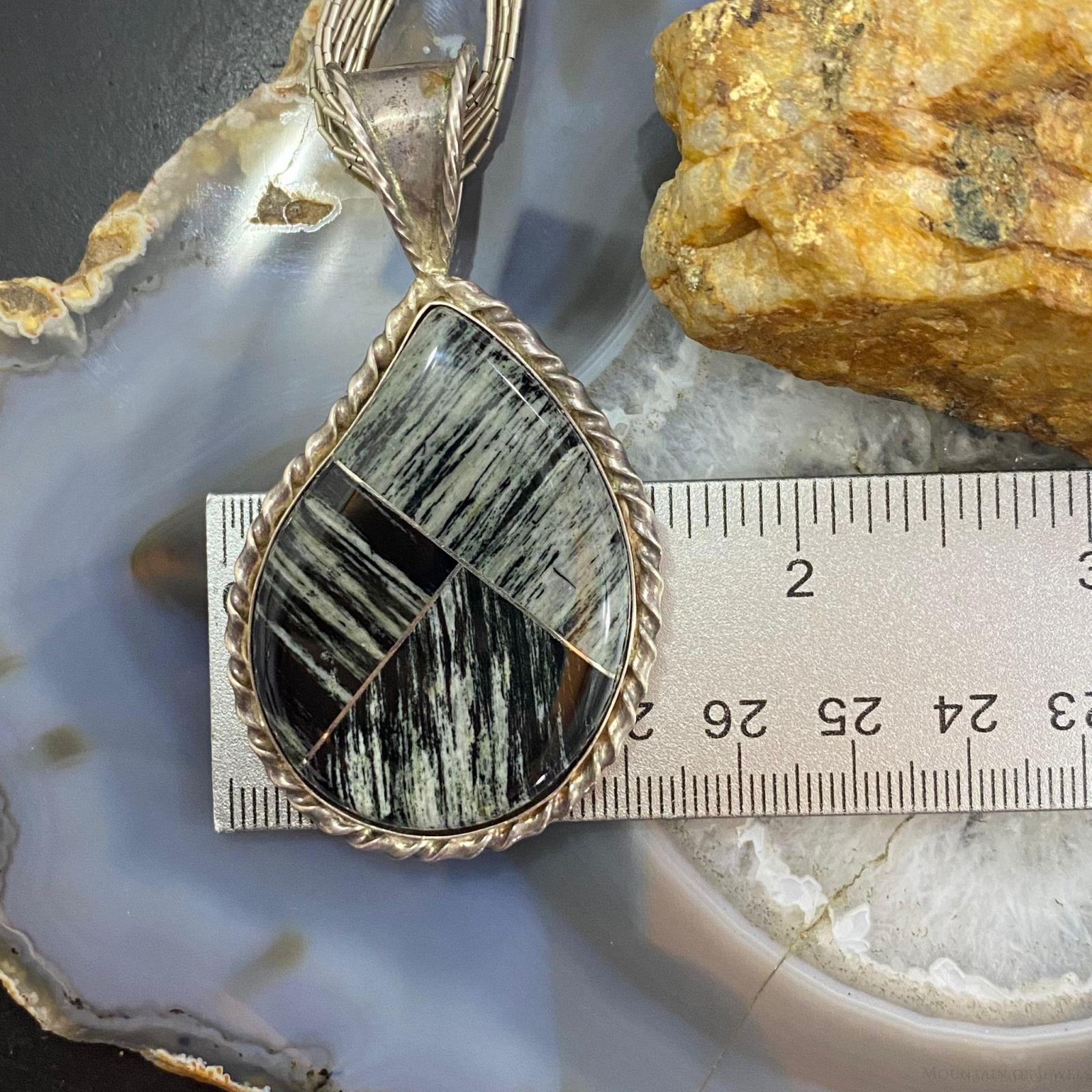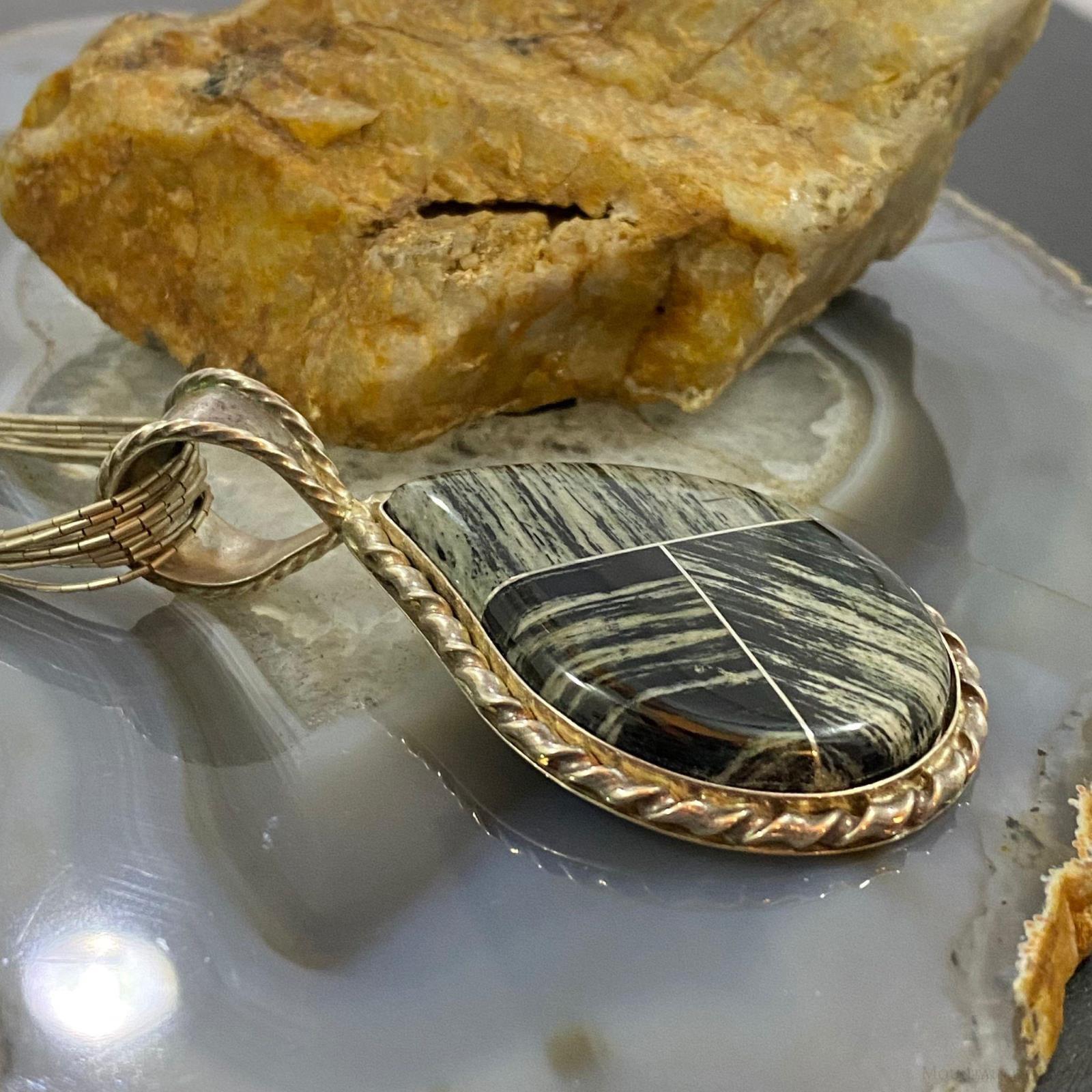 Sterling Silver Teardrop Zebra Stone w/17" Liquid Silver Necklace For Women, Desert Rose Trading