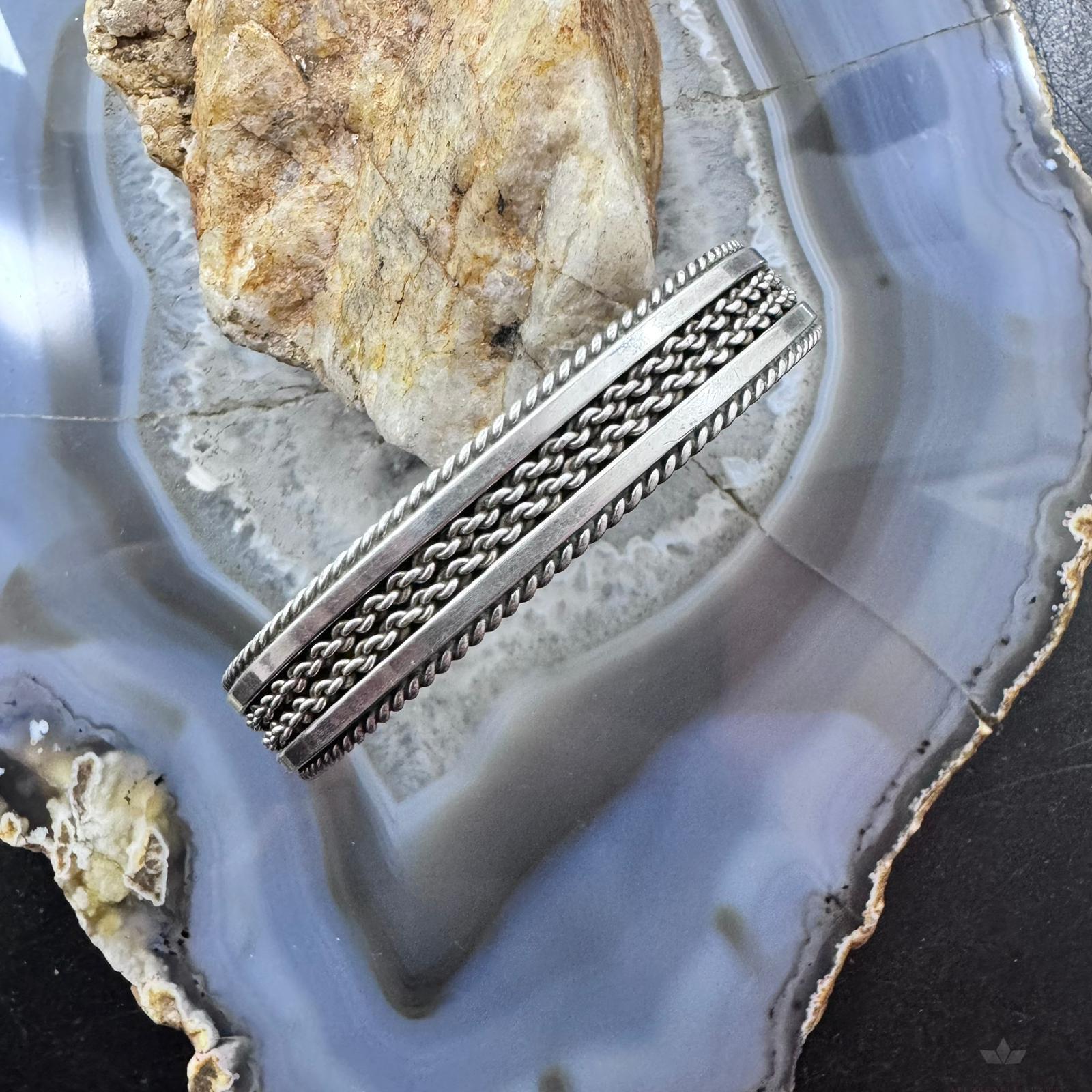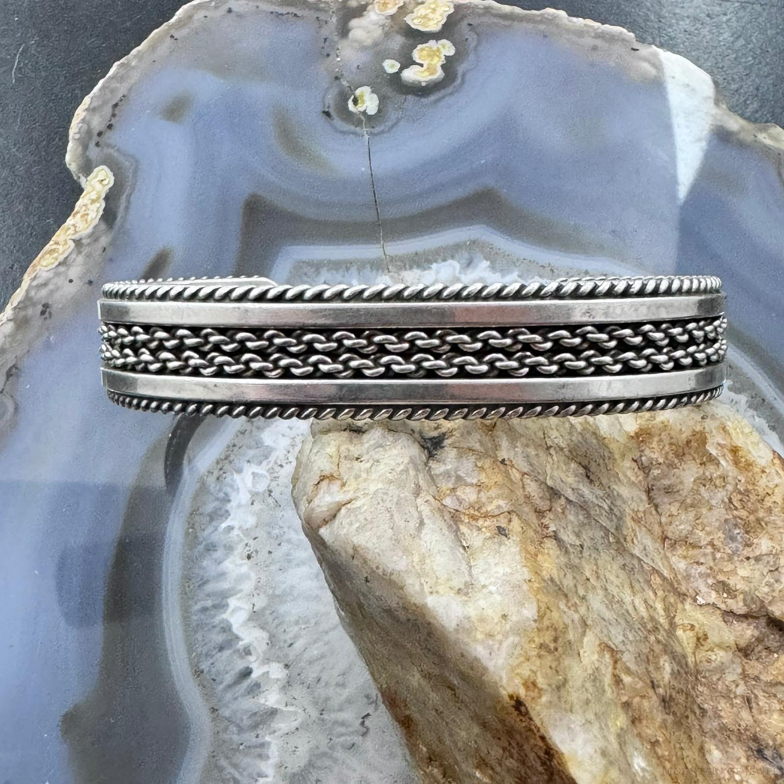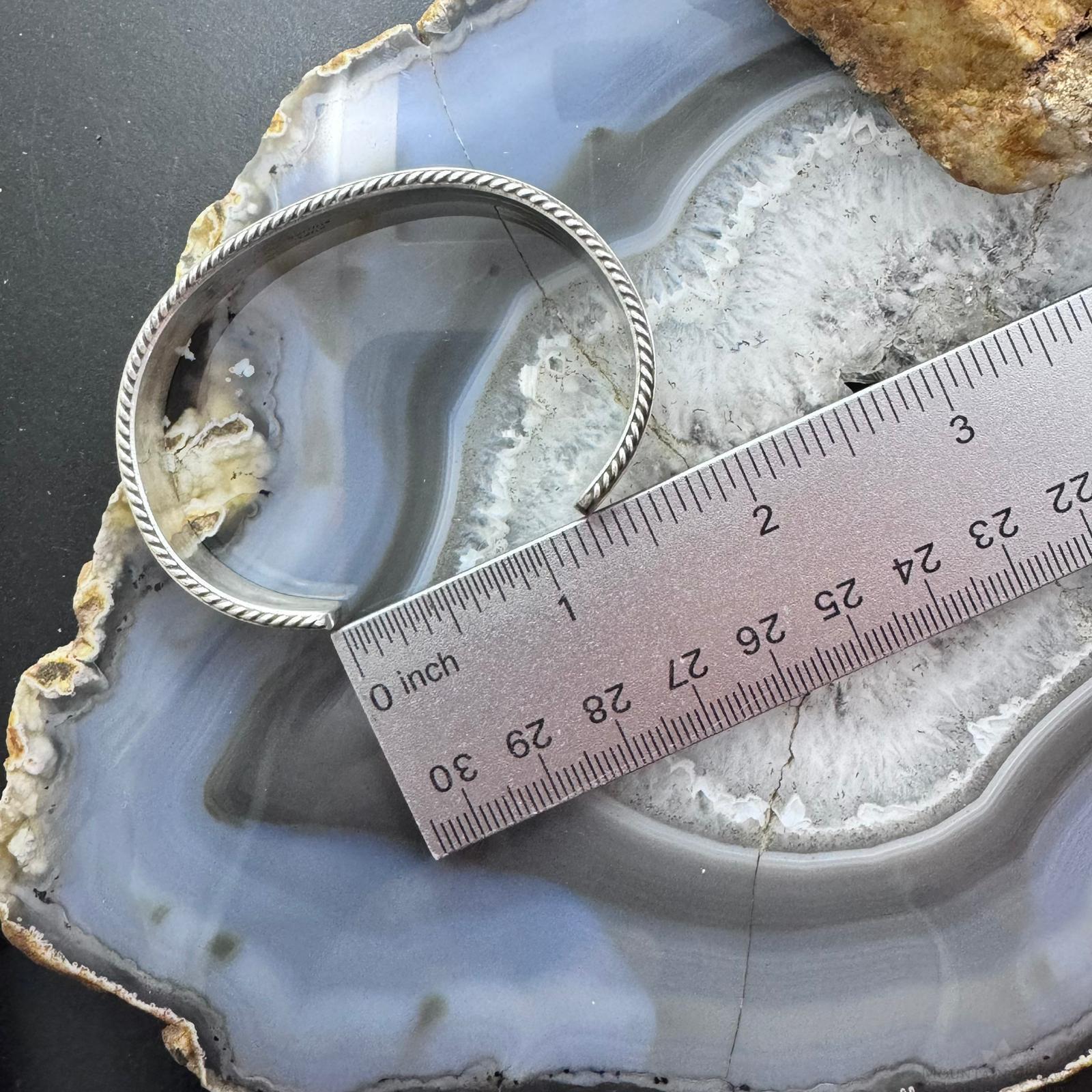 Sterling Silver Rope Design Flexible Bracelet For Women, Signed by Native American Artist Tahe.