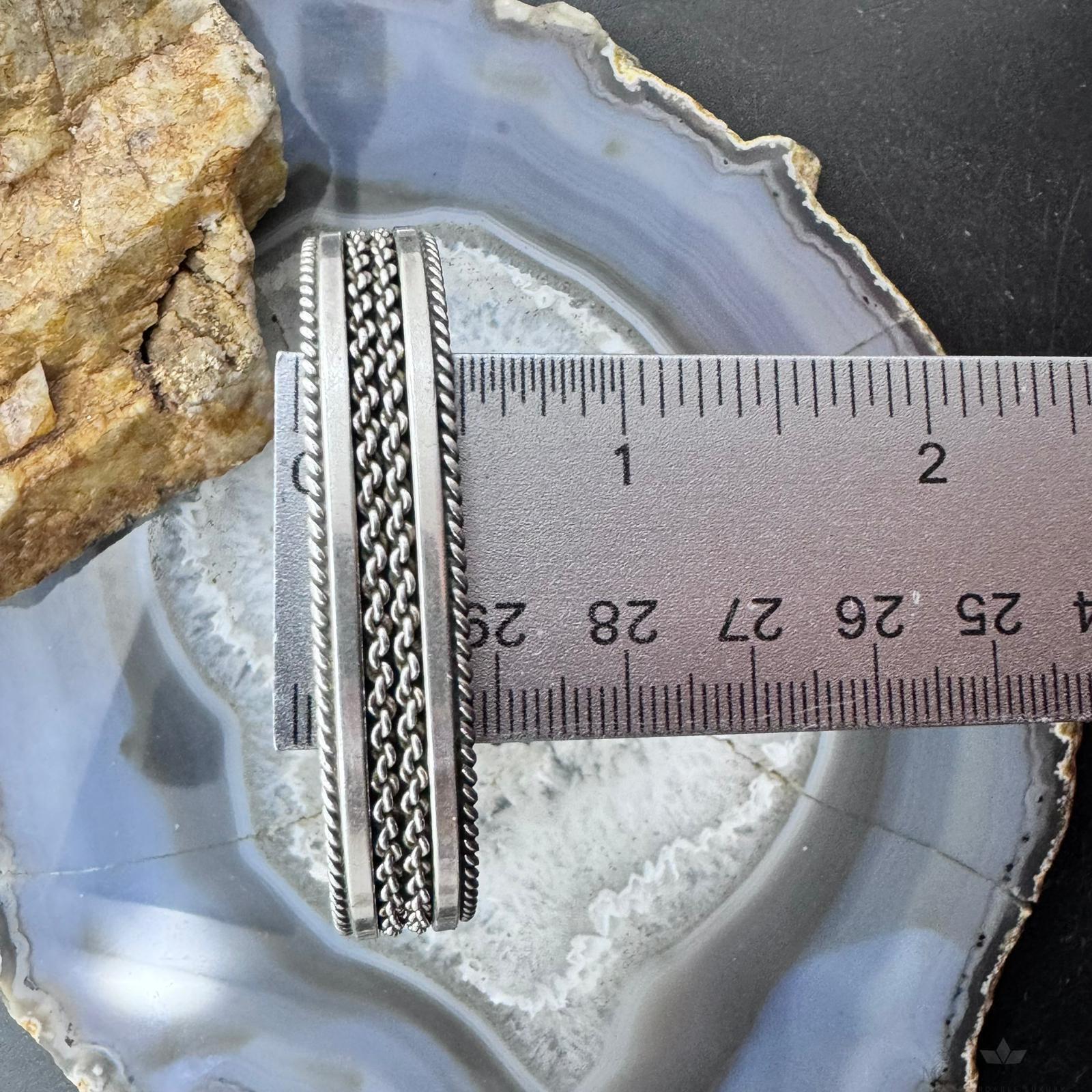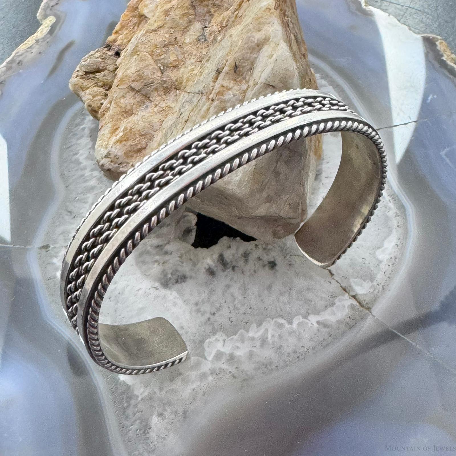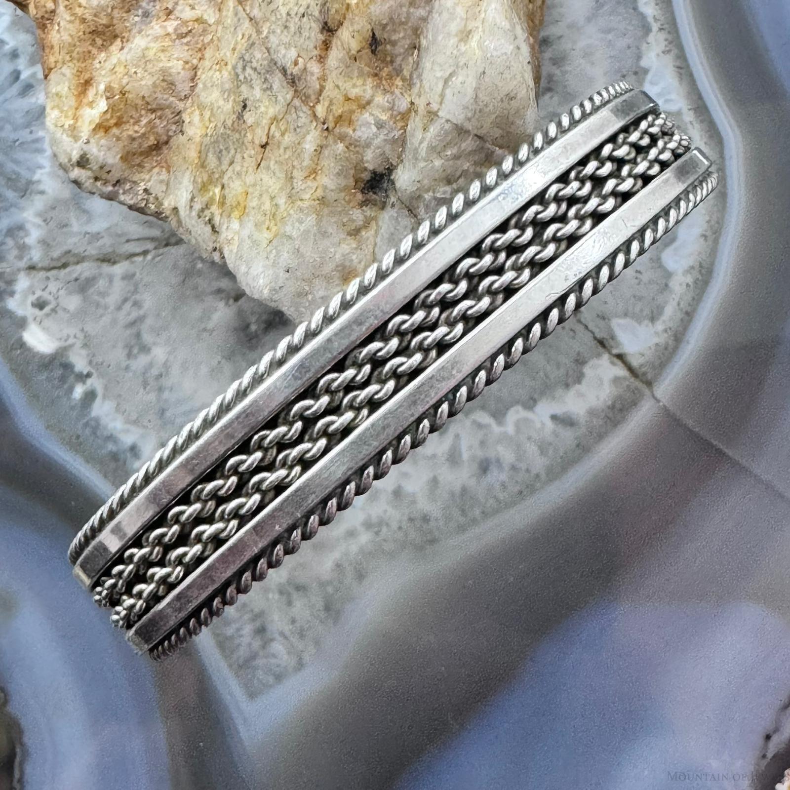 Sterling Silver Rope Design Flexible Bracelet For Women, Signed by Native American Artist Tahe.