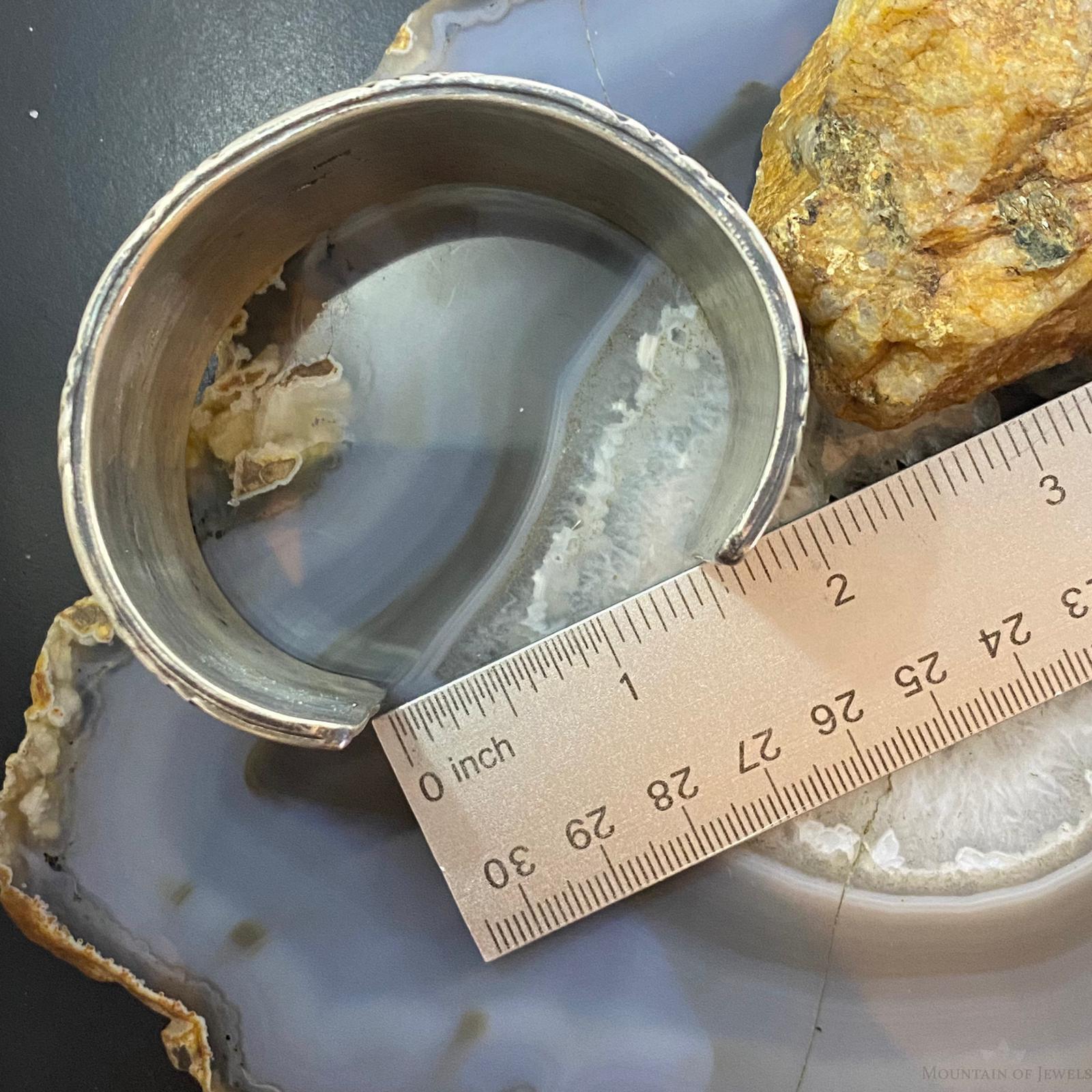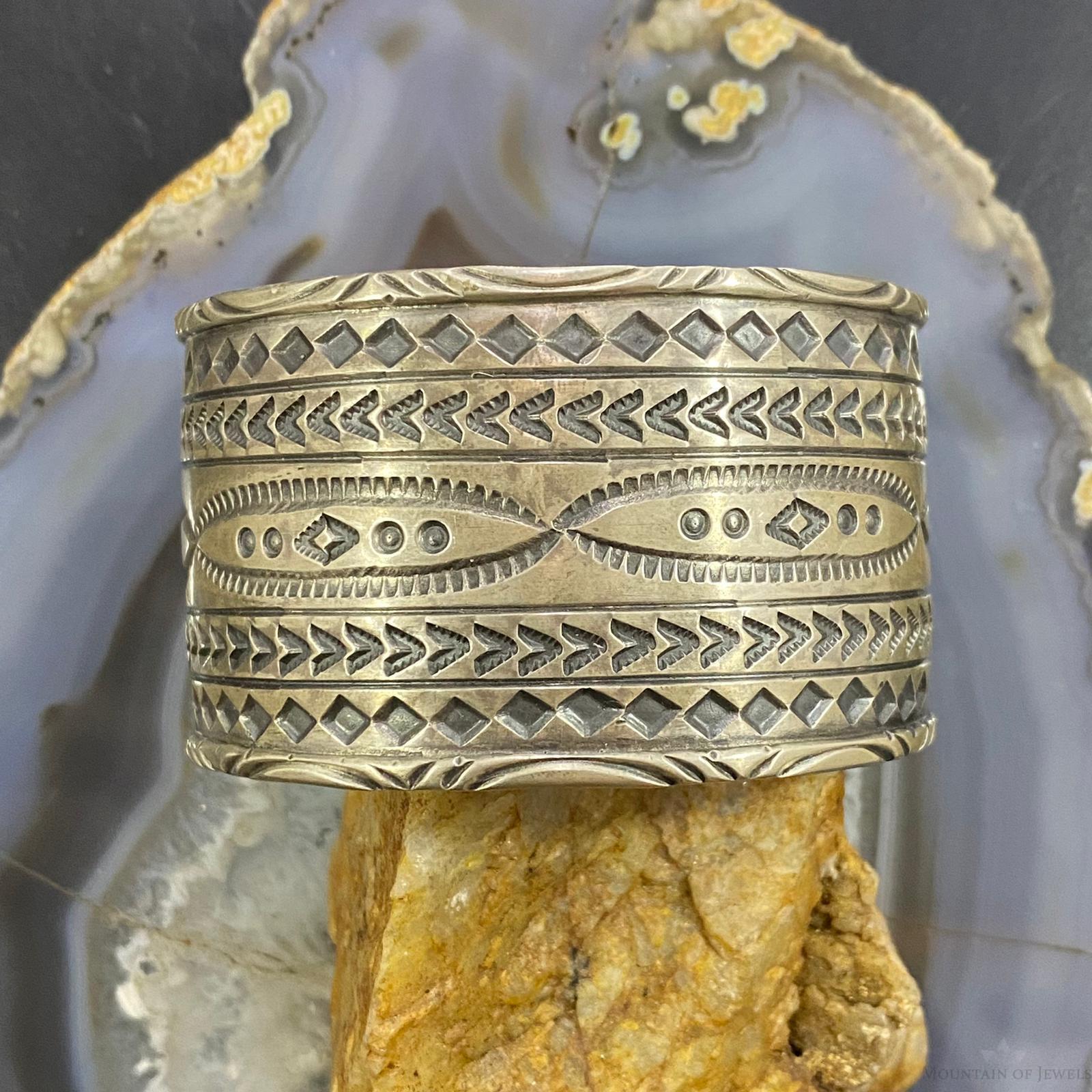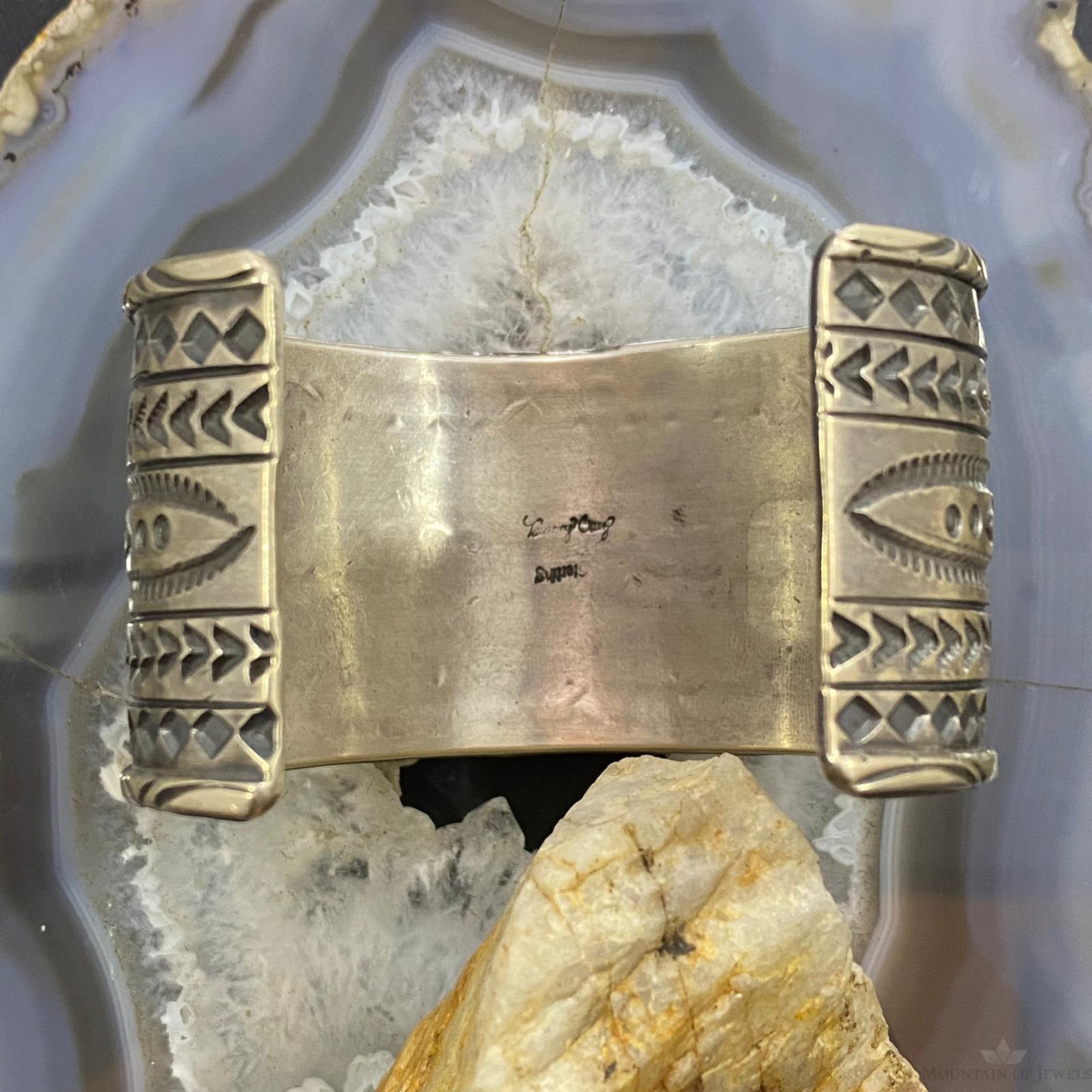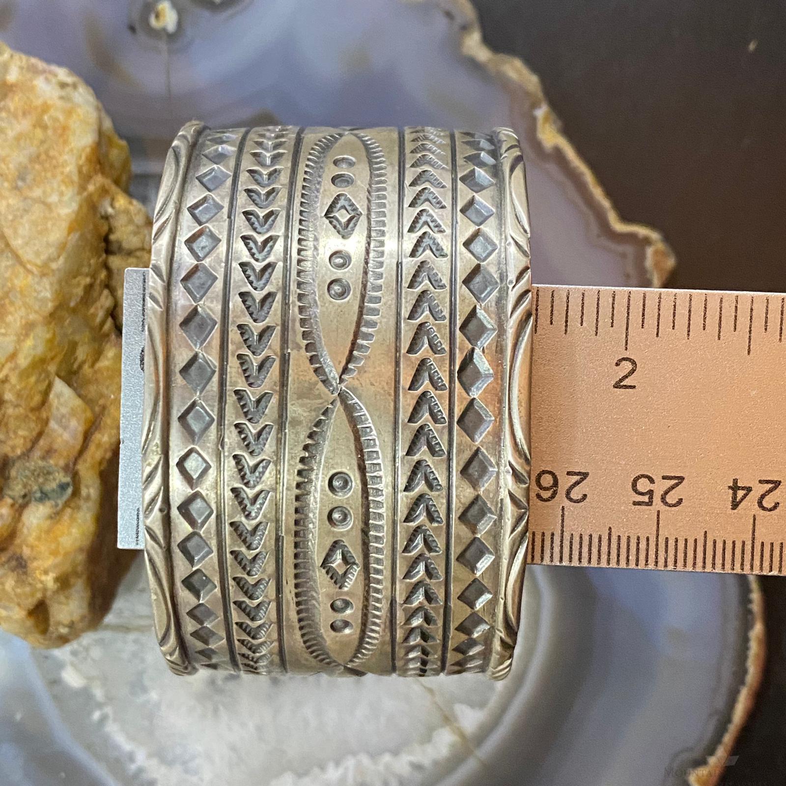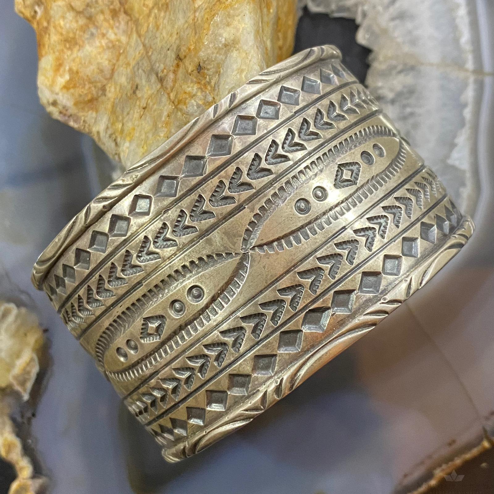 Tawney Cruz-Willie Native American Sterling Silver Wide Stamped Bracelet For Women #1