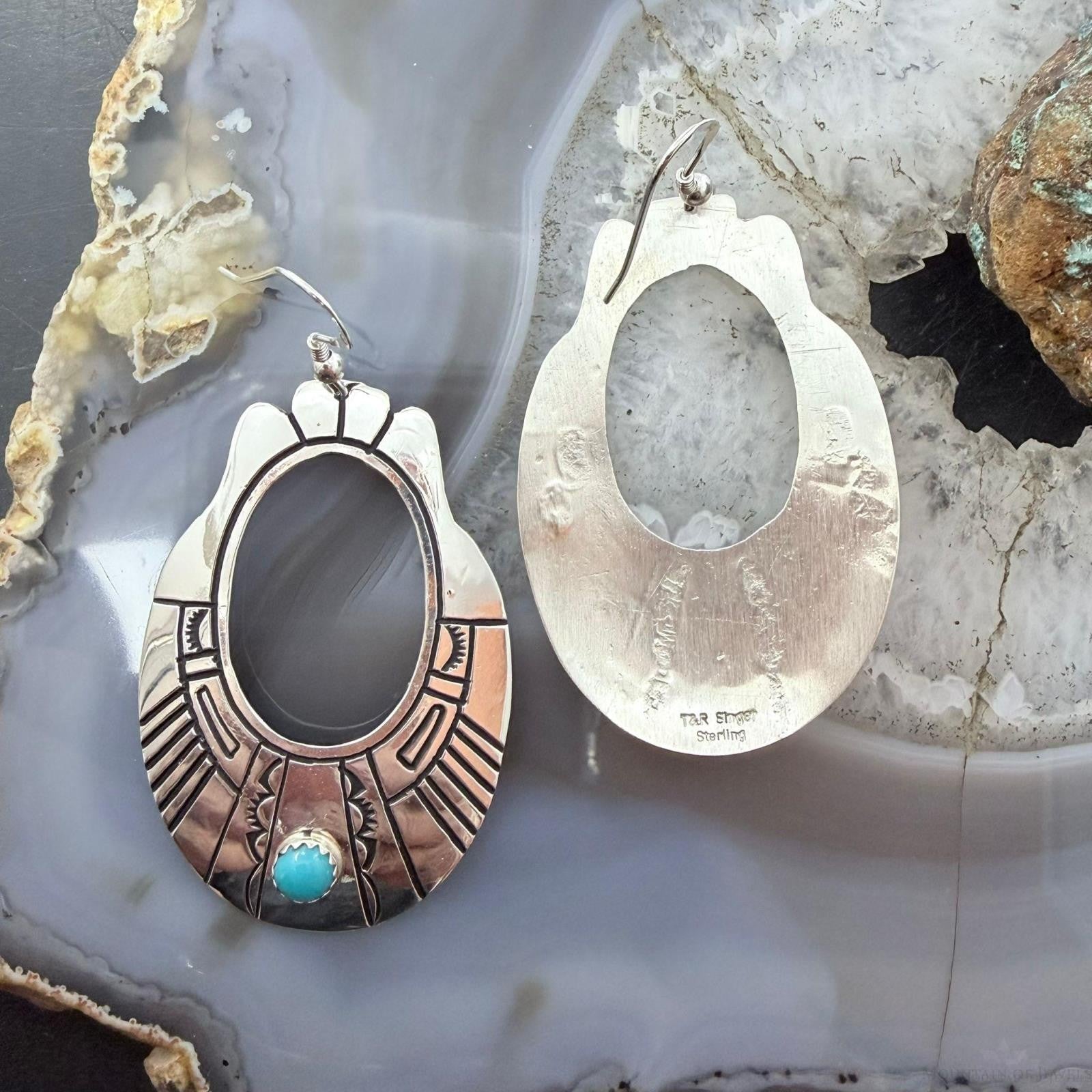 Tommy & Rosita Singer Sterling Silver Dot Turquoise Engraved Dangle Earrings For Women