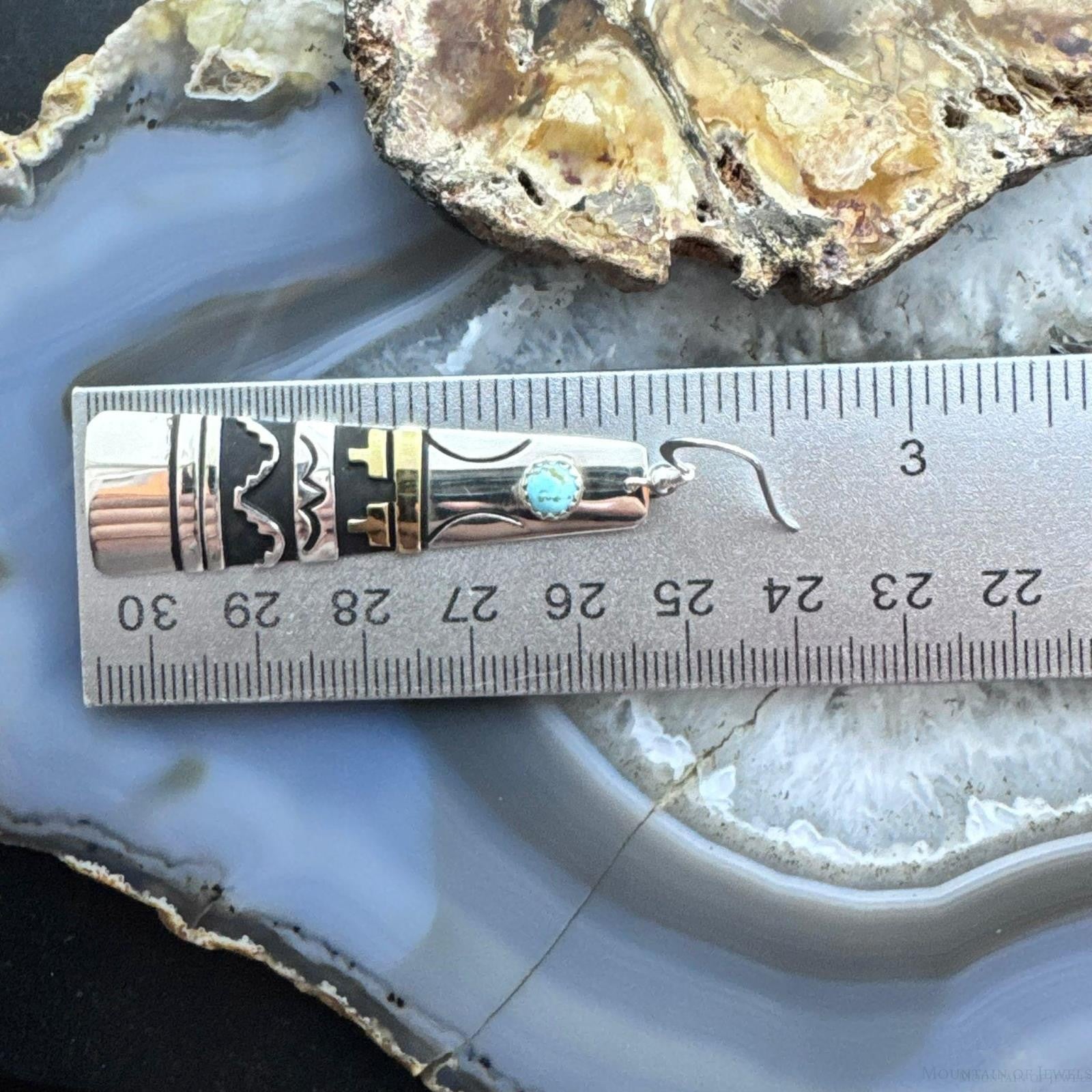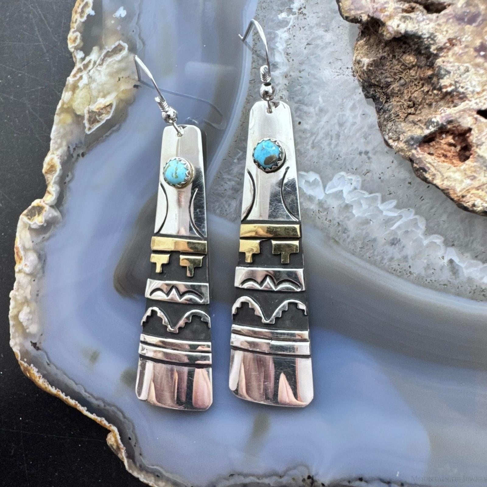 Tommy & Rosita Singer Sterling Silver & Gold Filled Turquoise Elongated Dangle Earrings For Women