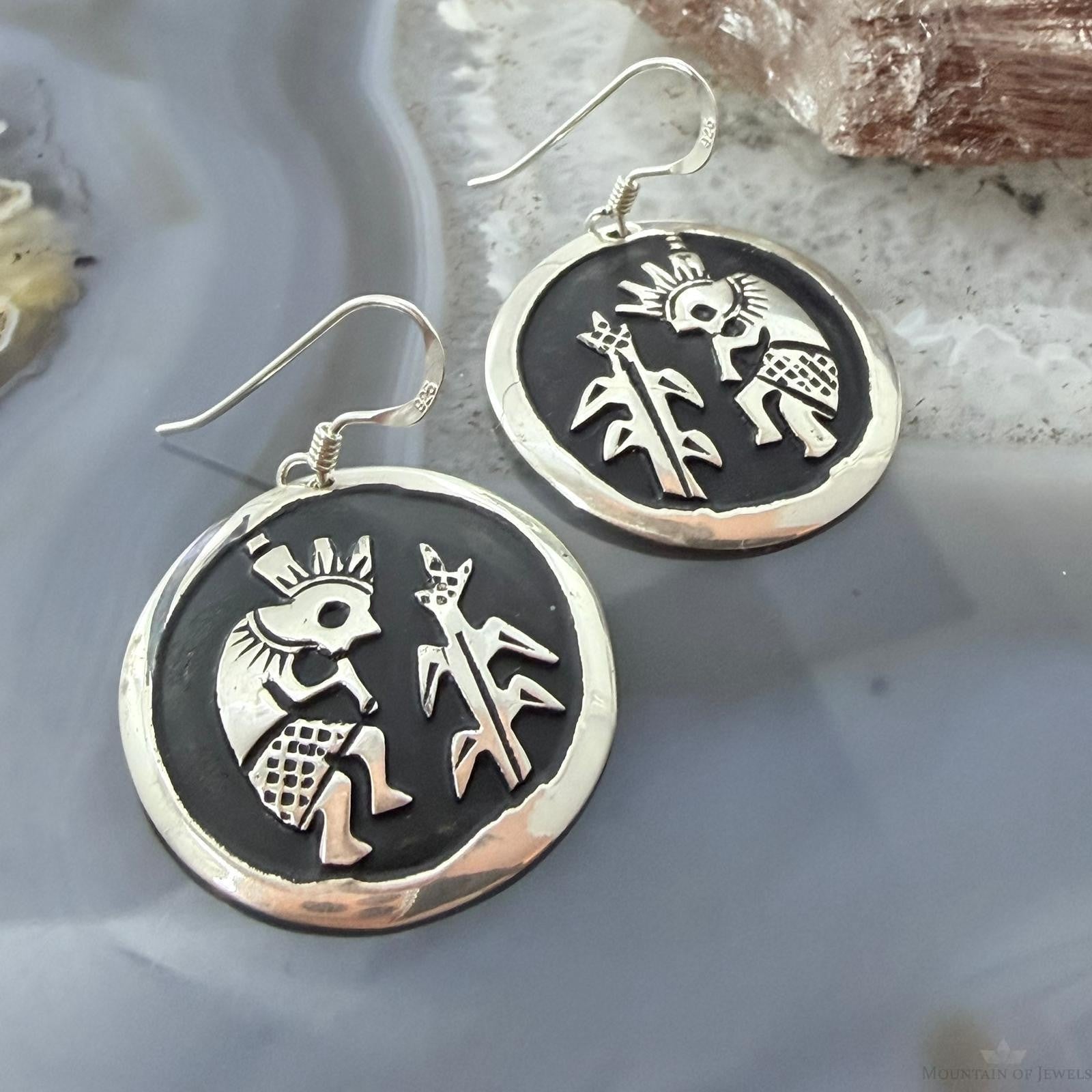 Tommy & Rosita Singer Sterling Silver Overlay Kokopelli Dangle Earrings For Women