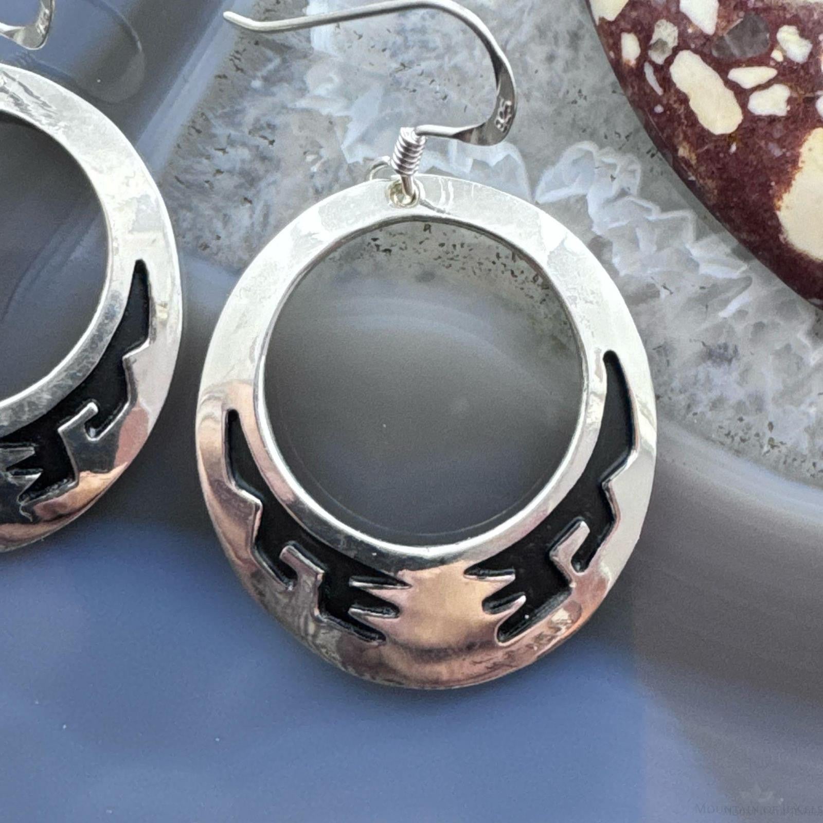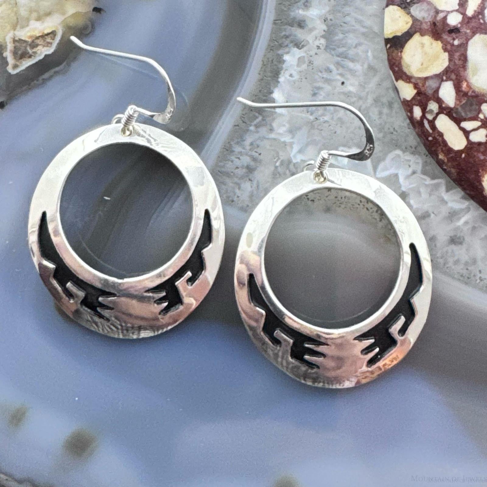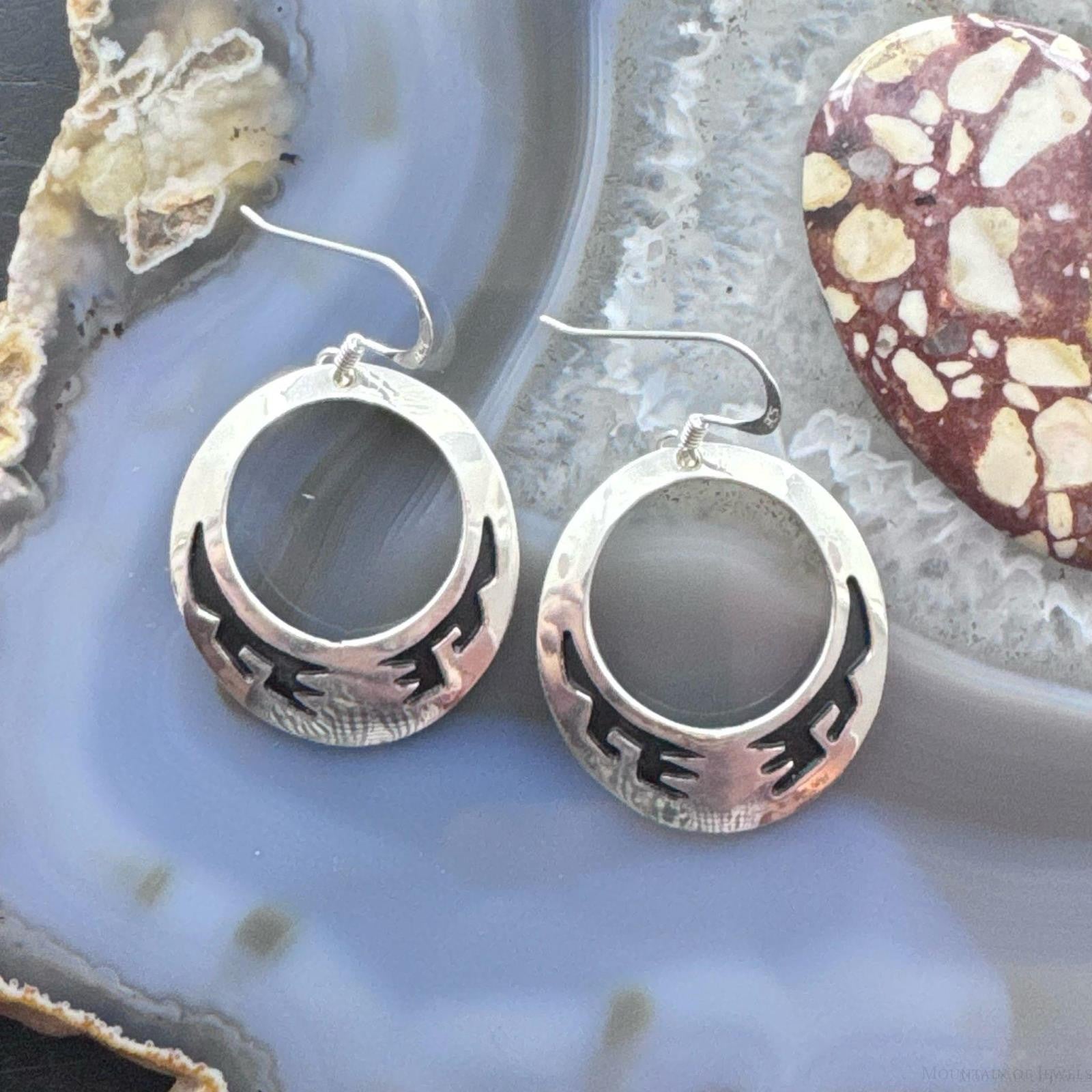 Tommy & Rosita Singer Sterling Silver Overlay Southwestern Motif Hoop Dangle Earrings For Women