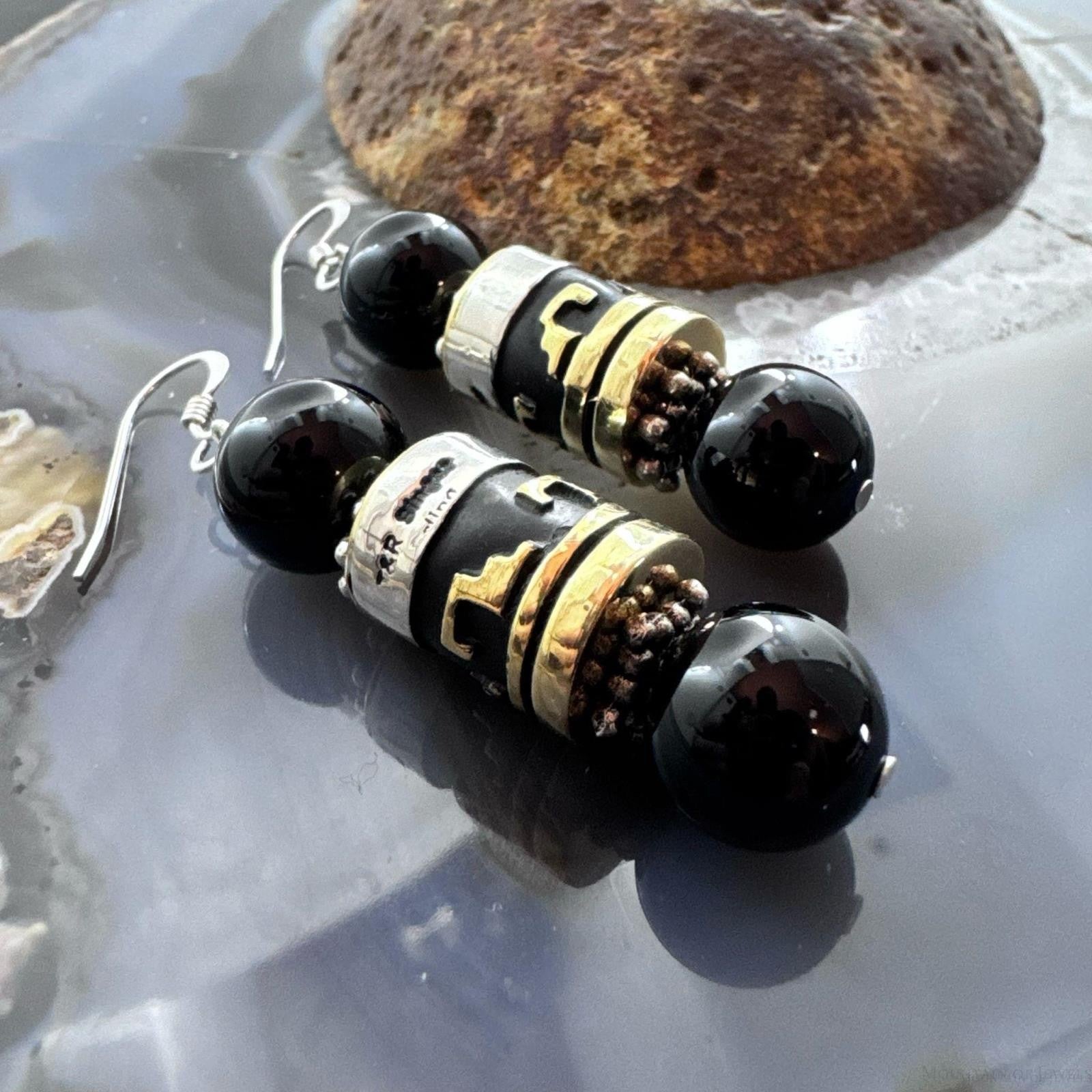 Tommy & Rosita Singer Sterling Silver Onyx Beads Dangle Earrings For Women