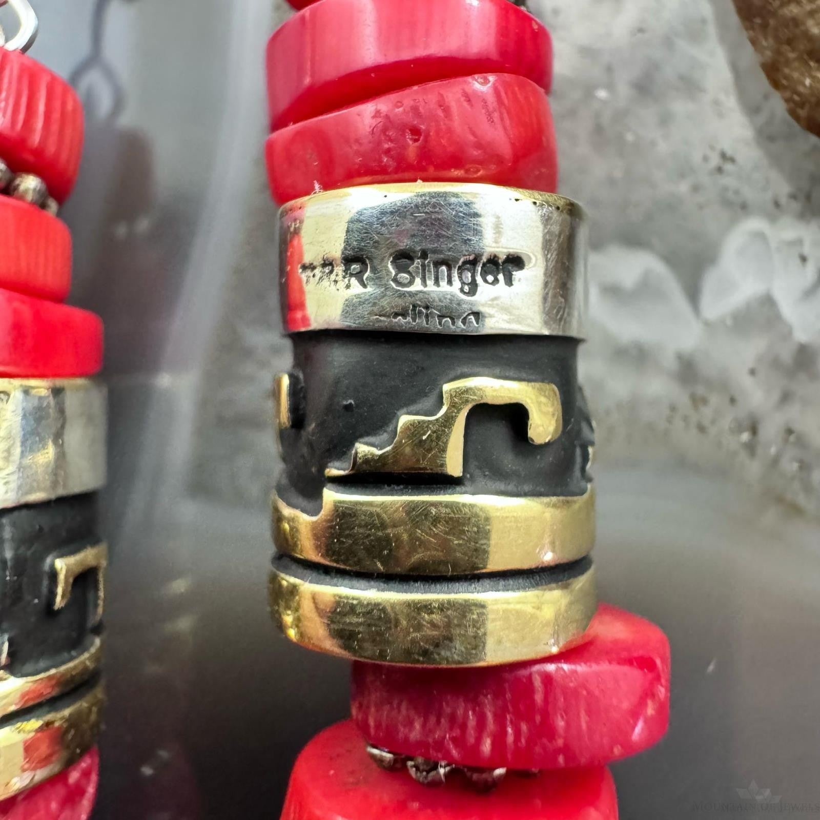 Tommy & Rosita Singer Sterling Silver Red Jasper Bead Dangle Earrings For Women