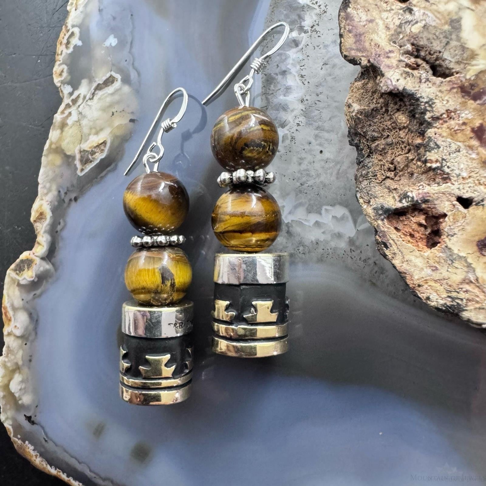 Tommy & Rosita Singer Sterling Silver Tigers Eye Bead Dangle Earrings For Women