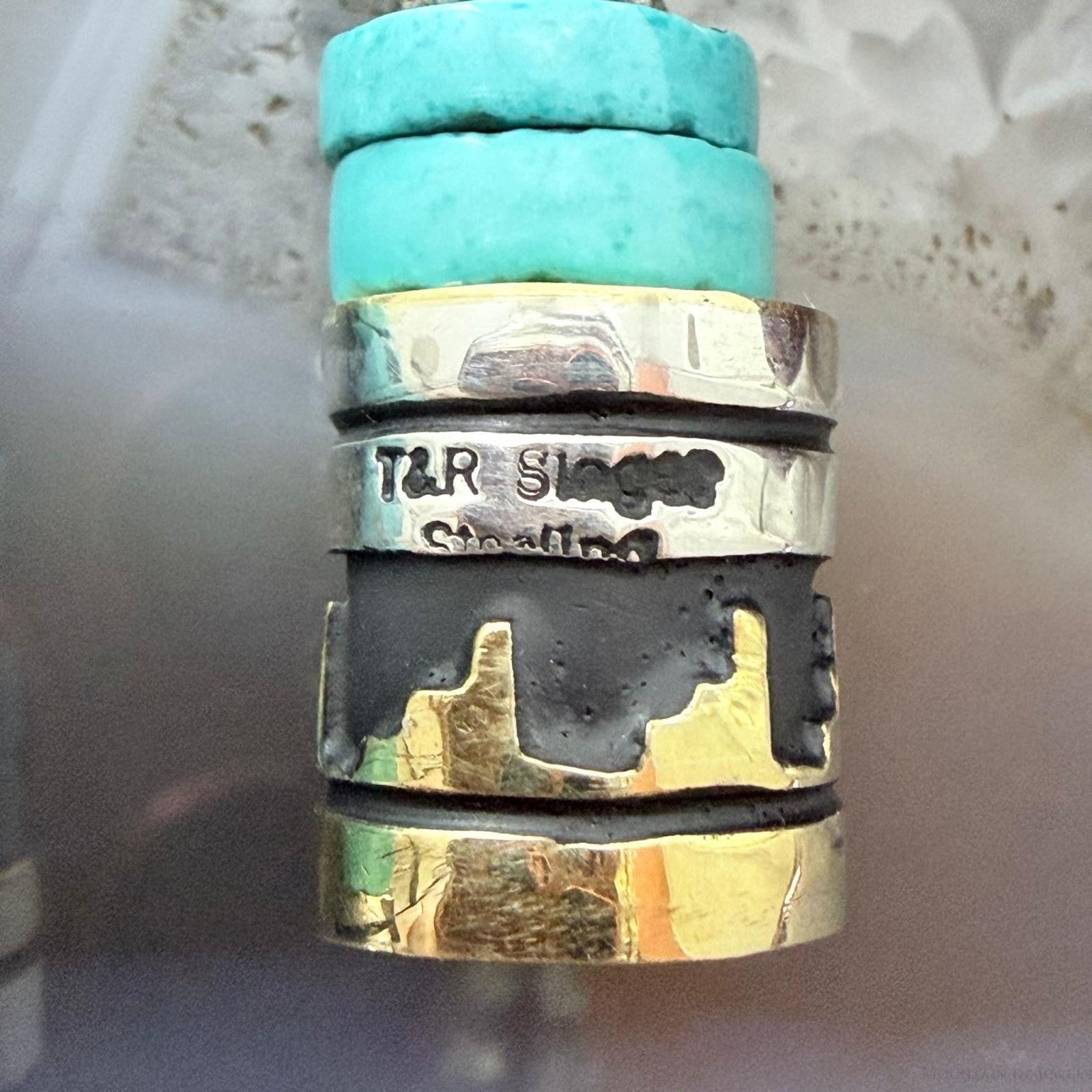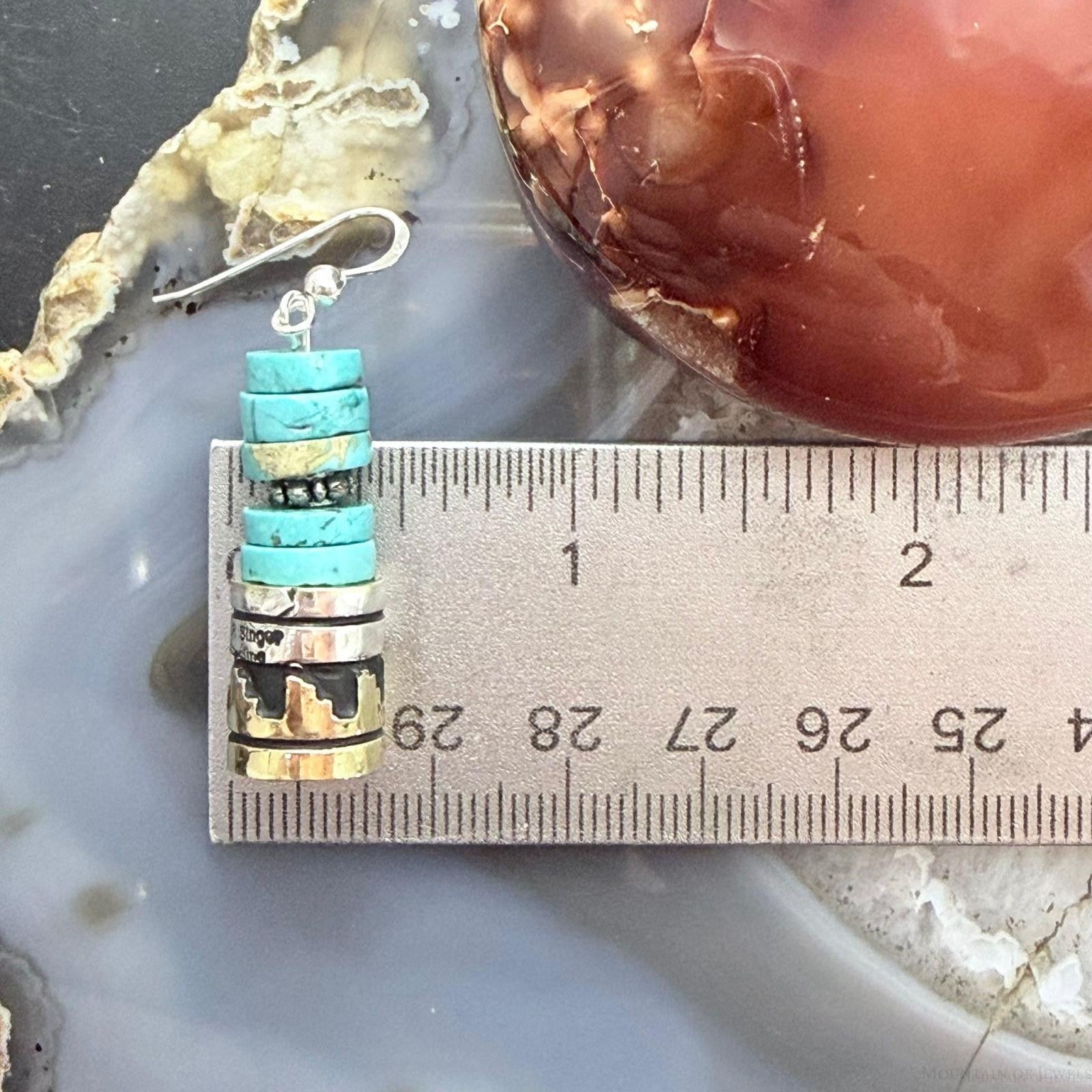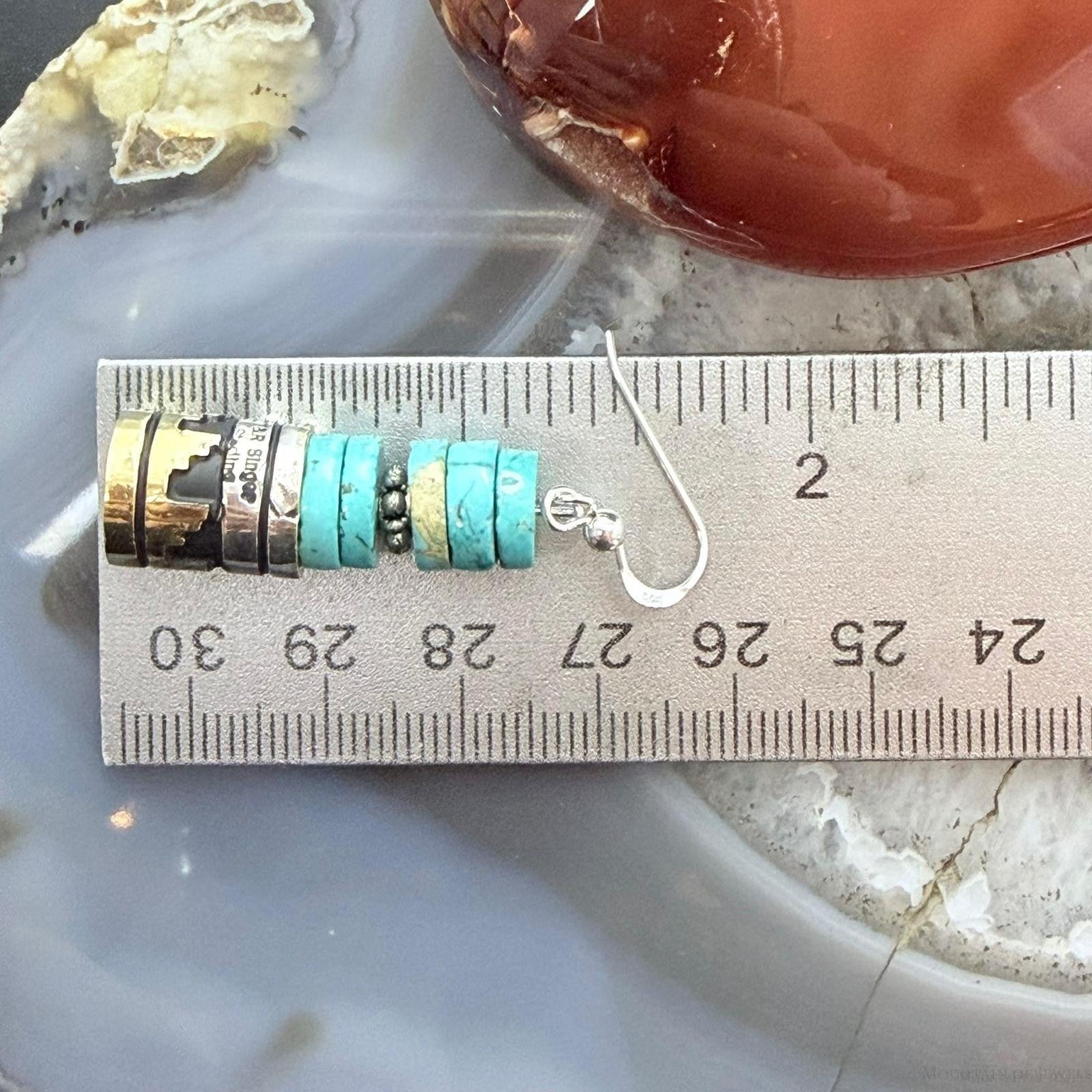 Sterling Silver and Gold Filled Barrel Bead, Turquoise Beads Dangle Earrings For Women, Signed by Native American Artists Tommy and Rosita Singer.