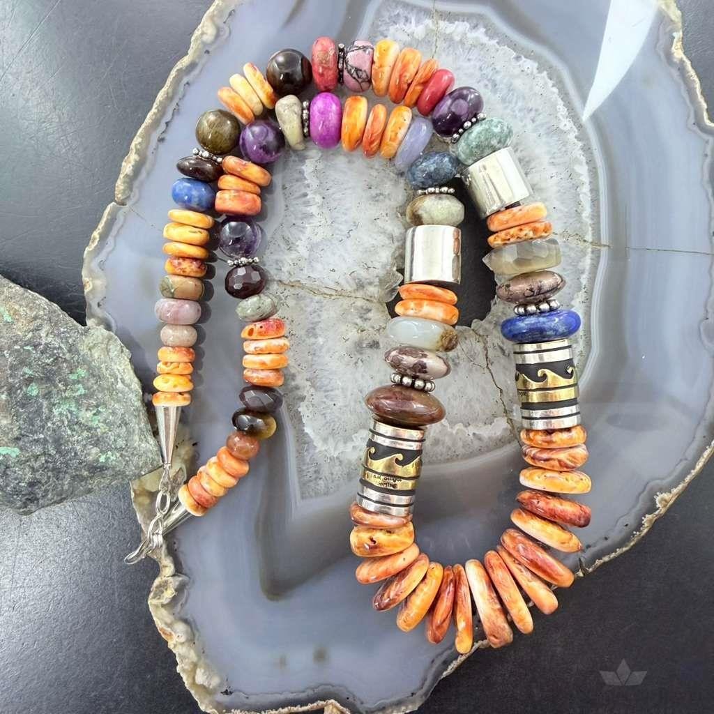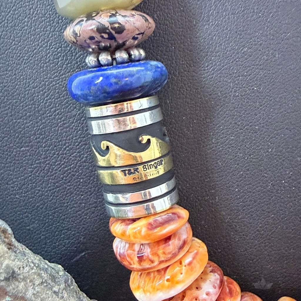 Tommy & Rosita Singer Sterling Silver Spiny Oyster & Multistone Beads 20" Necklace For Women