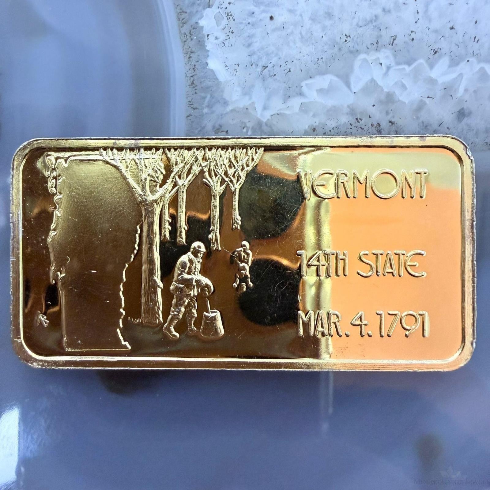 US .999 One Ounce Silver Vermont Bar w/24K Gold Plated Hamilton Mint #112825-6