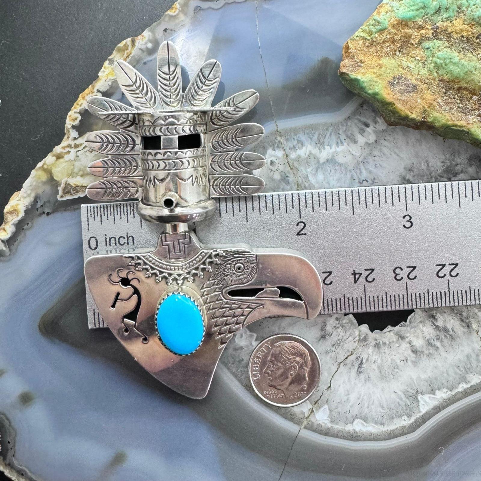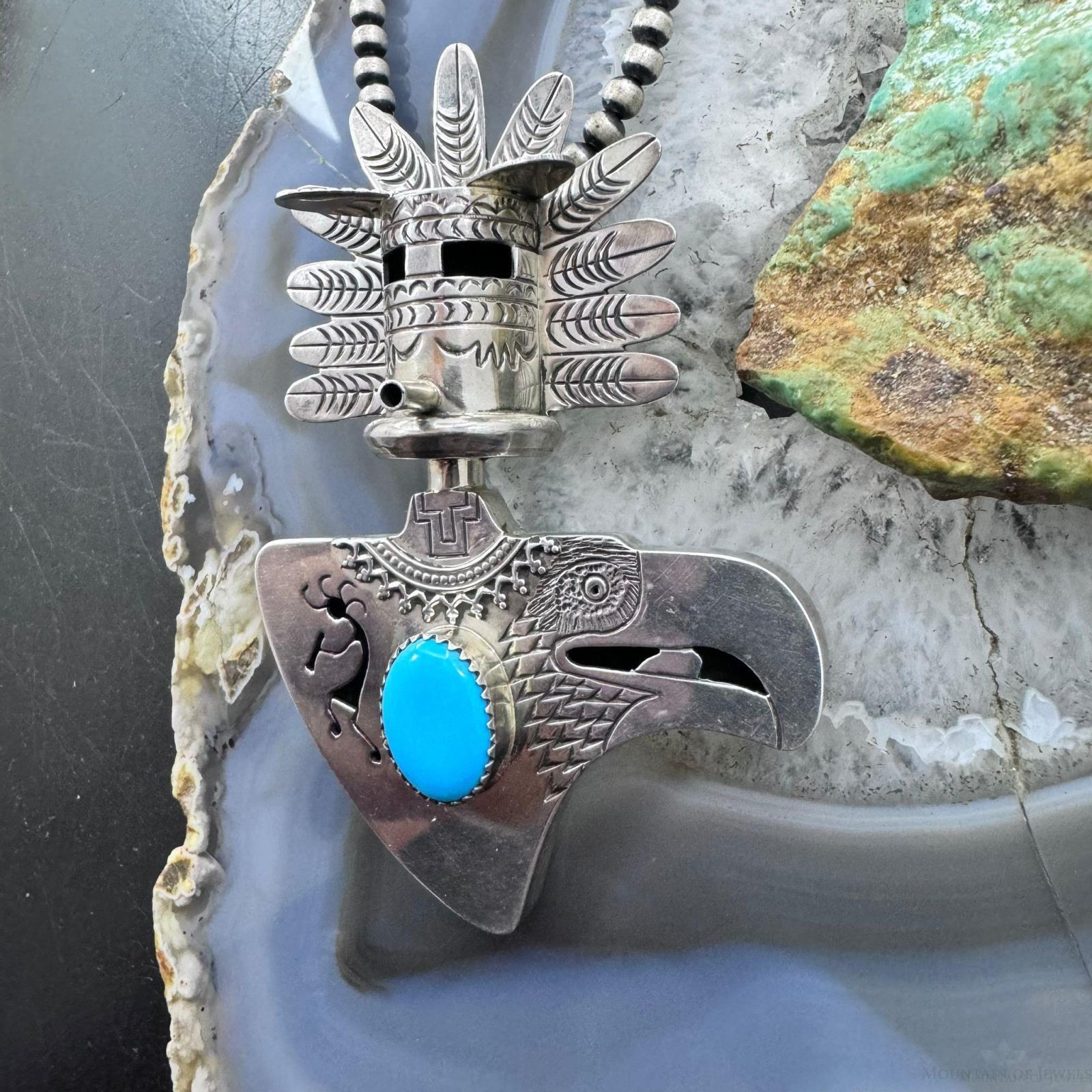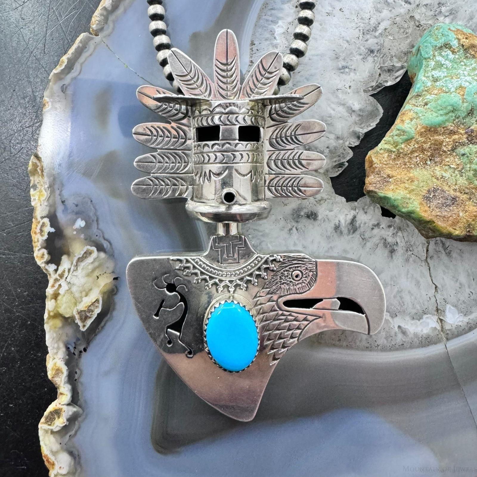 Vintage Elvis Nelson Native American Sterling Silver Kachina Eagle w/Turquoise Unisex Pendant