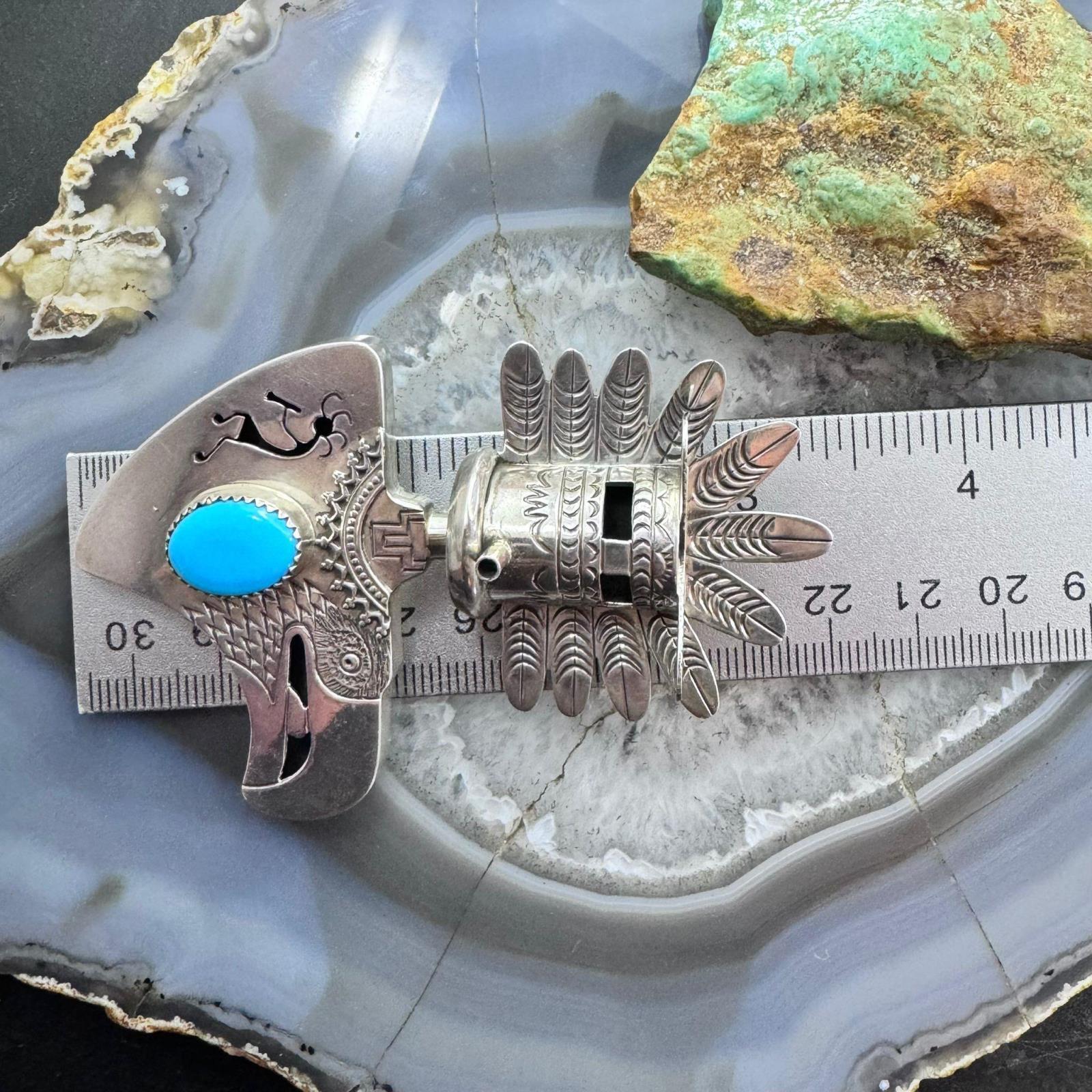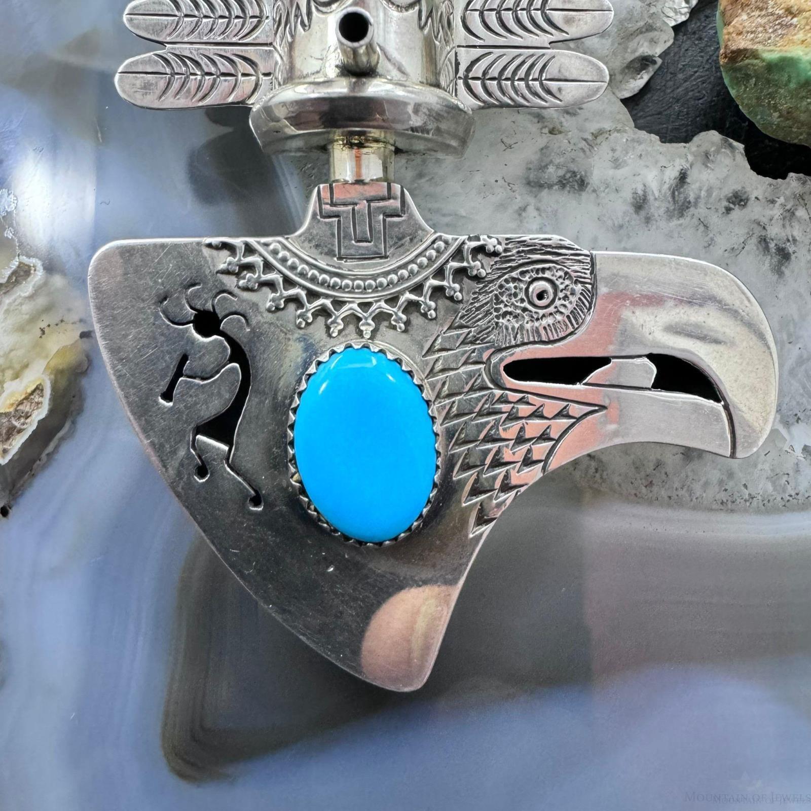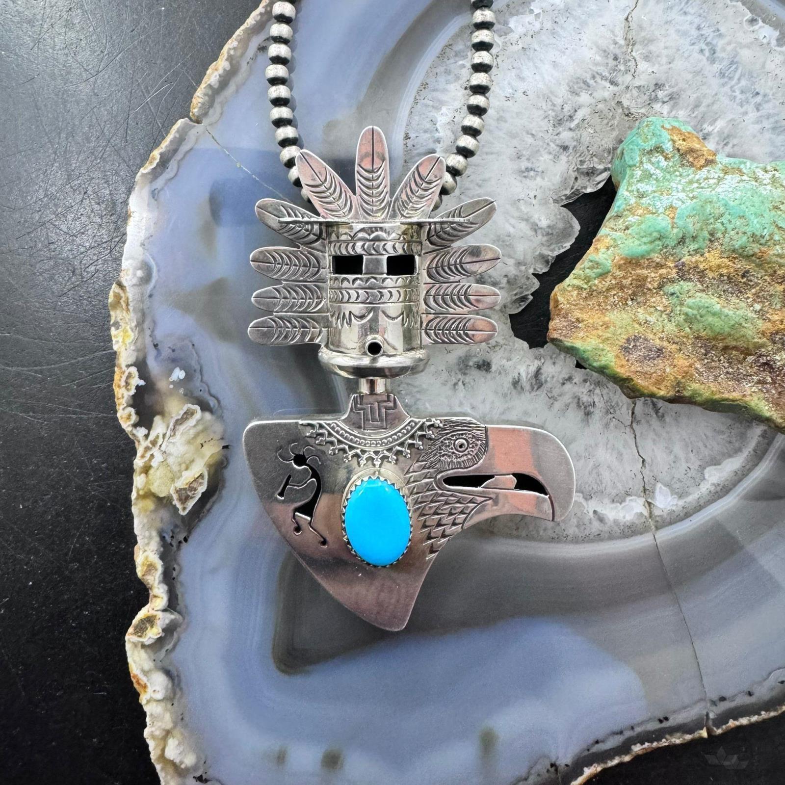 Vintage Elvis Nelson Native American Sterling Silver Kachina Eagle w/Turquoise Unisex Pendant