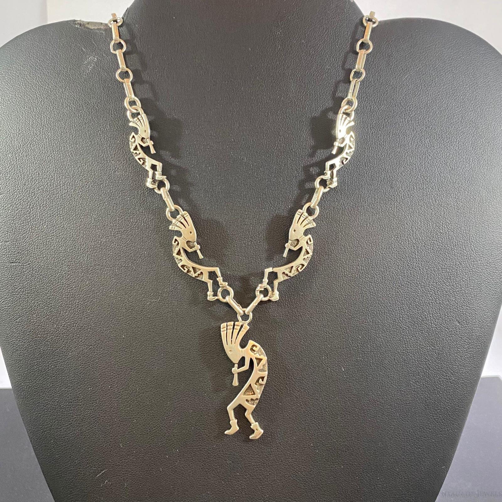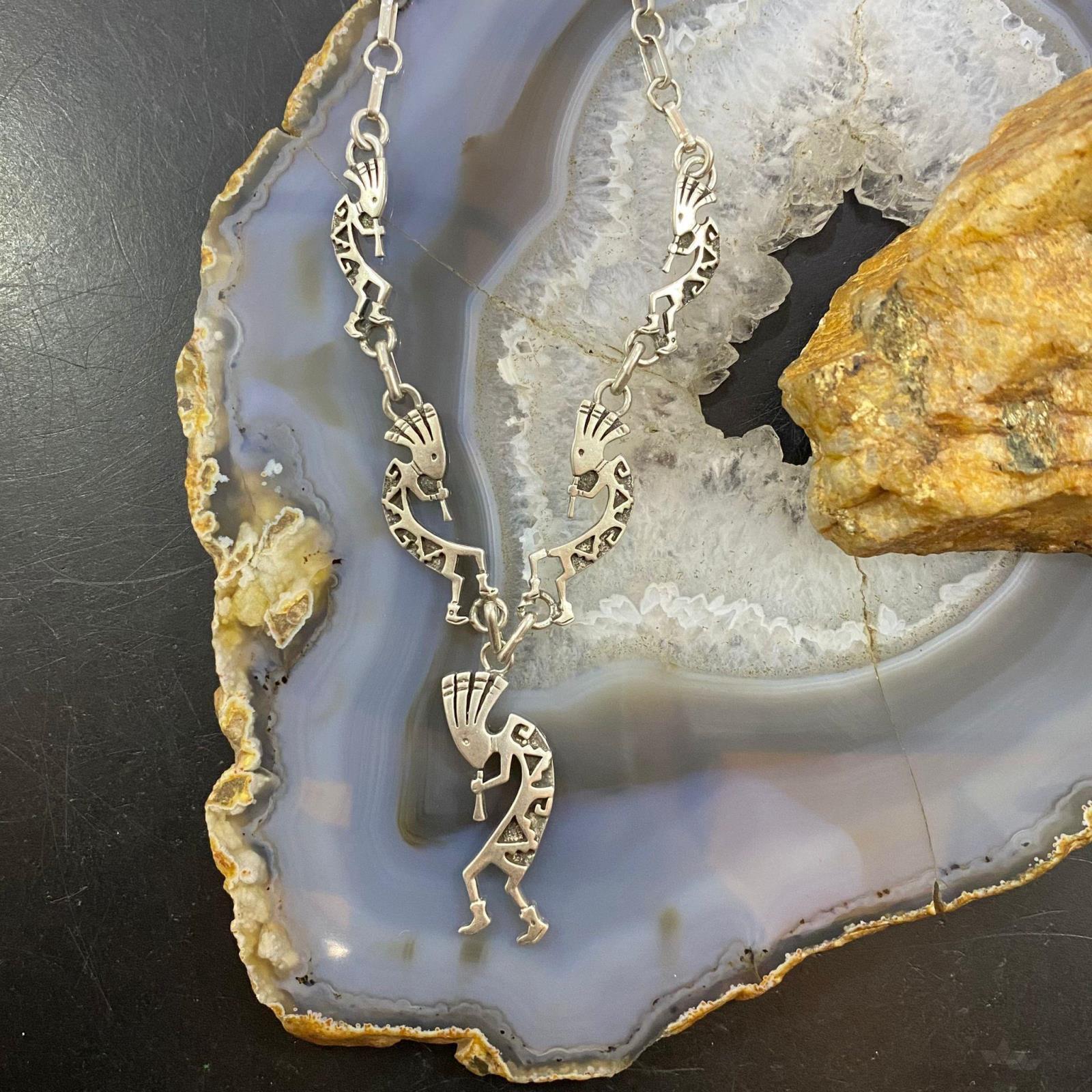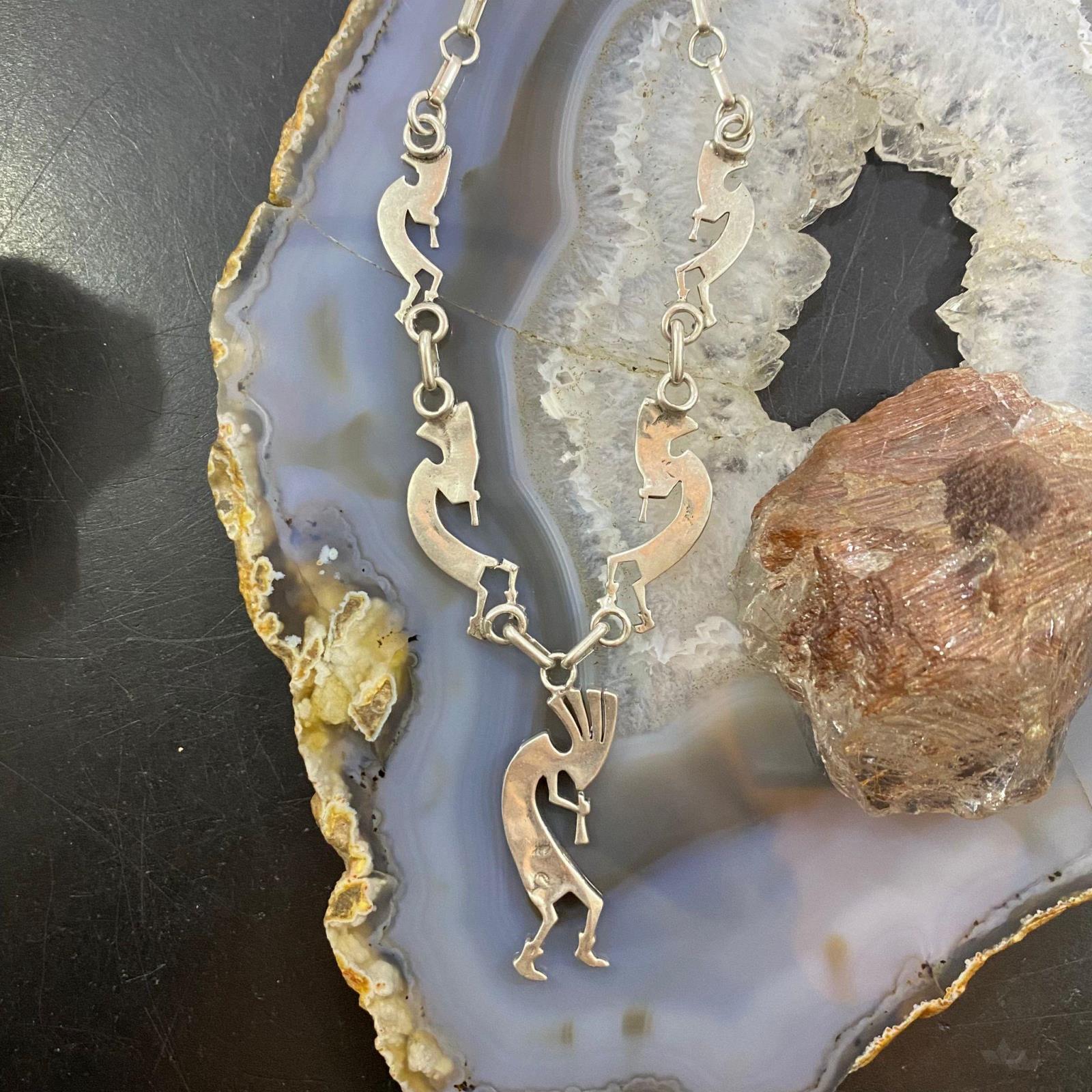 Vintage Native American Silver 5 Kokopelli Adjustable Necklace For Women