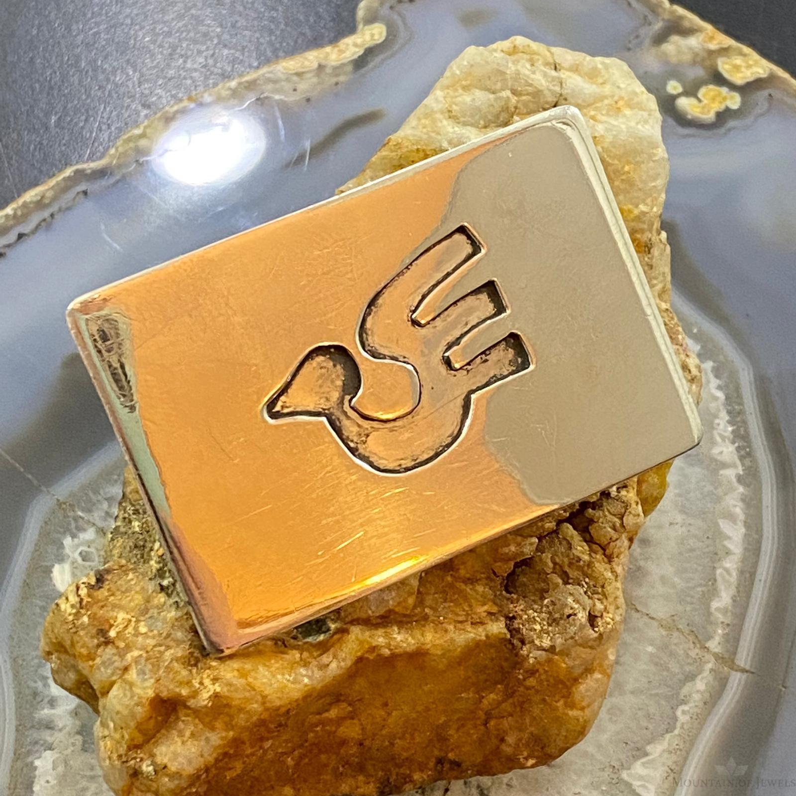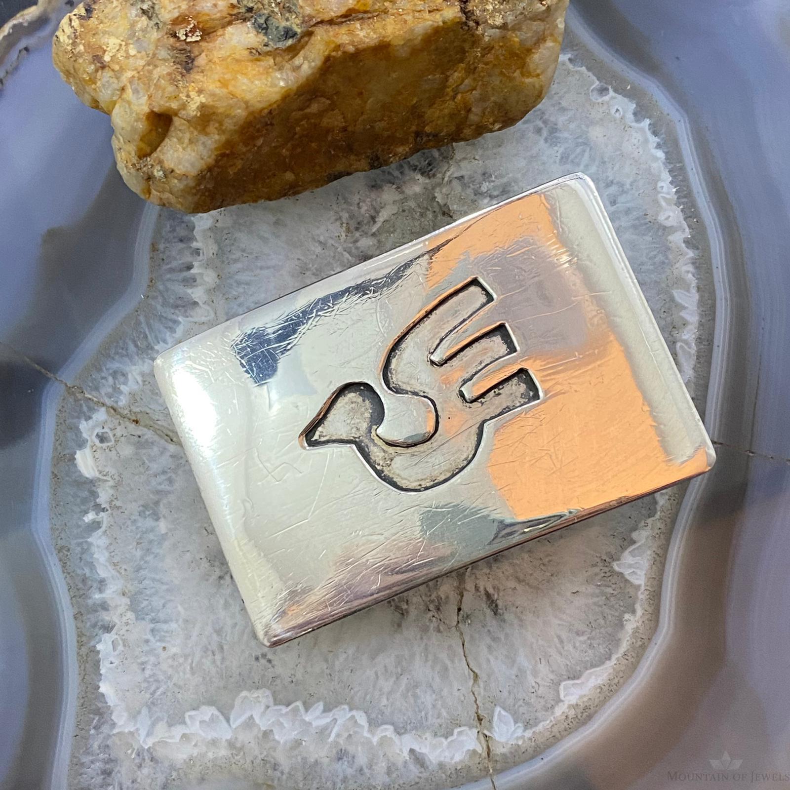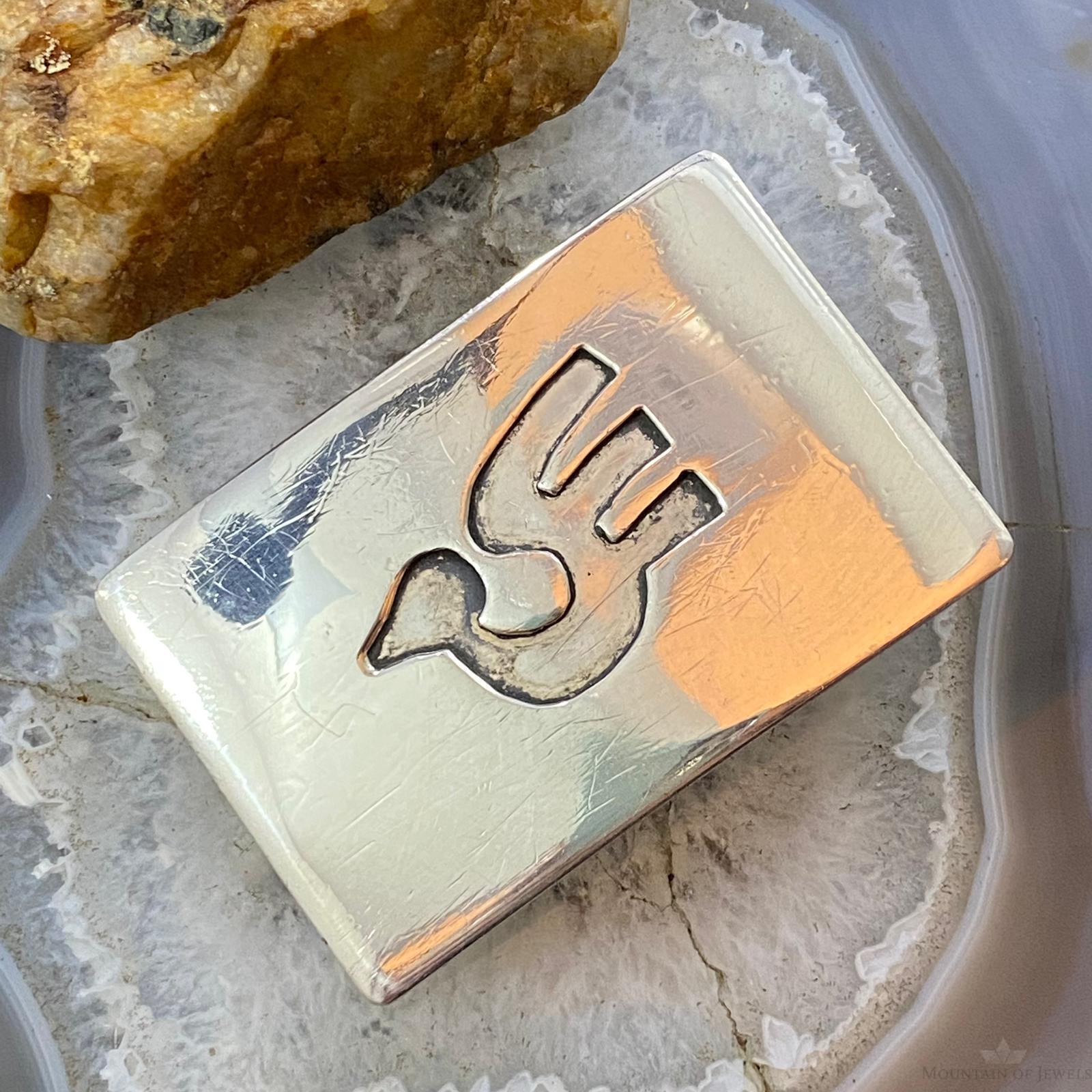 Vintage Native American Silver Overlay Dove Rectangle Unisex Belt Buckle