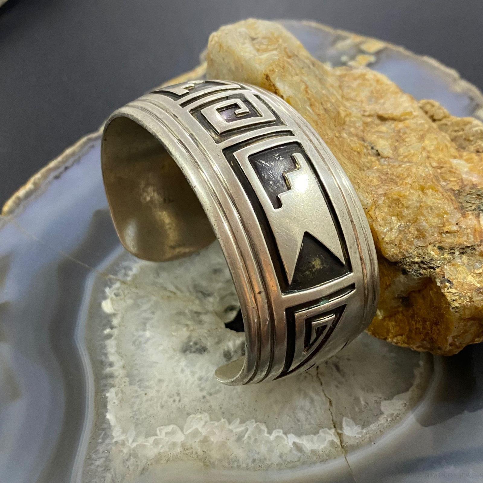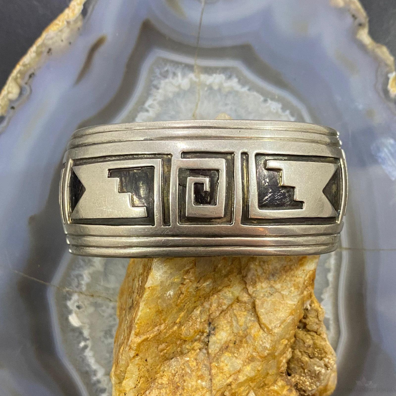 Vintage Native American Silver SW Motif Hopi Overlay Bracelet For Women #1