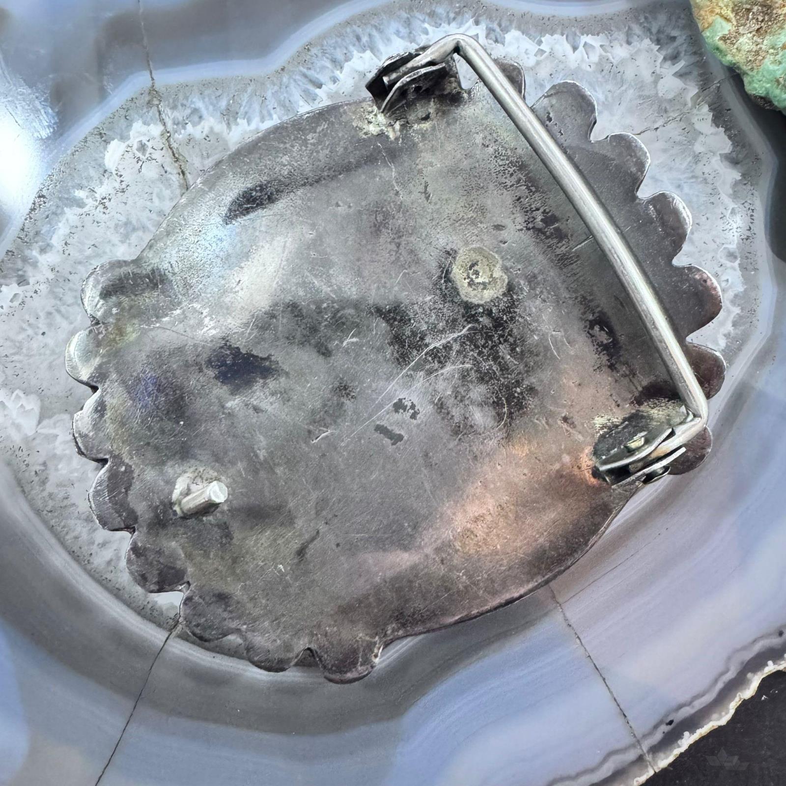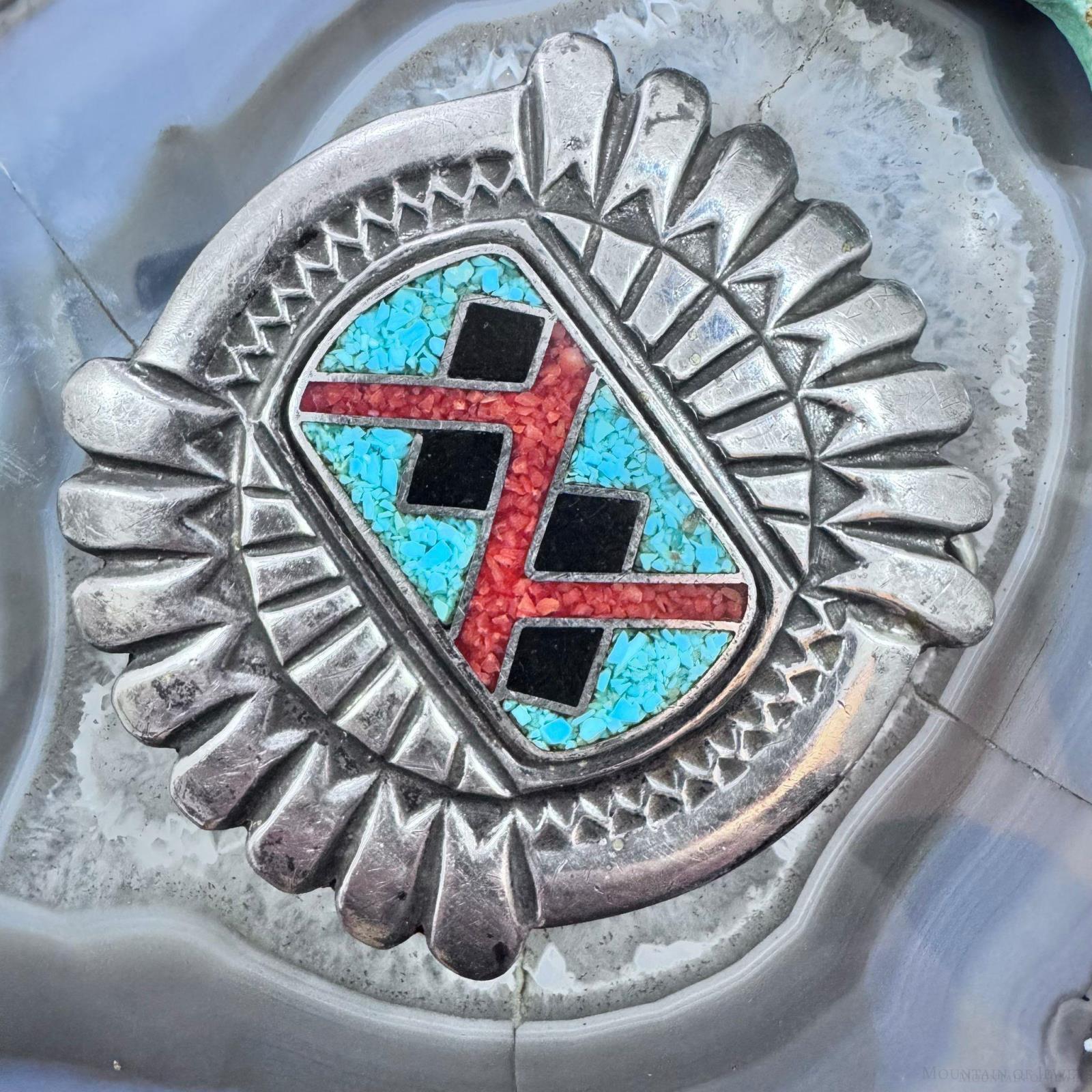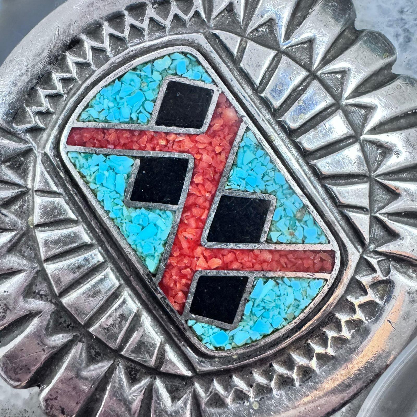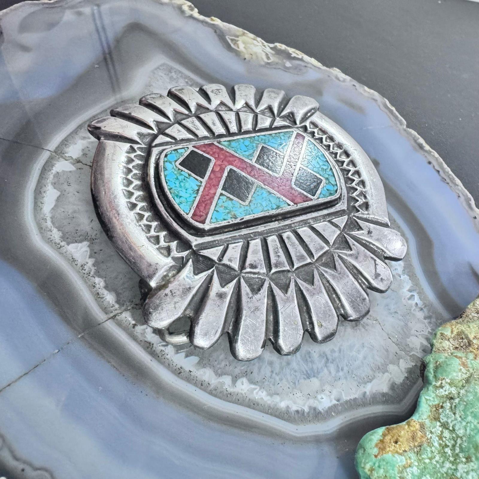 Vintage Native American Sterling Silver Chip Inlay Large Belt Buckle For Men