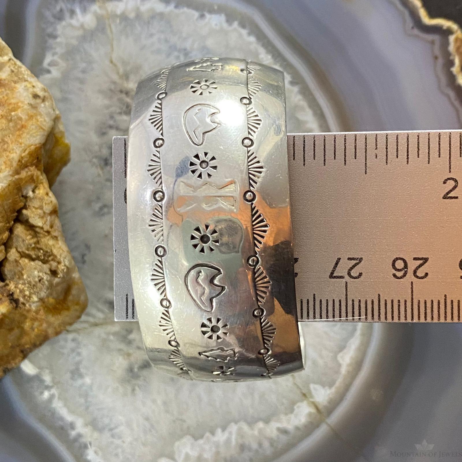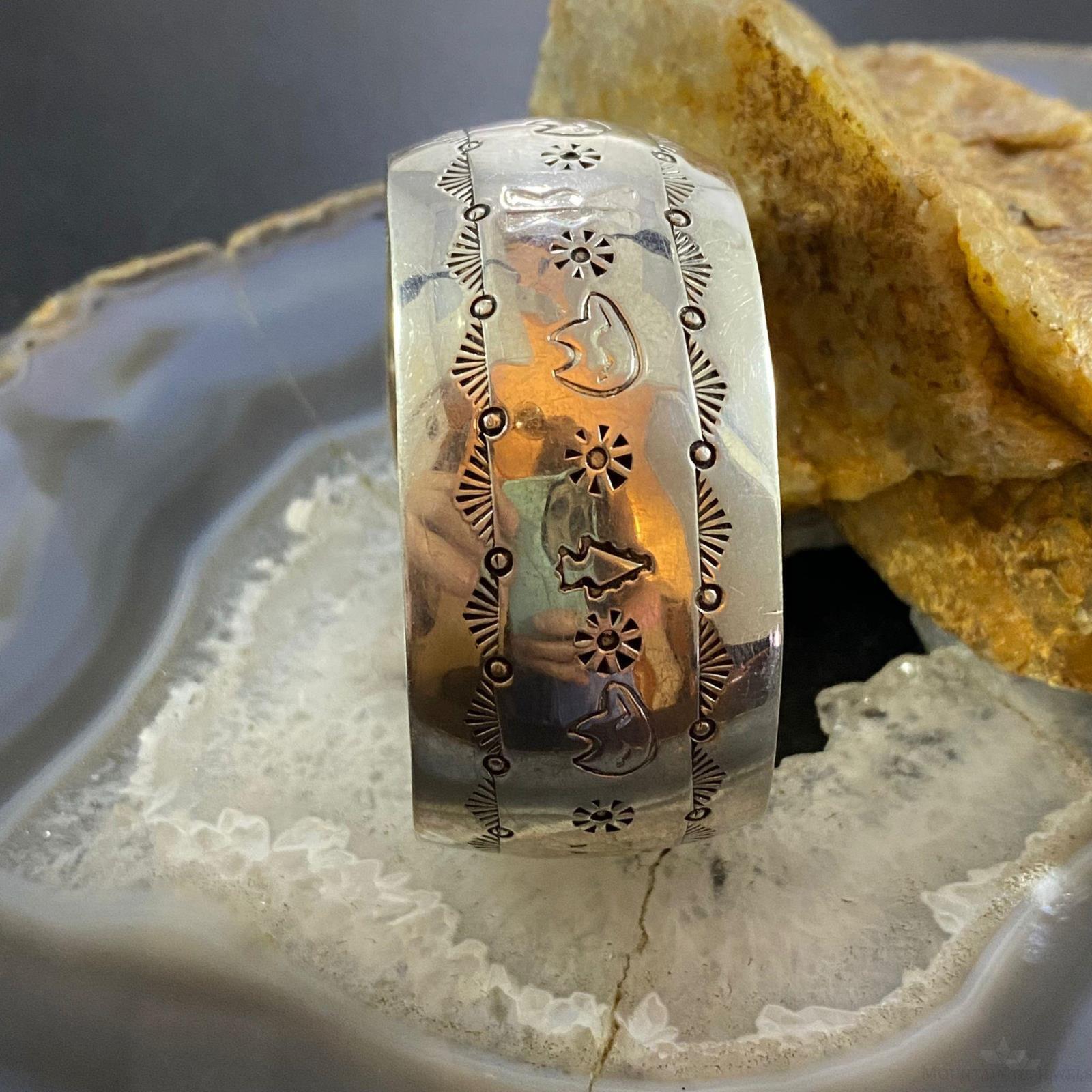 Vintage Native American Sterling Silver Stamped Fetish Bears Bracelet For Women