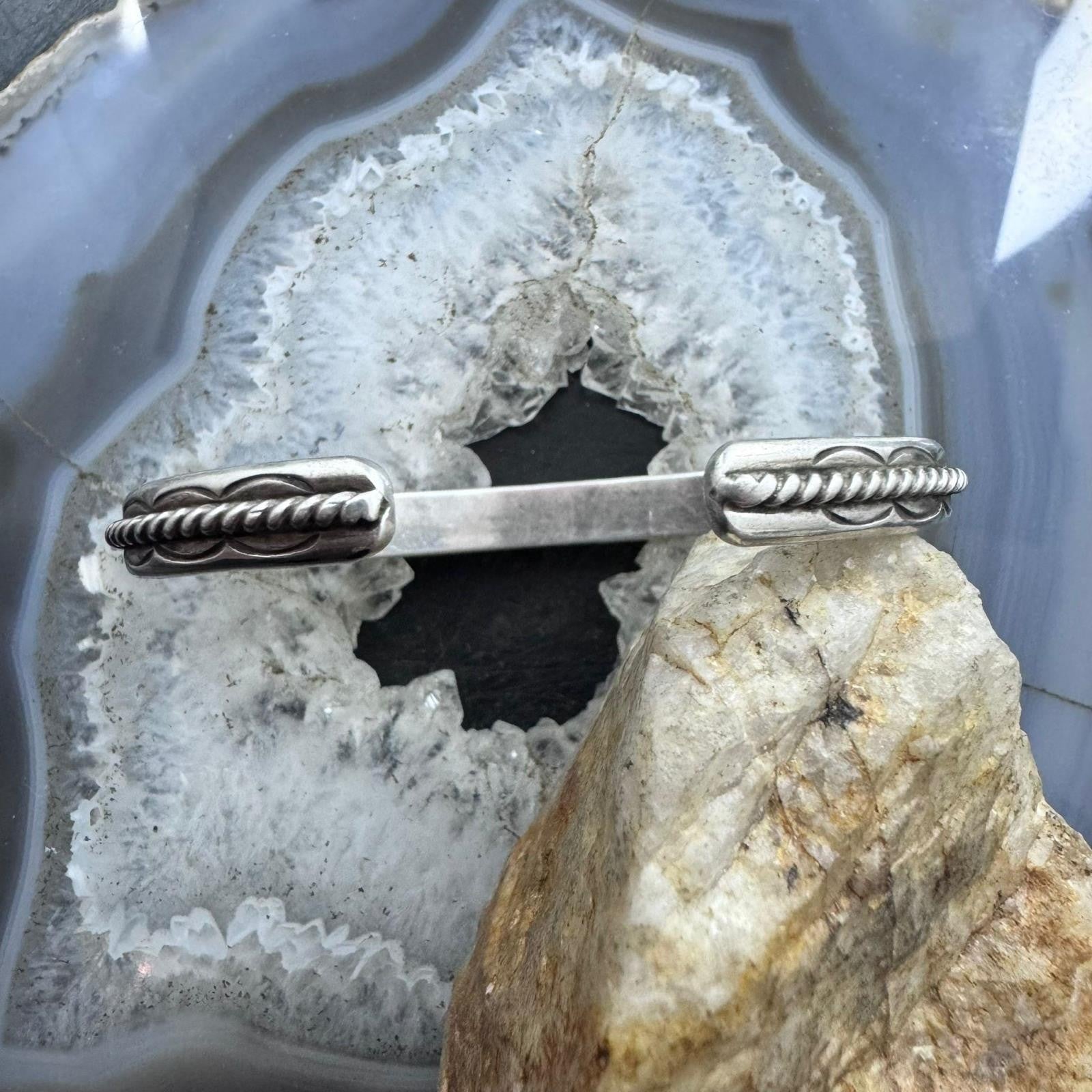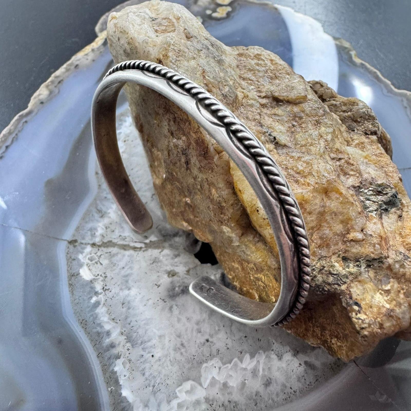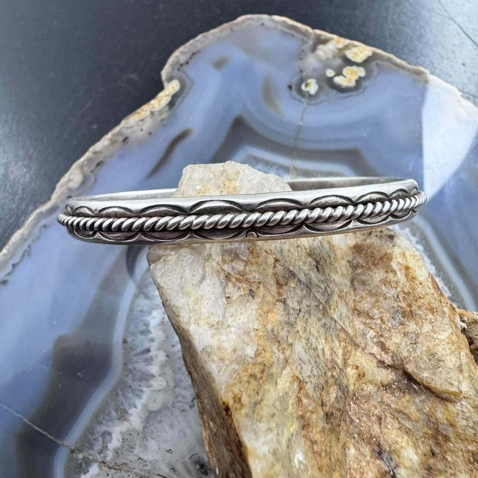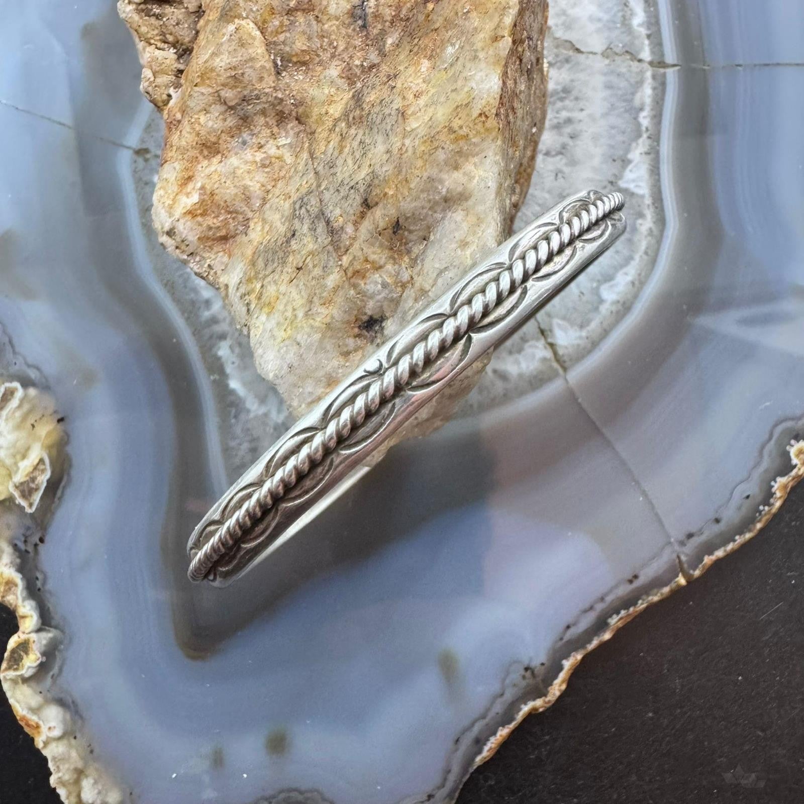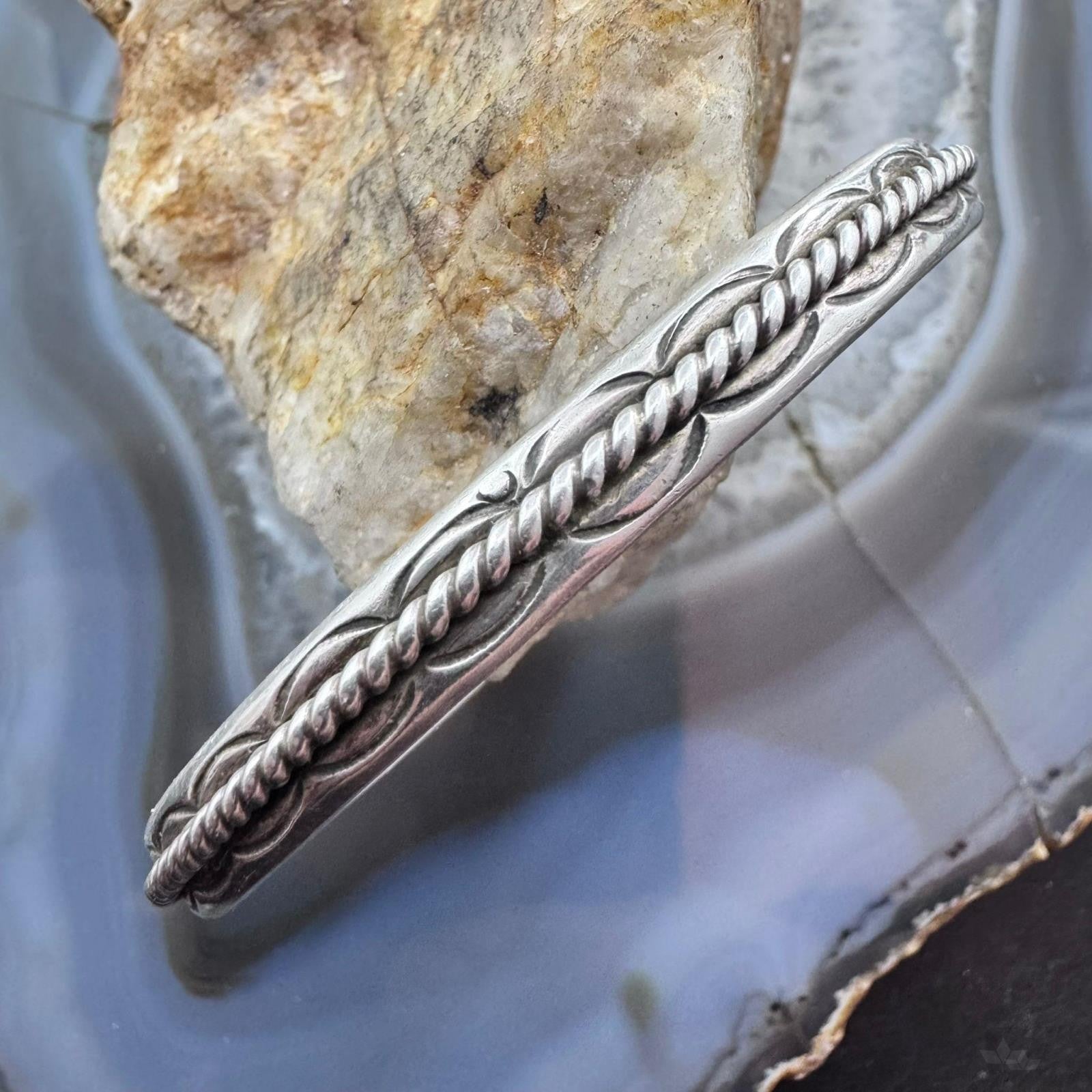 Vintage Native American Sterling Silver Twisted Rope Slim Bracelet For Women