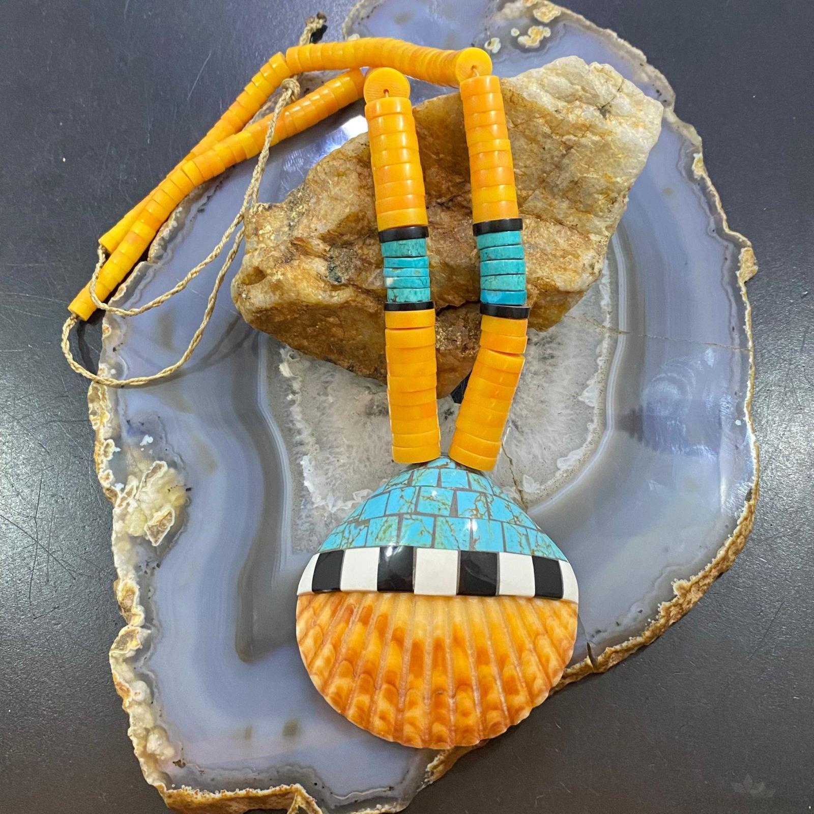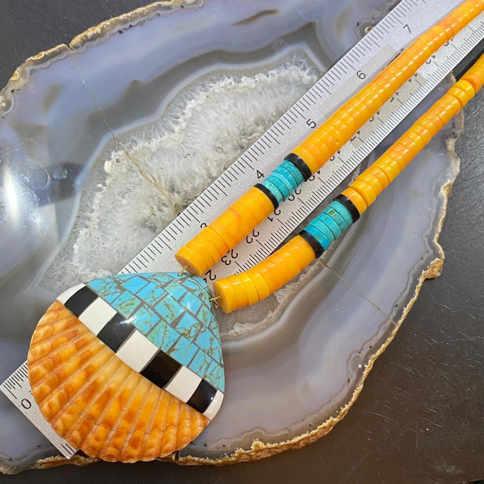 Vintage Santo Domingo Kewa Pueblo Heishi & Multi Gemstone Inlay Necklace For Women