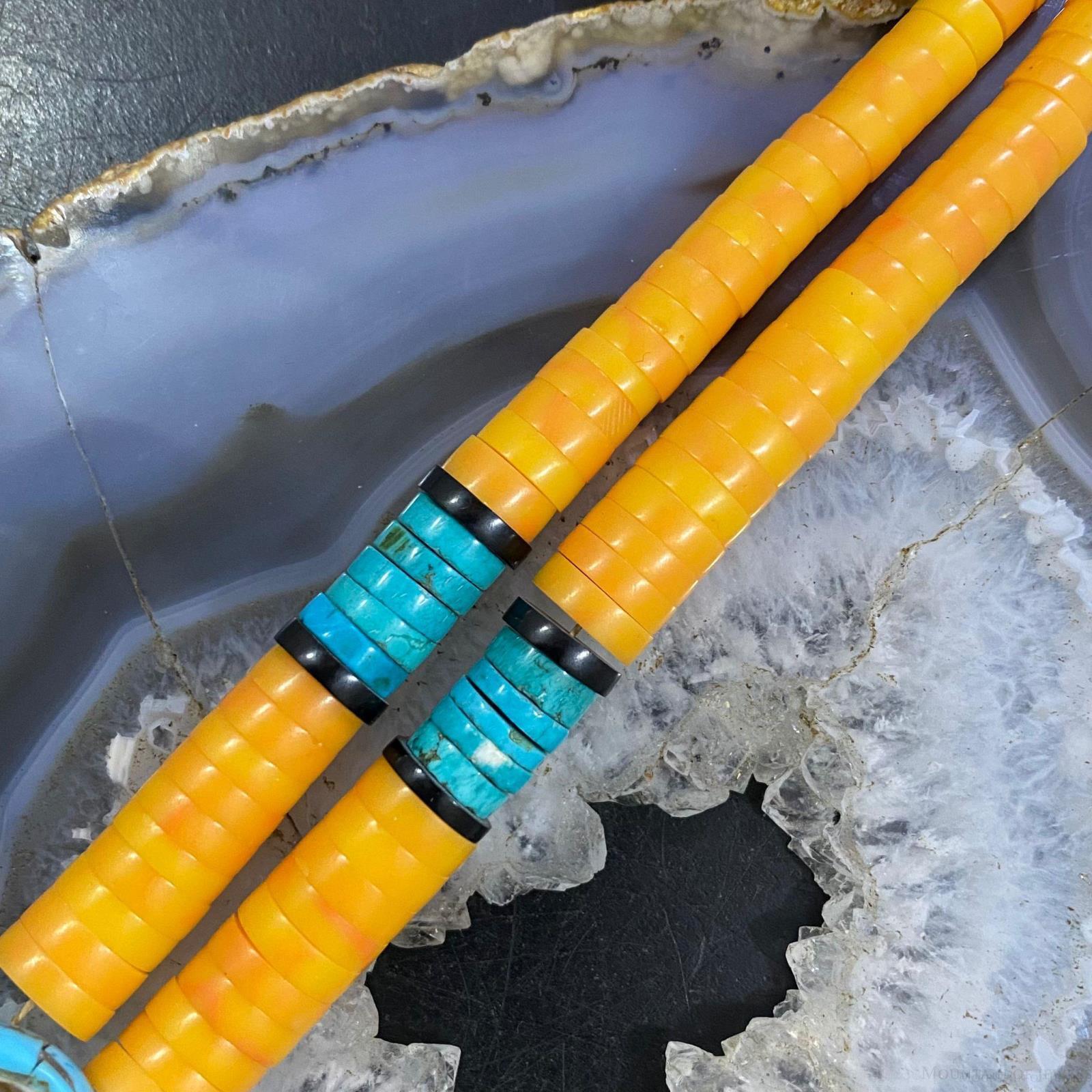 - MAIN STONE : Orange Spiny Oyster, Turquoise, Jet, Mother of Pearl