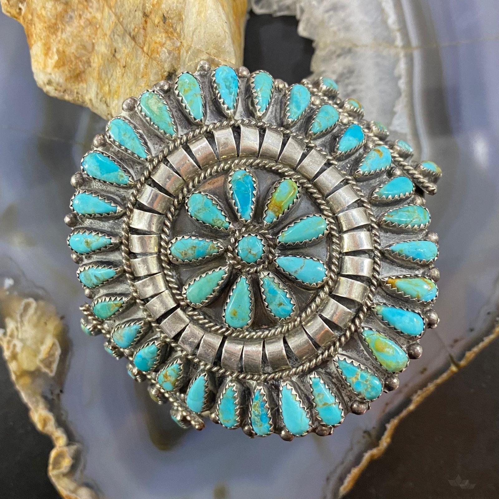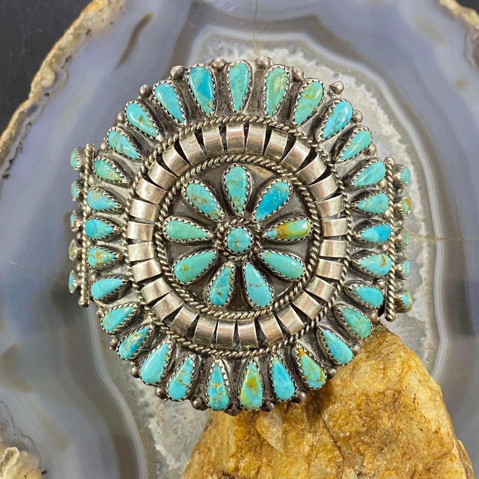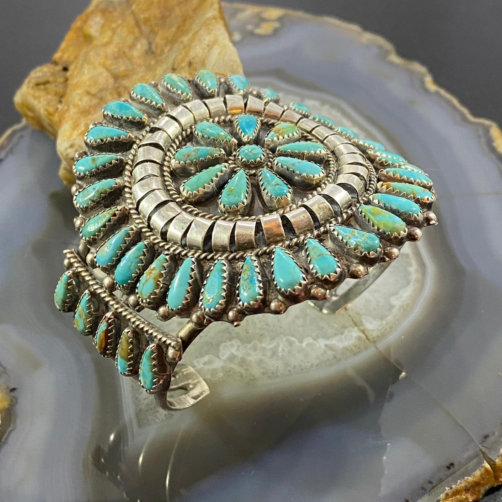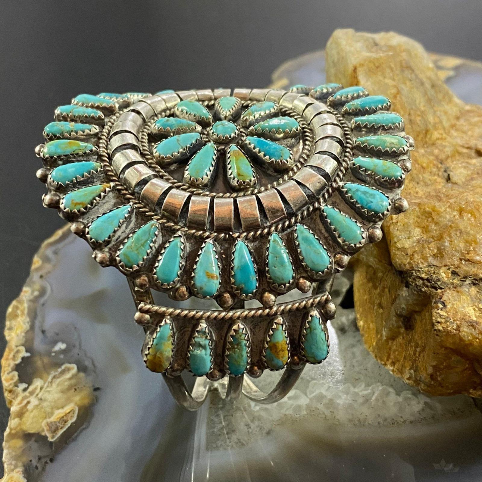 Vintage Signed Native American Sterling Silver Cluster Turquoise Bracelet For Women #1