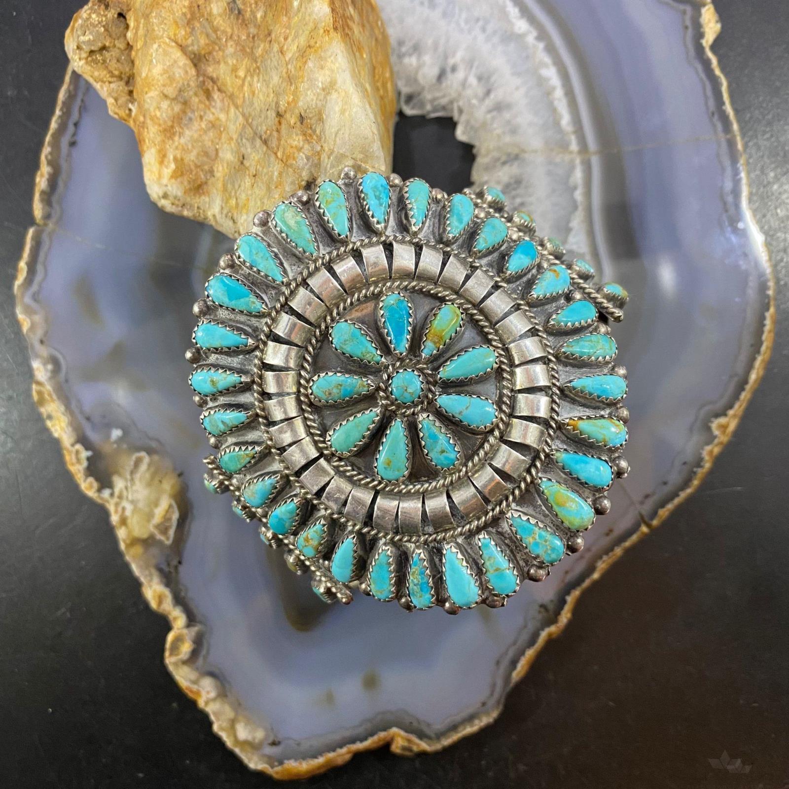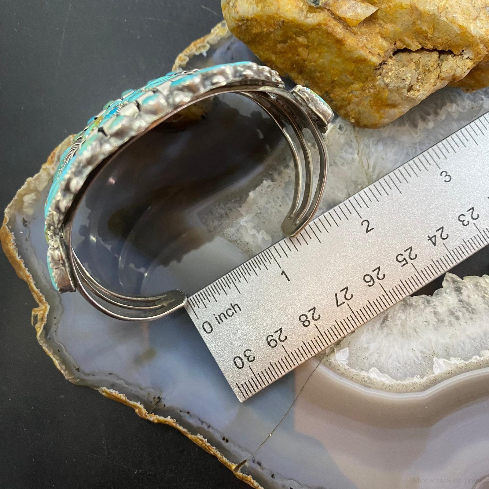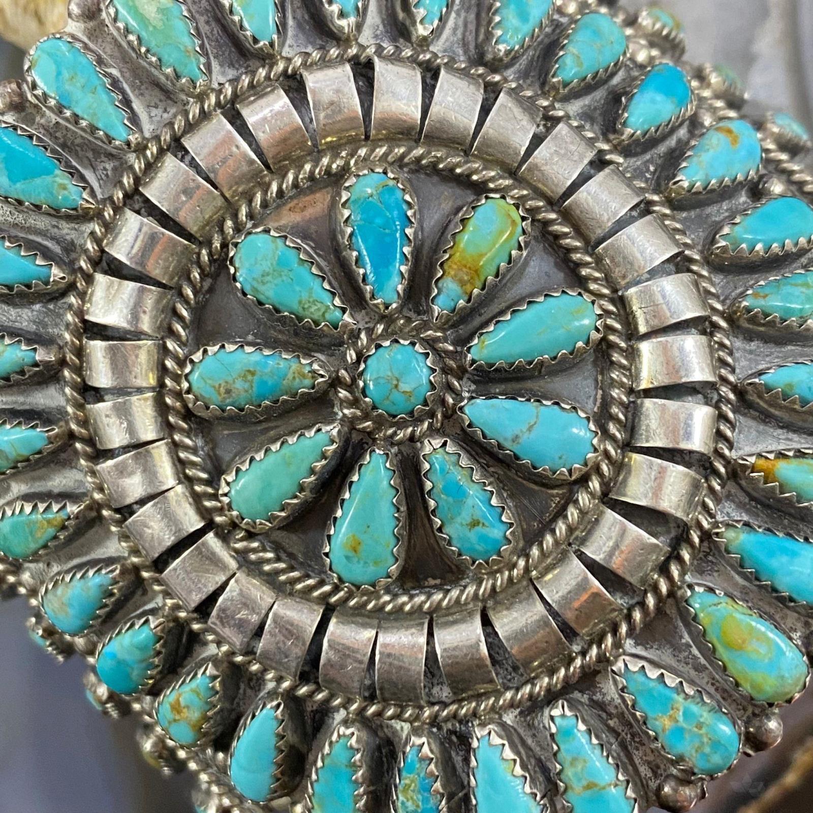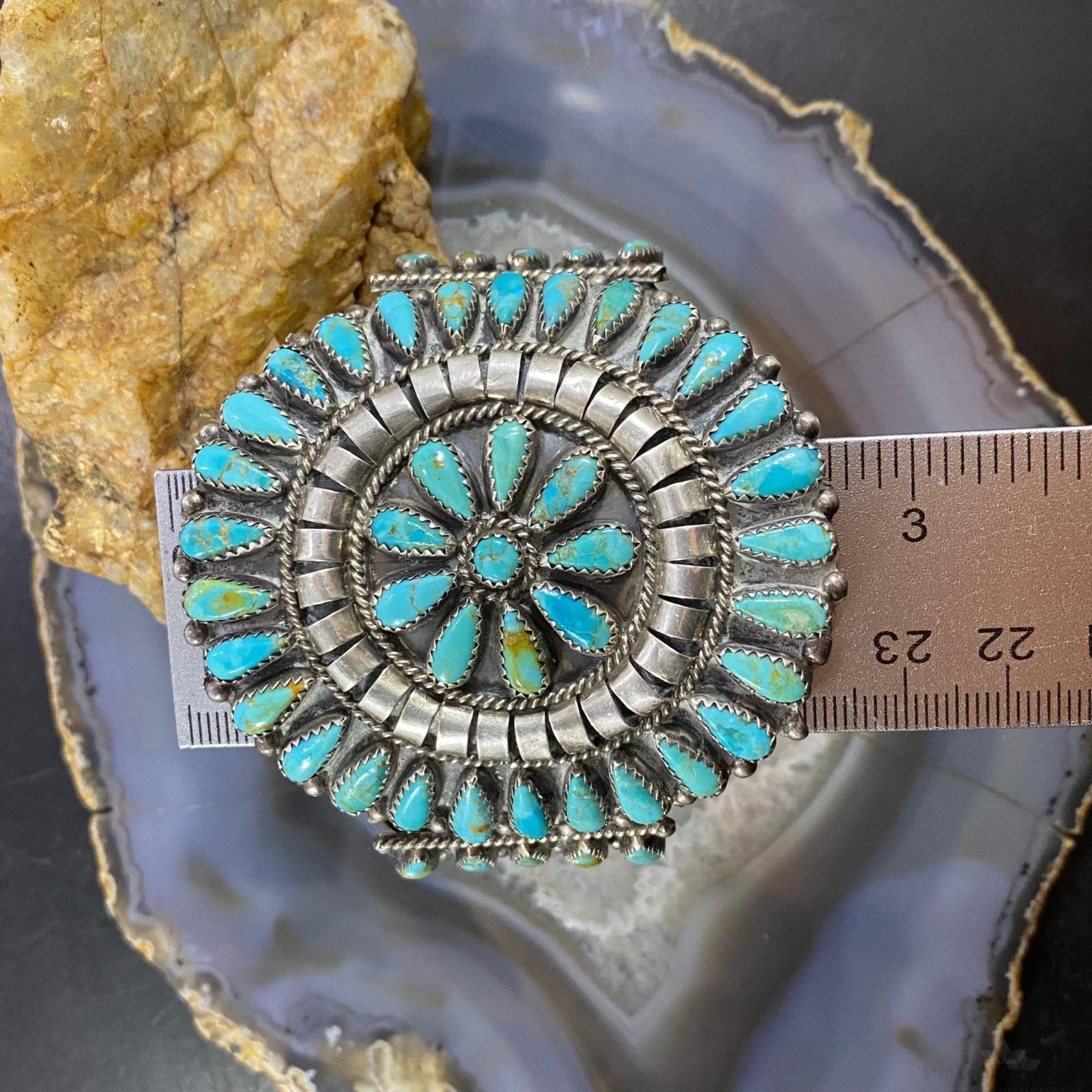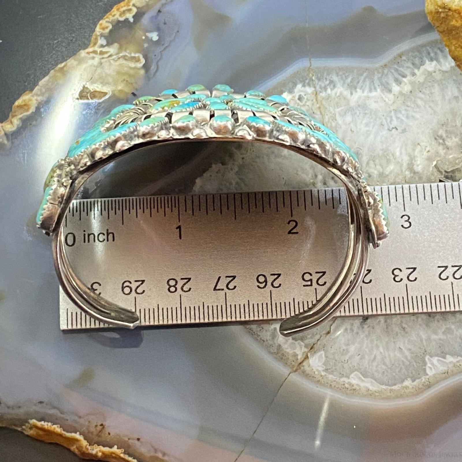 Vintage Signed Native American Sterling Silver Cluster Turquoise Bracelet For Women #1