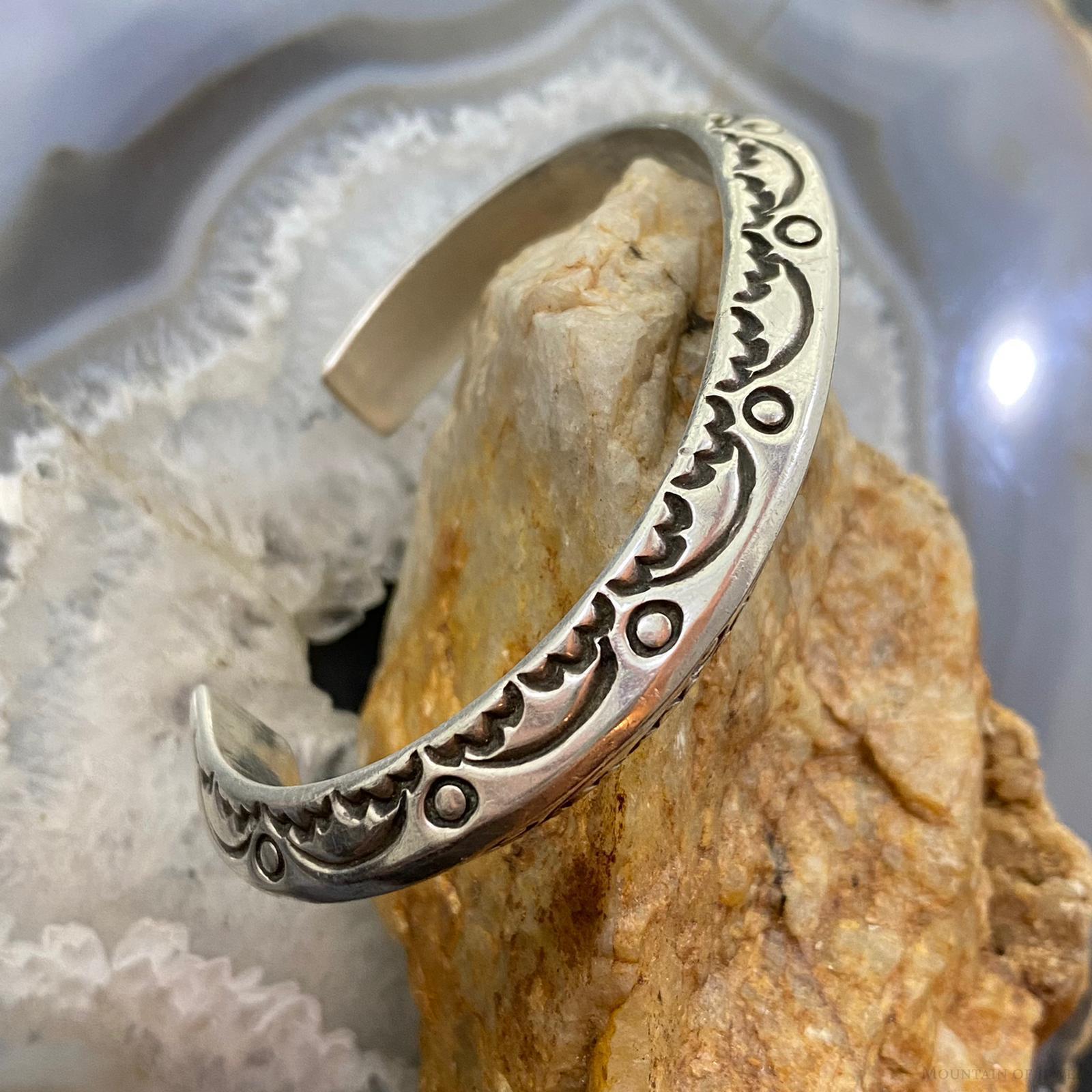 Vintage Signed Native American Sterling Silver Stamped Carinated Bracelet #1