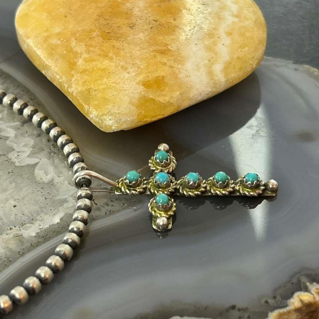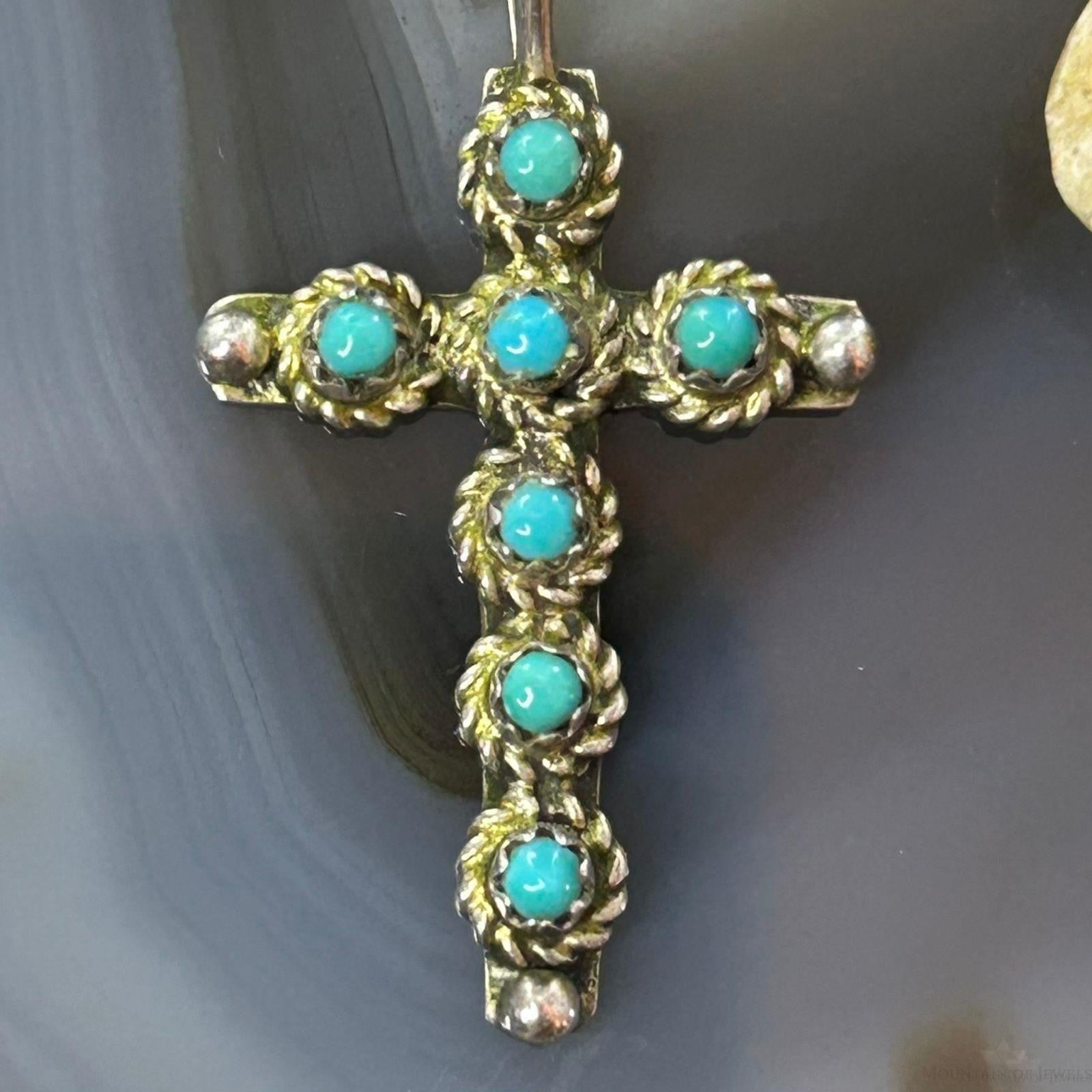 Vintage Signed Sterling Silver Petite Point Turquoise Unisex Cross Pendant