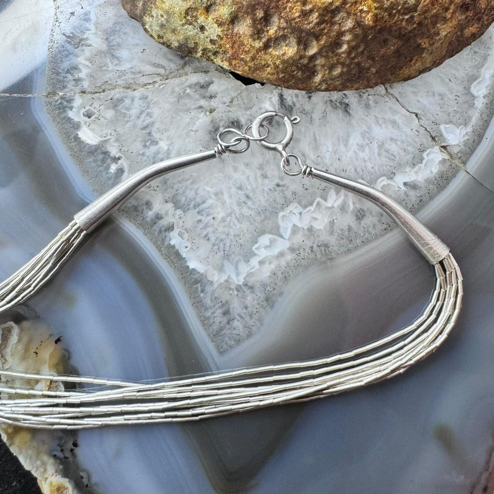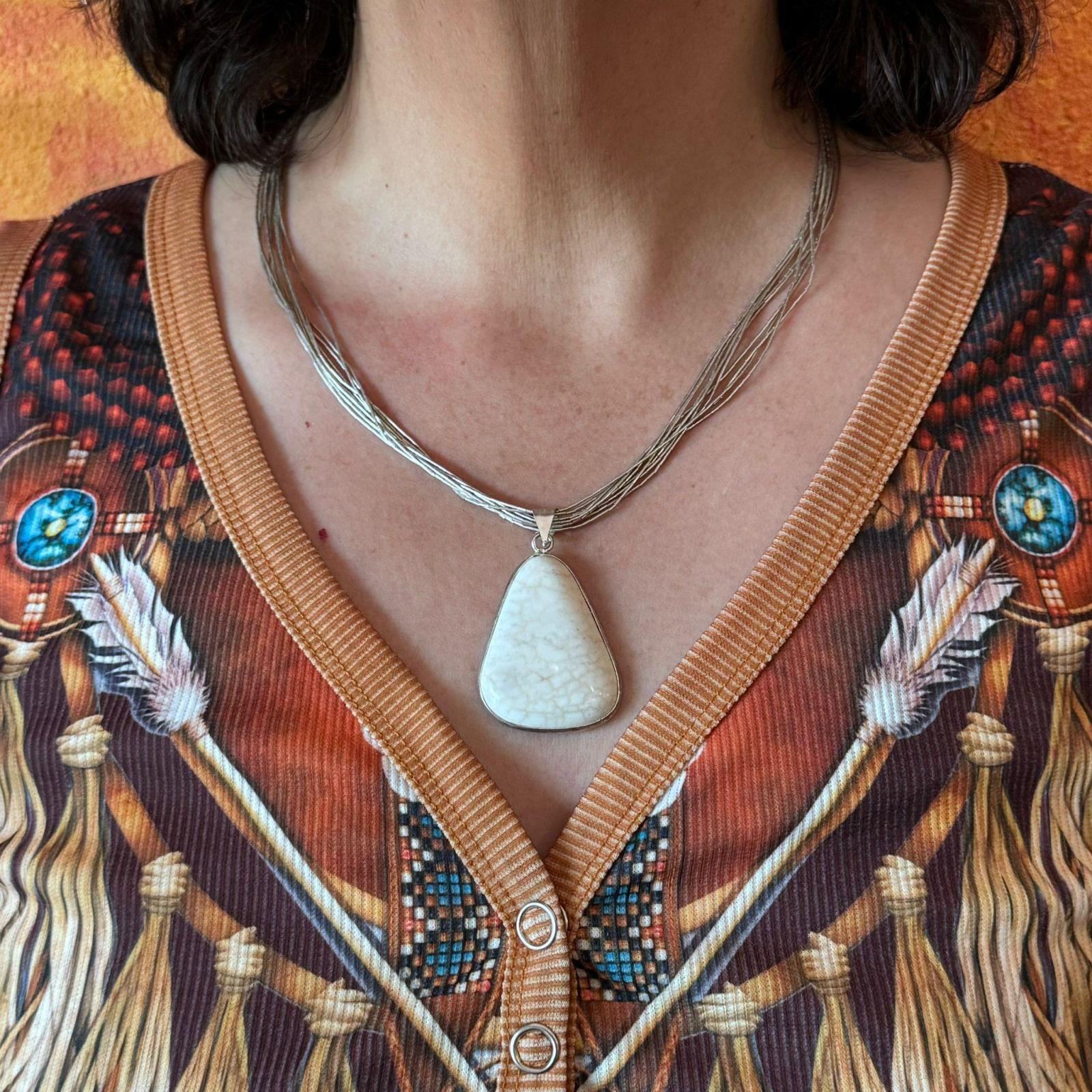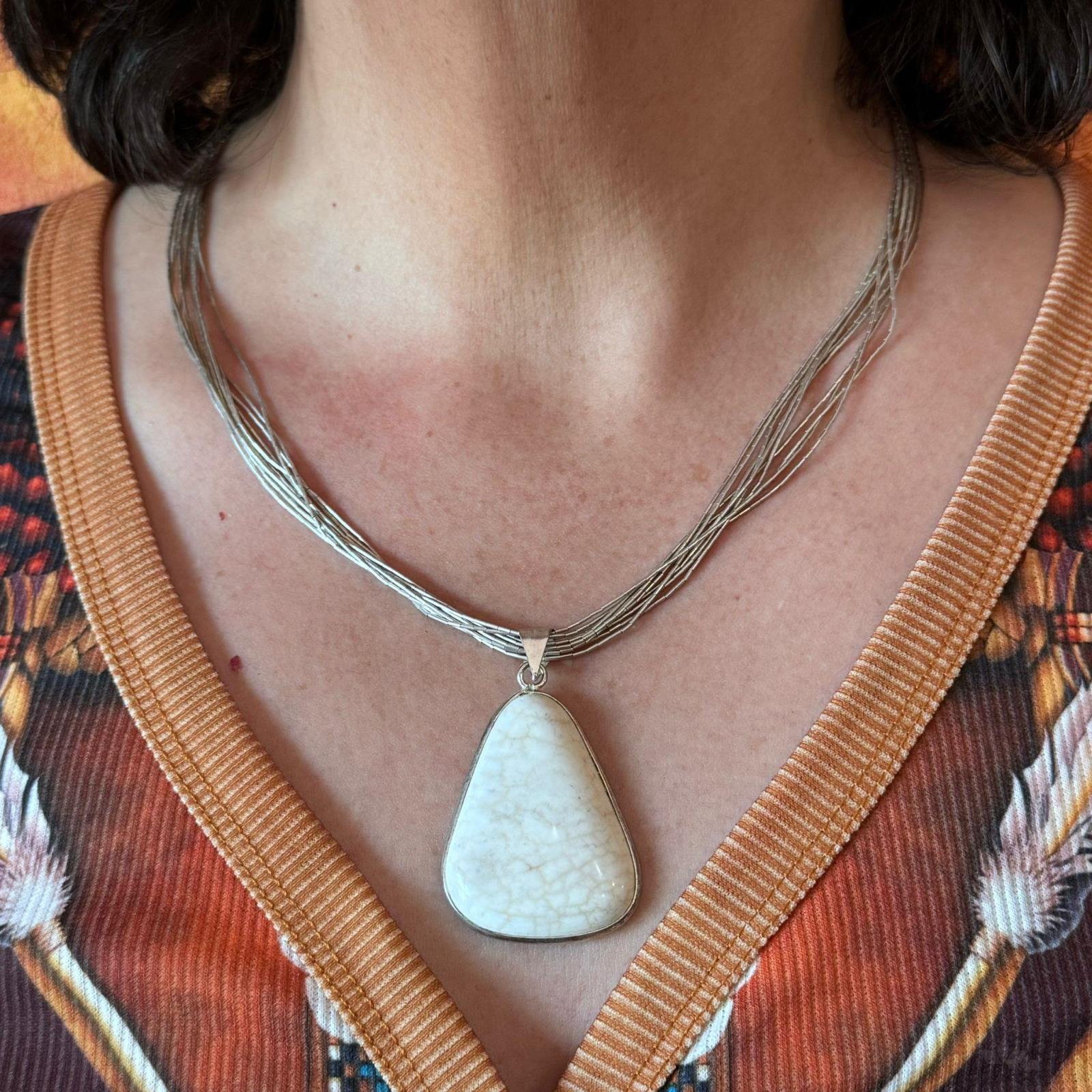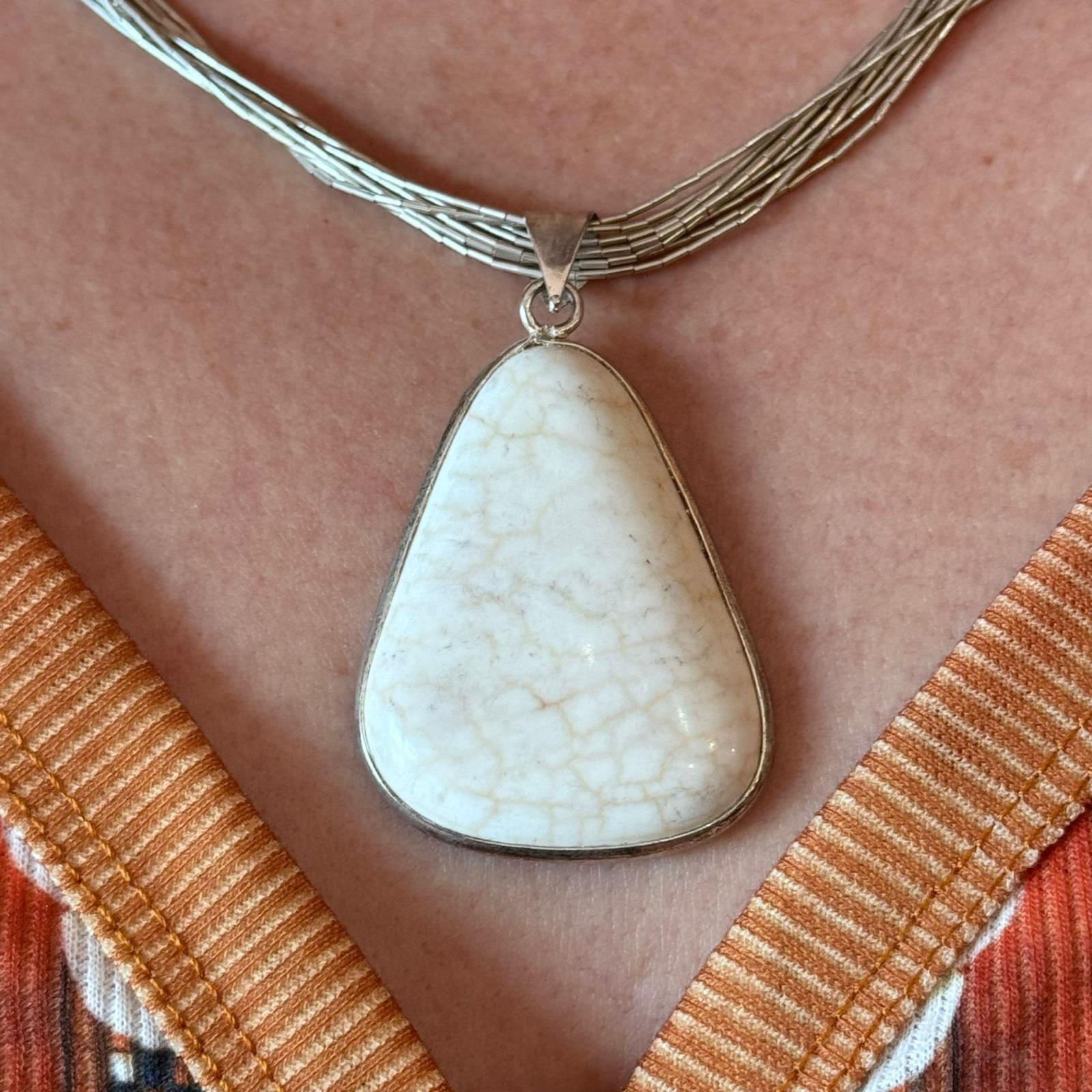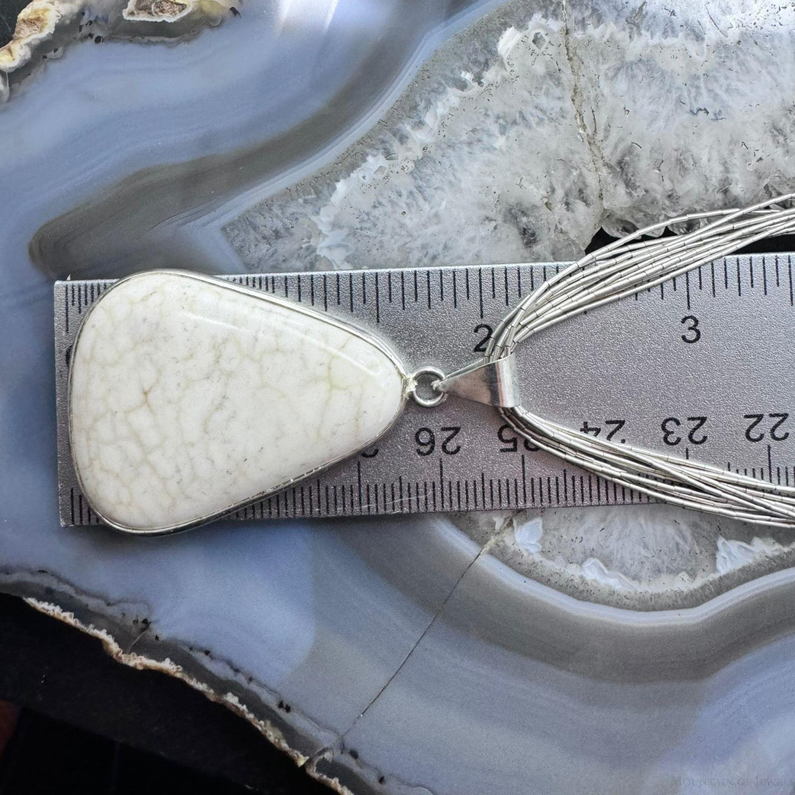Vintage Sterling Silver Multi Stand Liquid Silver Necklace w/Howlite Pendant