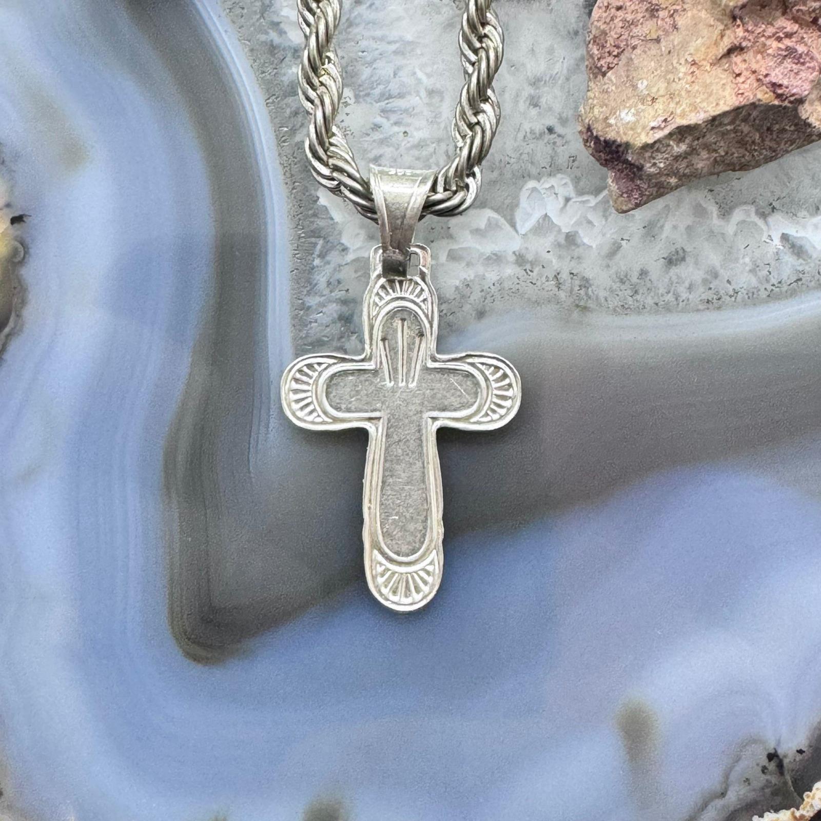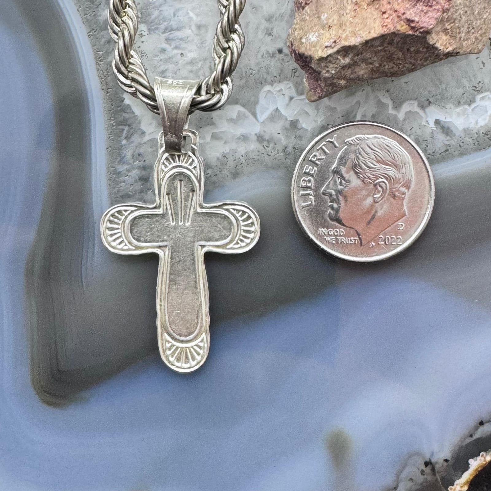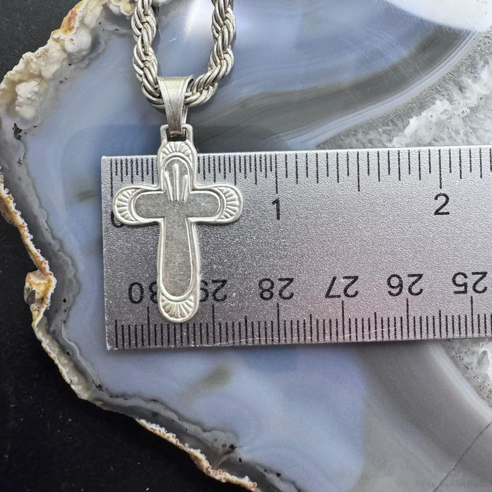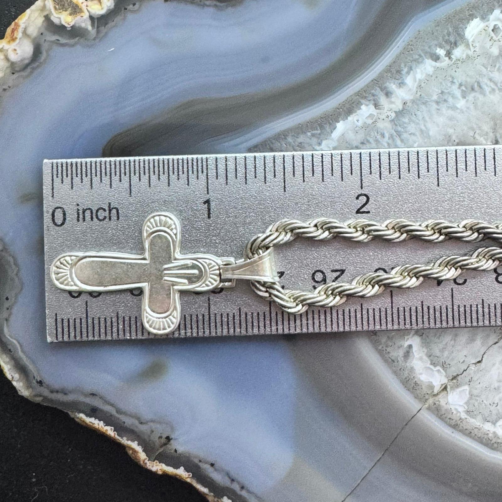 Vintage Sterling Silver Unisex Cross Pendant With 23" Rope Chain Necklace
